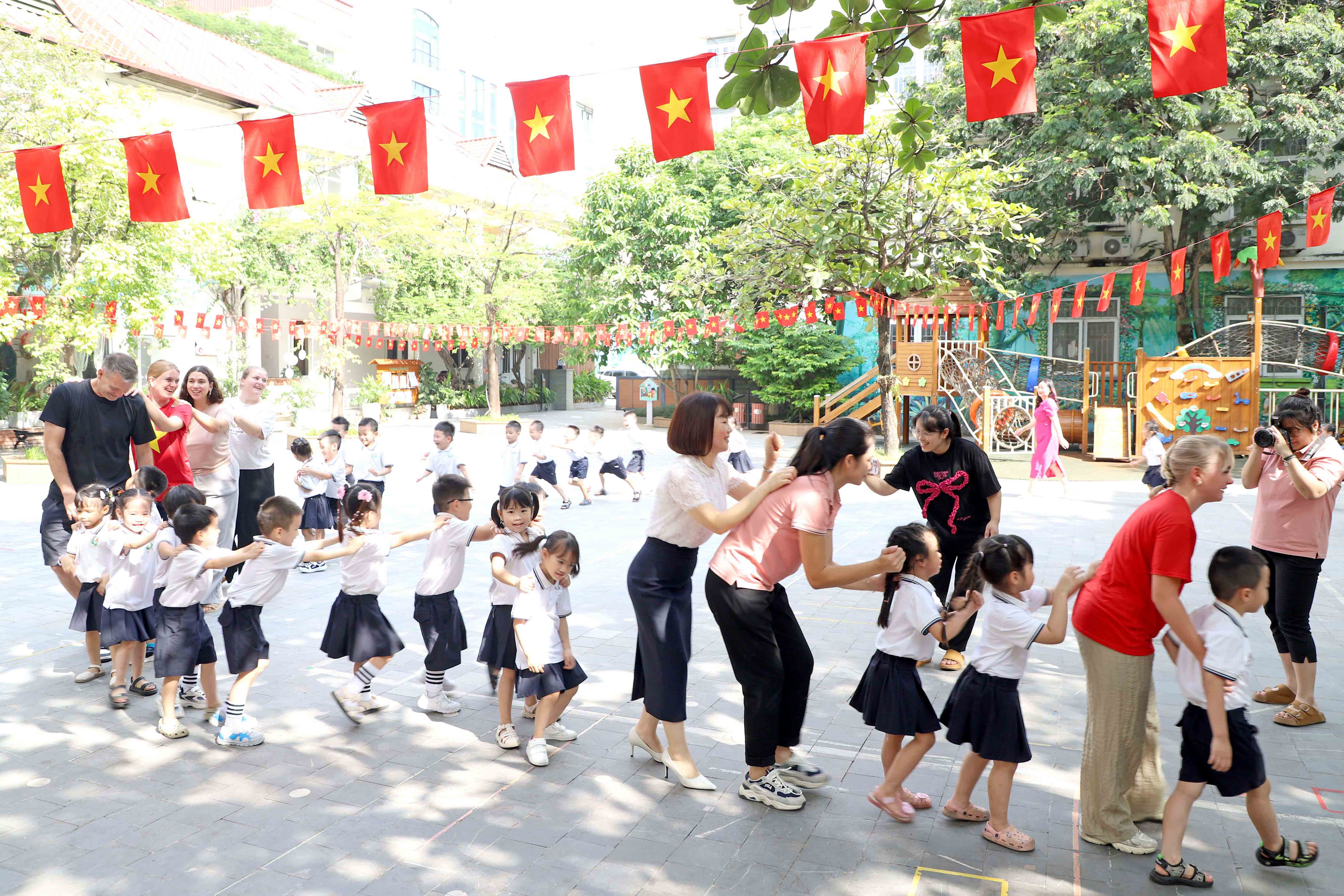 Đoàn chuyên gia dự hoạt động ngoài trời với chủ đề “Phát triển âm nhạc và vận động”