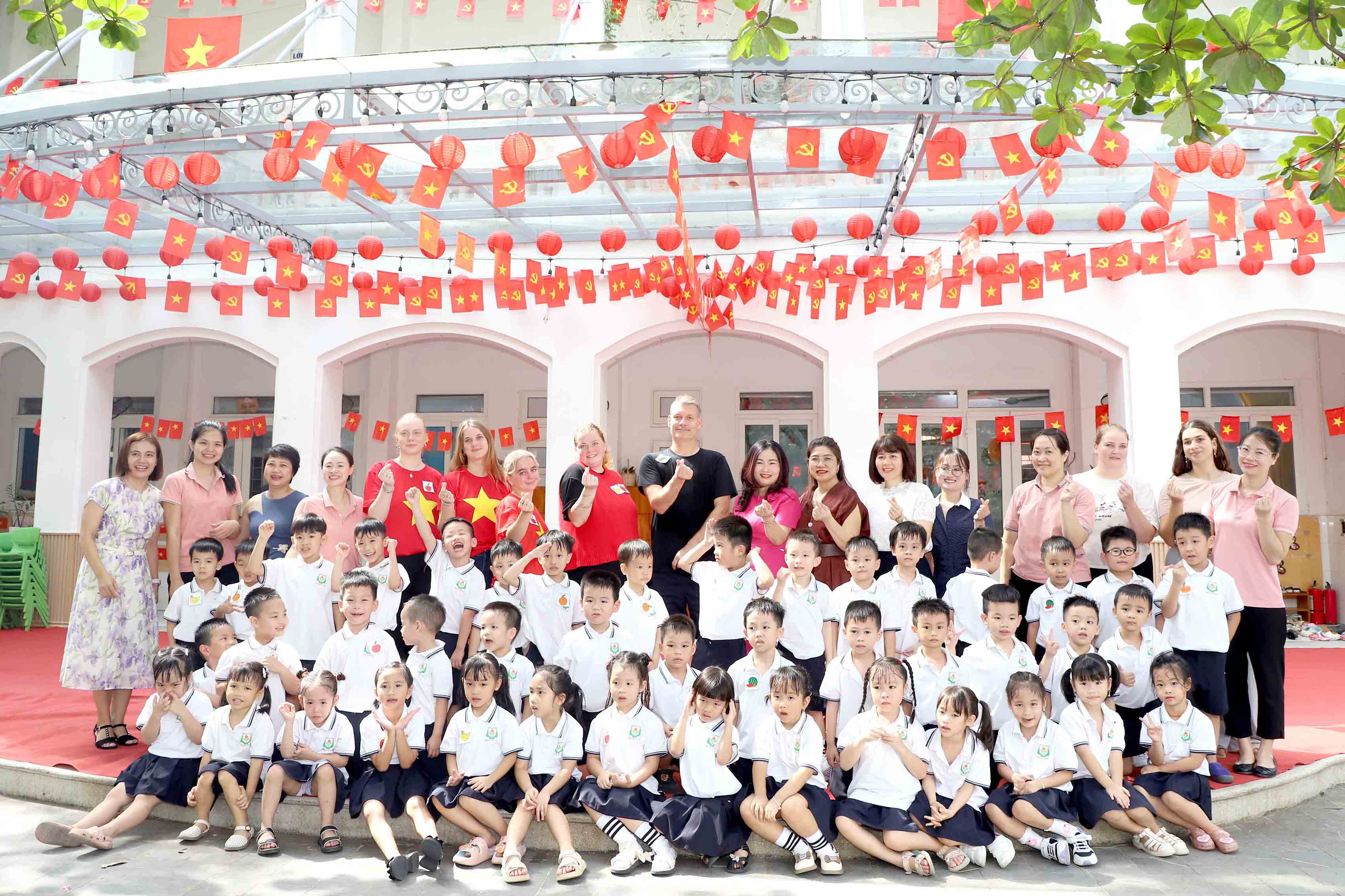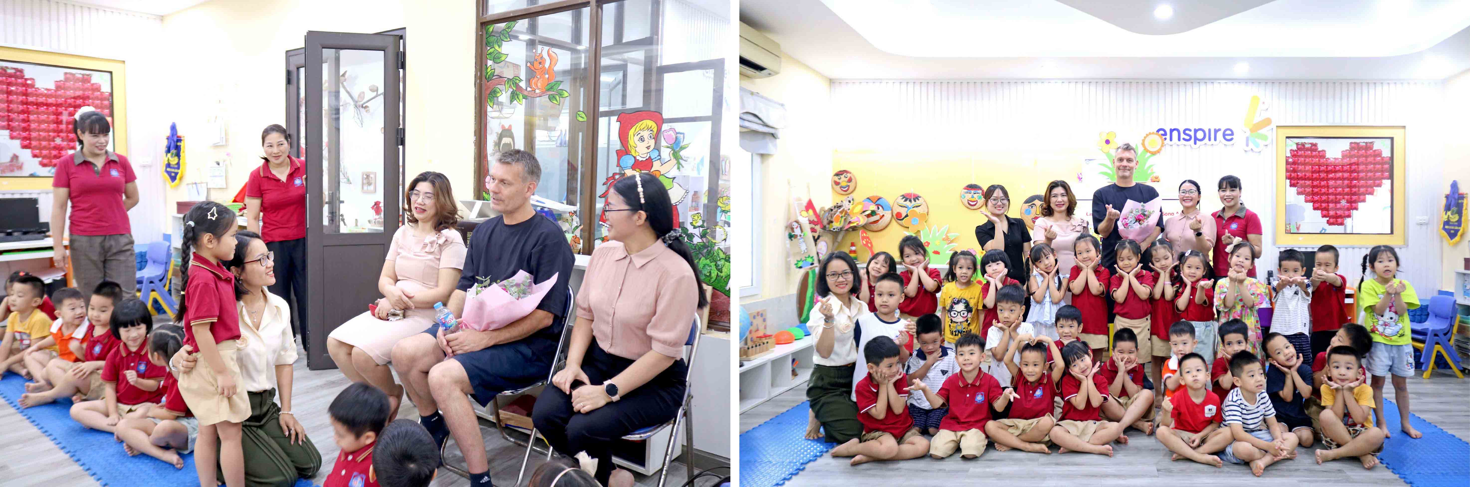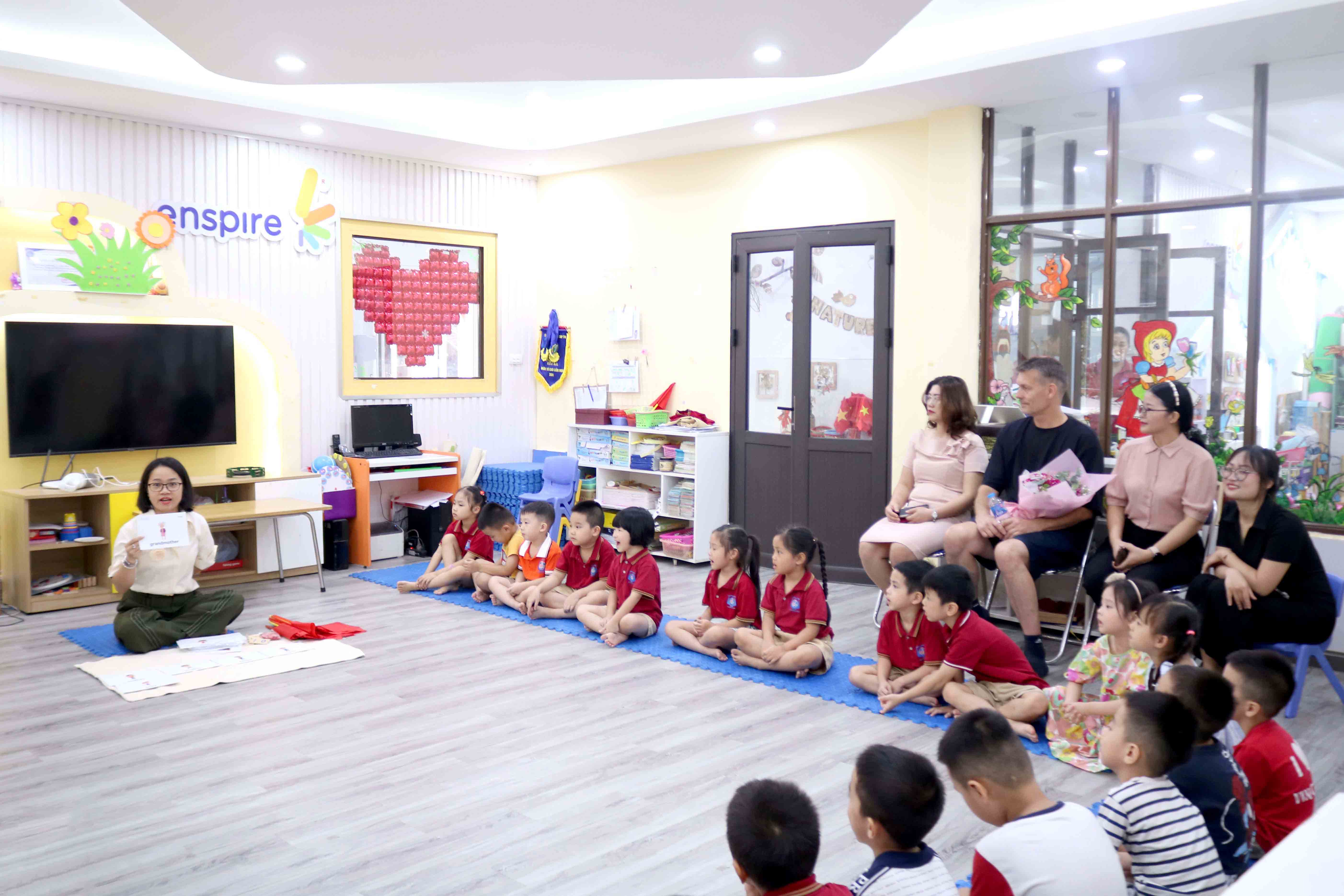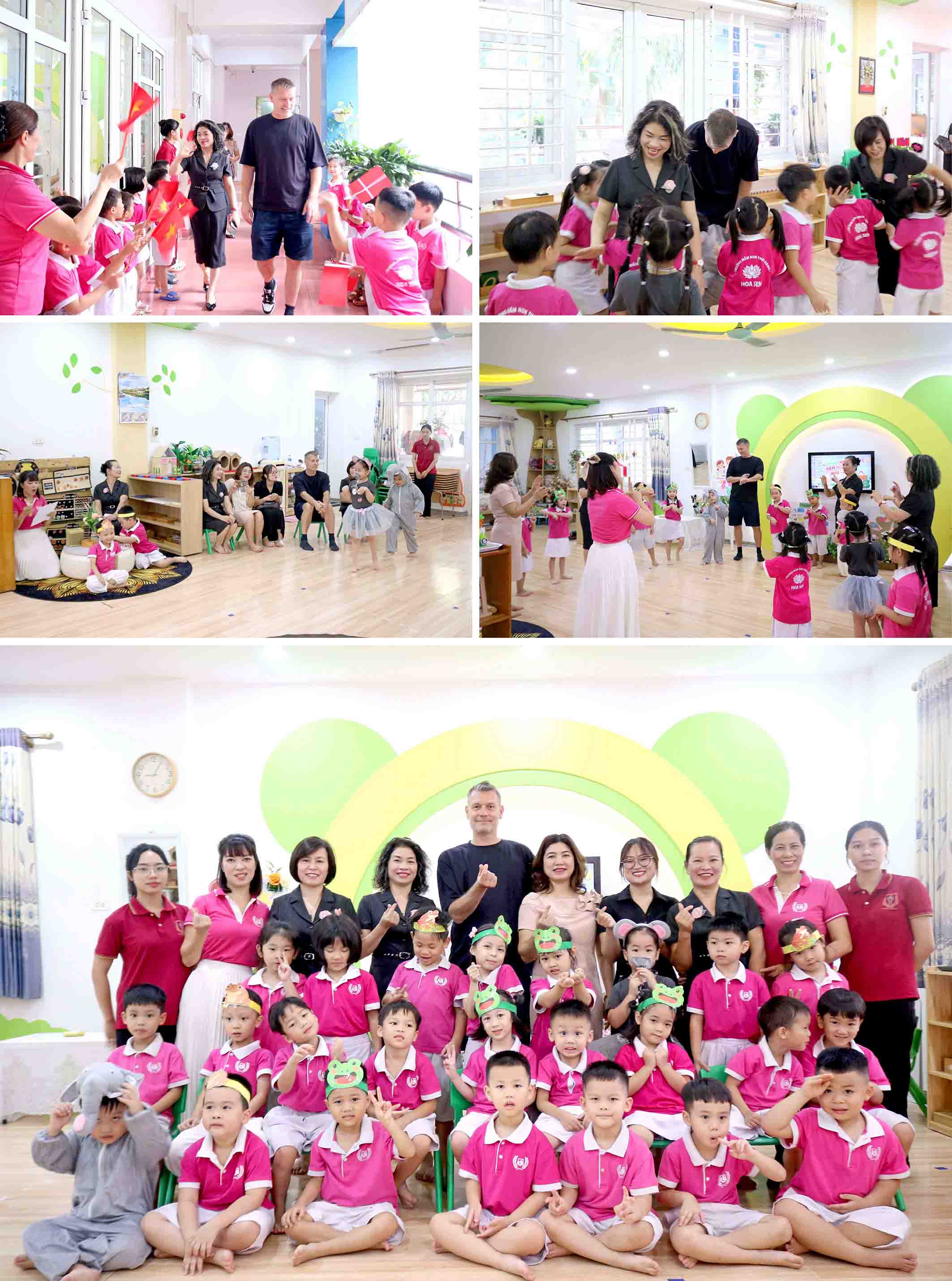 Đoàn tham dự tiết học Tiếng Anh và chụp ảnh lưu niệm tại lớp mẫu giáo lớn A5