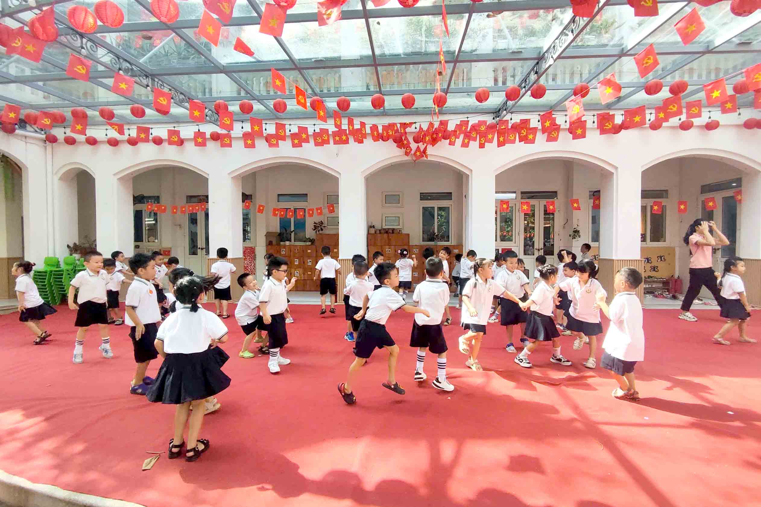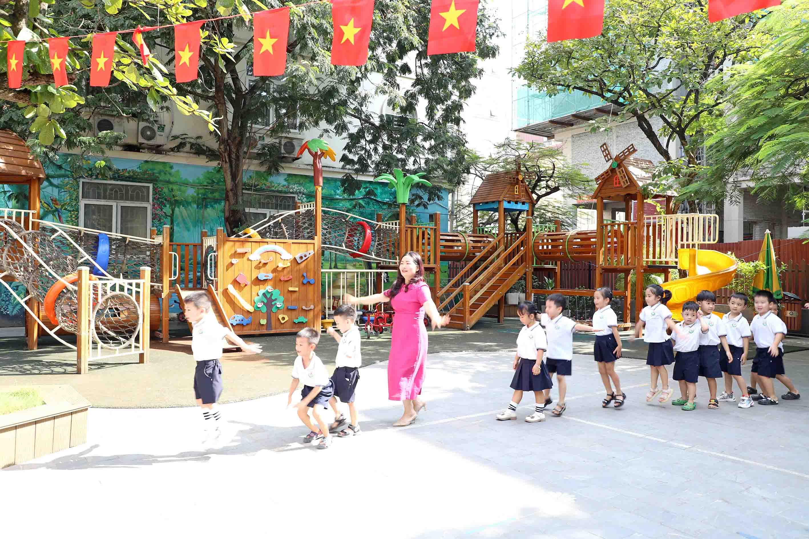 và trẻ lớp mẫu giáo lớn - Trường MNTH Hoa Thủy Tiên.