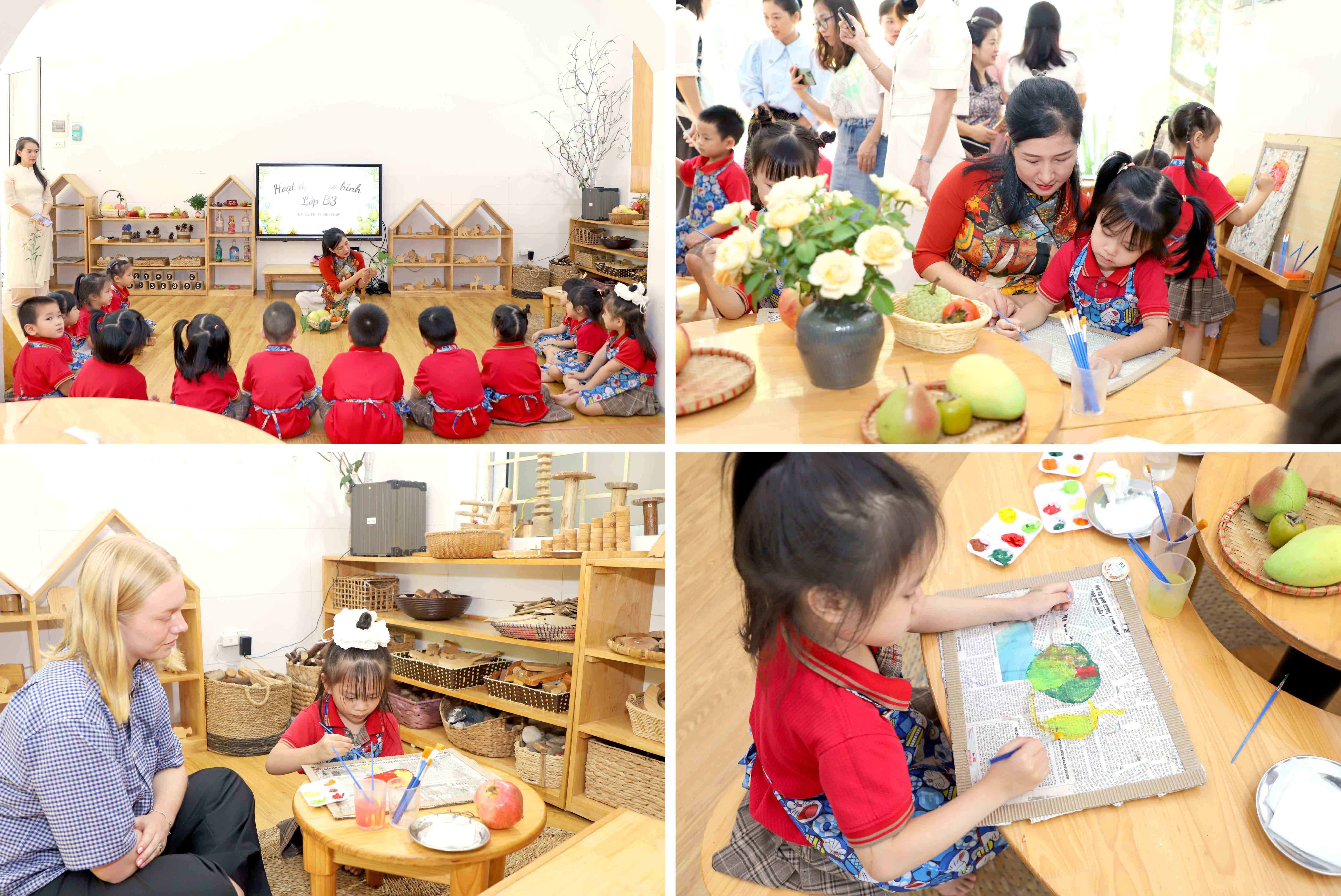 Đoàn chuyên gia, đại biểu và khách mời dự giờ hoạt động tạo hình “Vẽ tĩnh vật” do cô giáo