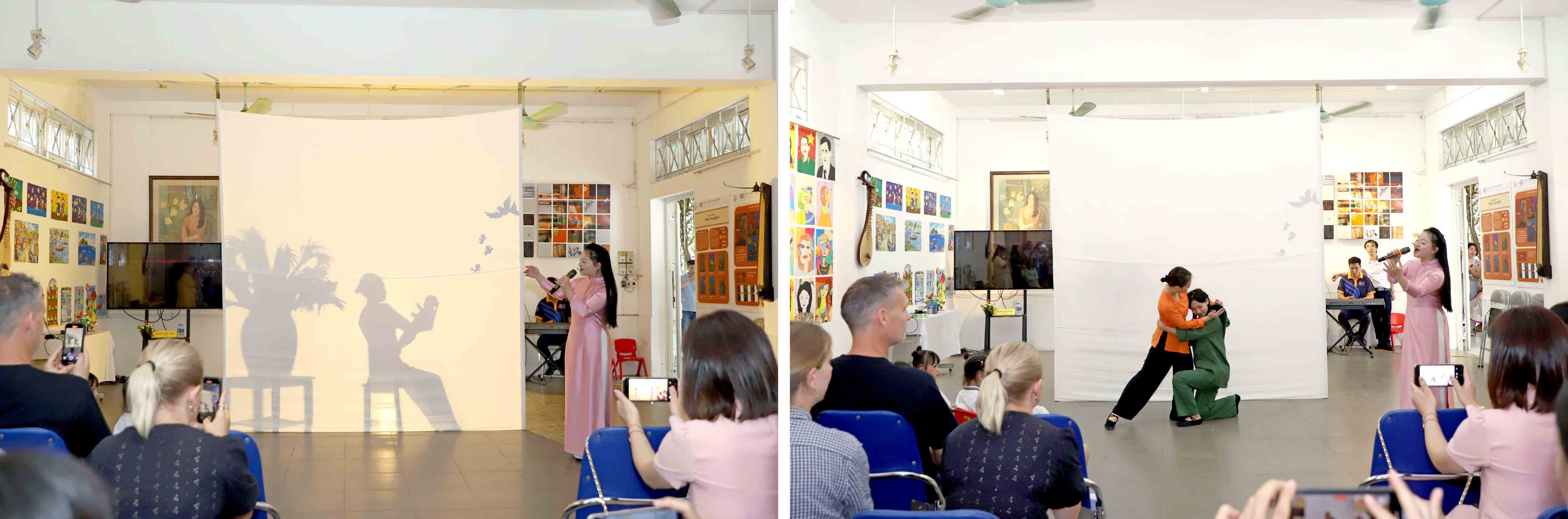Đoàn tham dự tiết học hoạt động âm nhạc và vở kịch “Thanh âm đầm lầy”, và chụp ảnh lưu niệm