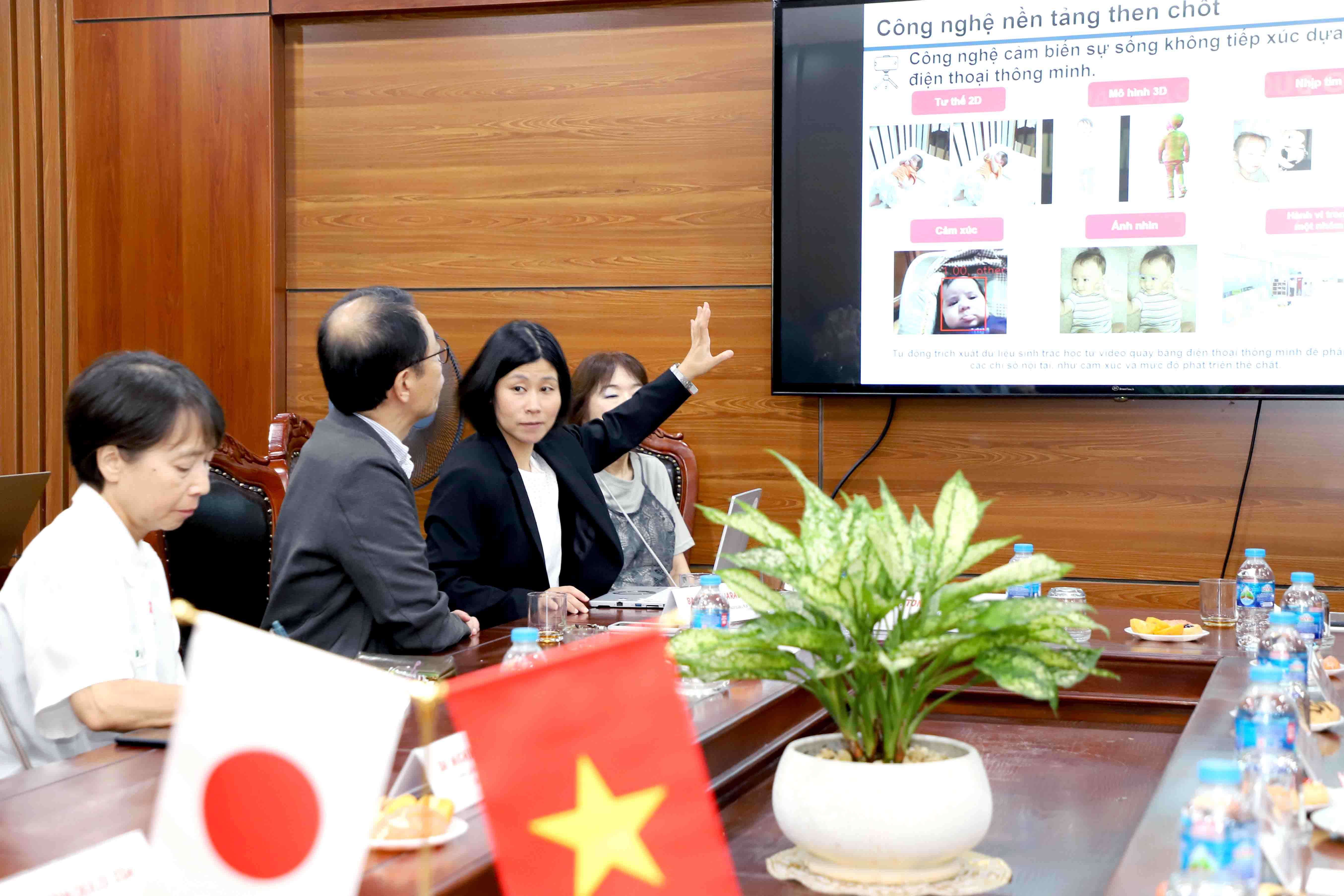 Đại diện Công ty Fvital, bà Michiko Kyokan - Trưởng phòng Y tế Toàn cầu, Công ty Fvital giới thiệu hệ thống công nghệ tiên tiến sử dụng phân tích hình ảnh, video để đánh giá chỉ số phát triển, kỹ năng giao tiếp xã hội, cảm xúc và hành vi của trẻ, từ đó hỗ trợ các chuyên gia thiết kế chương trình can thiệp cá nhân hóa, phù hợp với từng đối tượng.