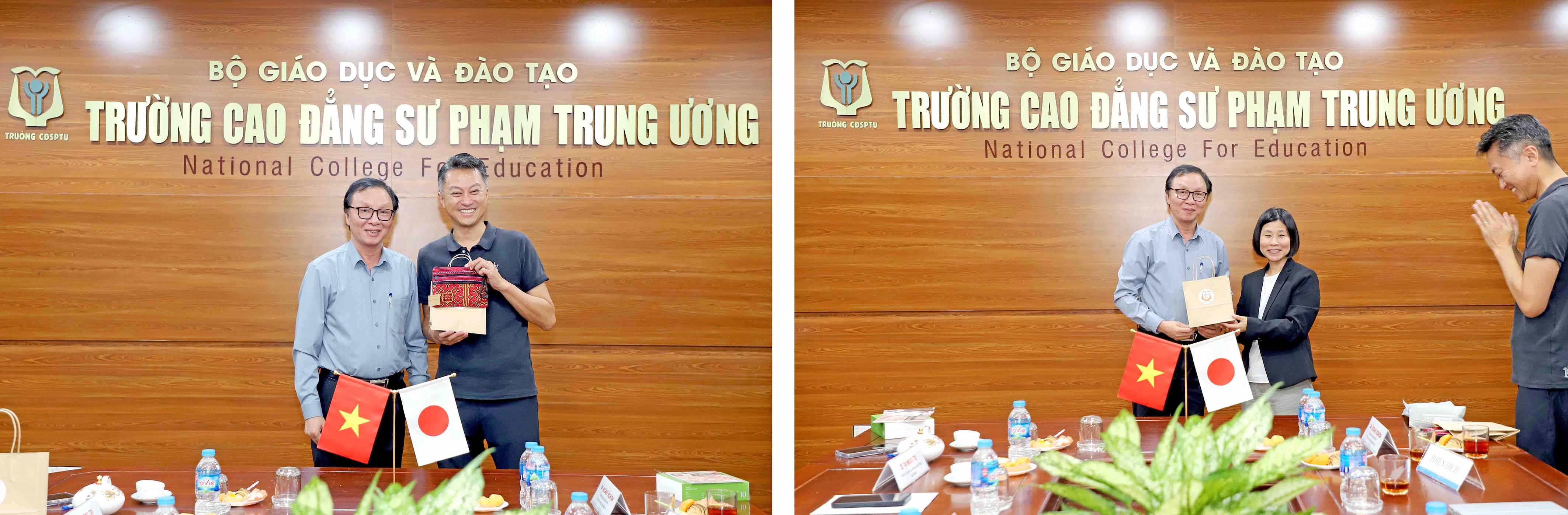 trao quà lưu niệm đến Trường Cao đẳng Sư phạm trung ương.