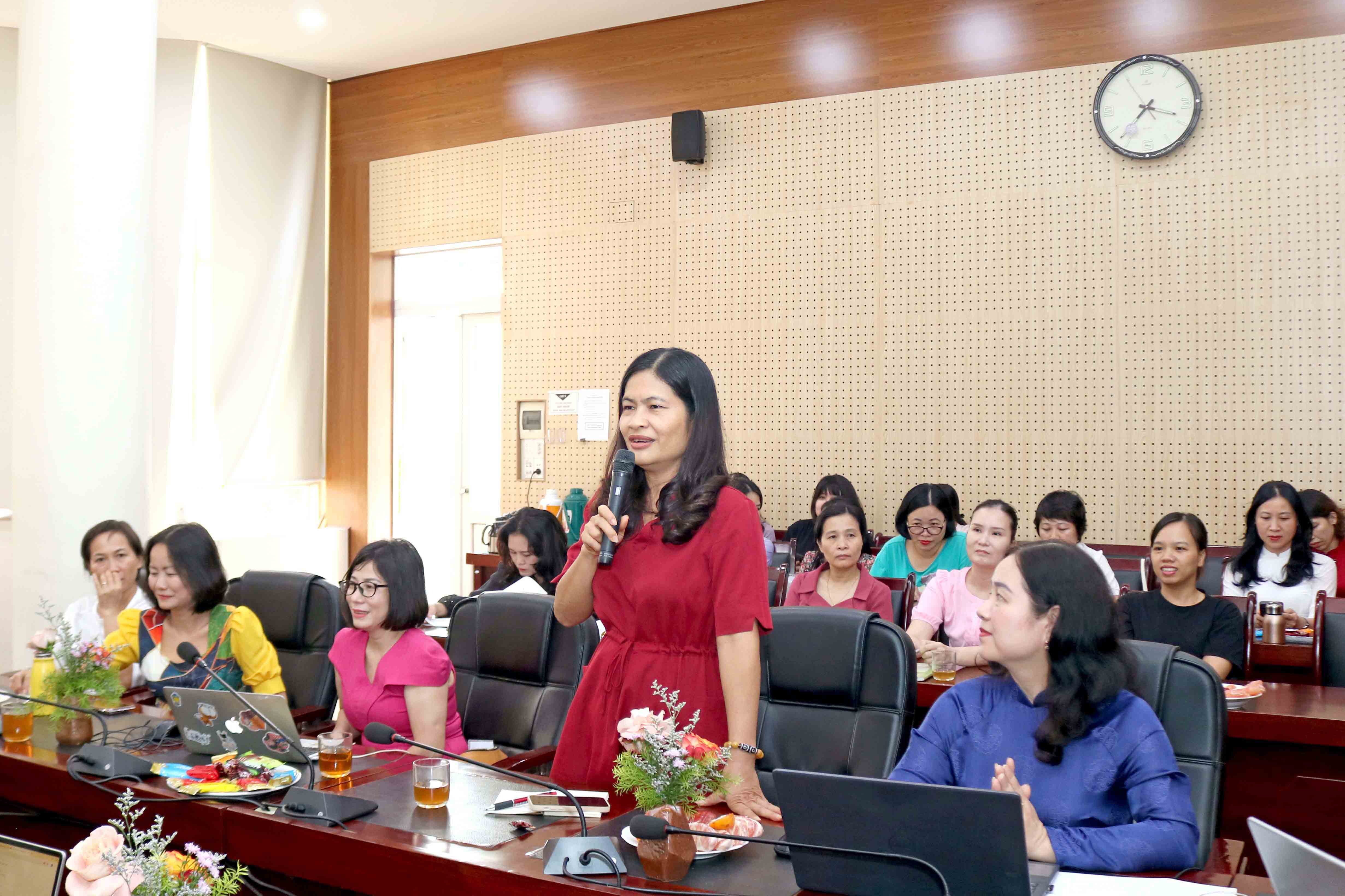 trình bày tham luận "Công tác chăm lo đời sống của công đoàn viên".