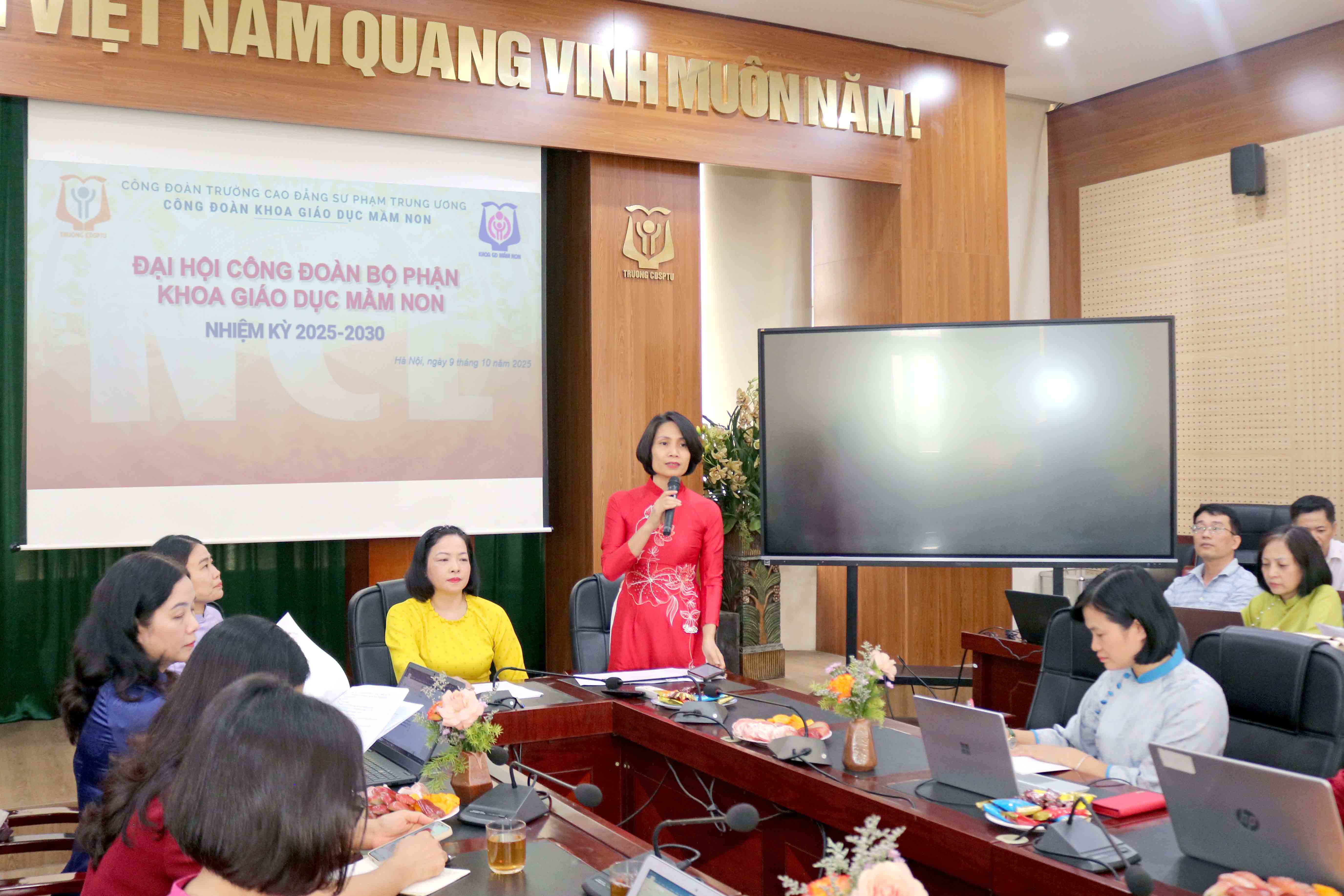 NCE Hướng tới Đại hội đại biểu toàn quốc lần thứ XIV của Đảng, Đại hội đại biểu lần thứ XII của Công đoàn Trường, thực hiện Điều lệ Công đoàn Việt Nam và sự chỉ đạo của Công đoàn cấp trên, chiều ngày 09/10/2025, tại Phòng Hội thảo tầng 5, nhà A, toàn thể viên chức, người lao động Khoa Giáo dục Mầm non (GDMN) đã long trọng tổ chức Đại hội Công đoàn nhiệm kỳ 2025-2030.