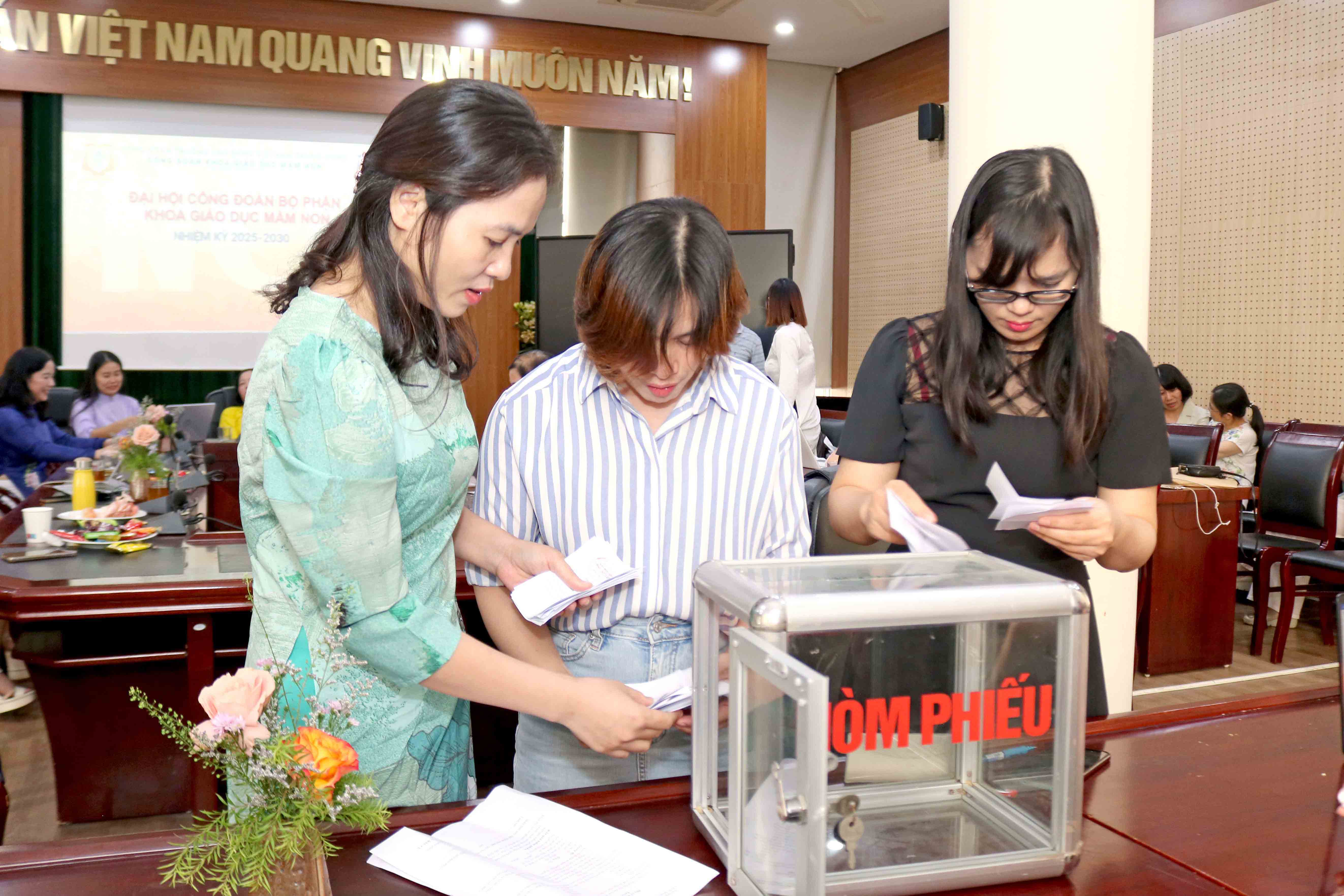 Công đoàn viên Khoa Giáo dục Mầm non tham gia bỏ phiếu bầu cử Ban Chấp hành