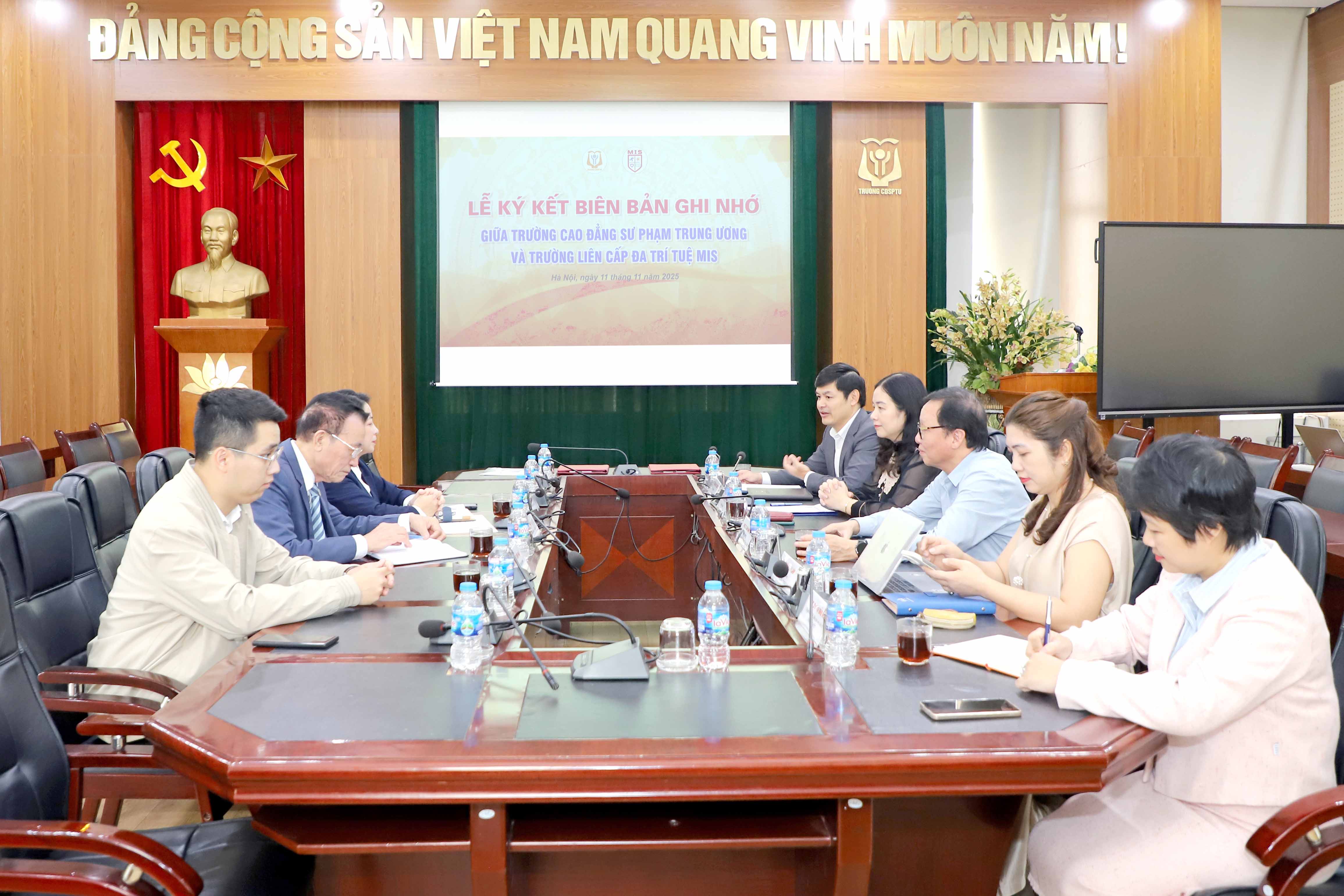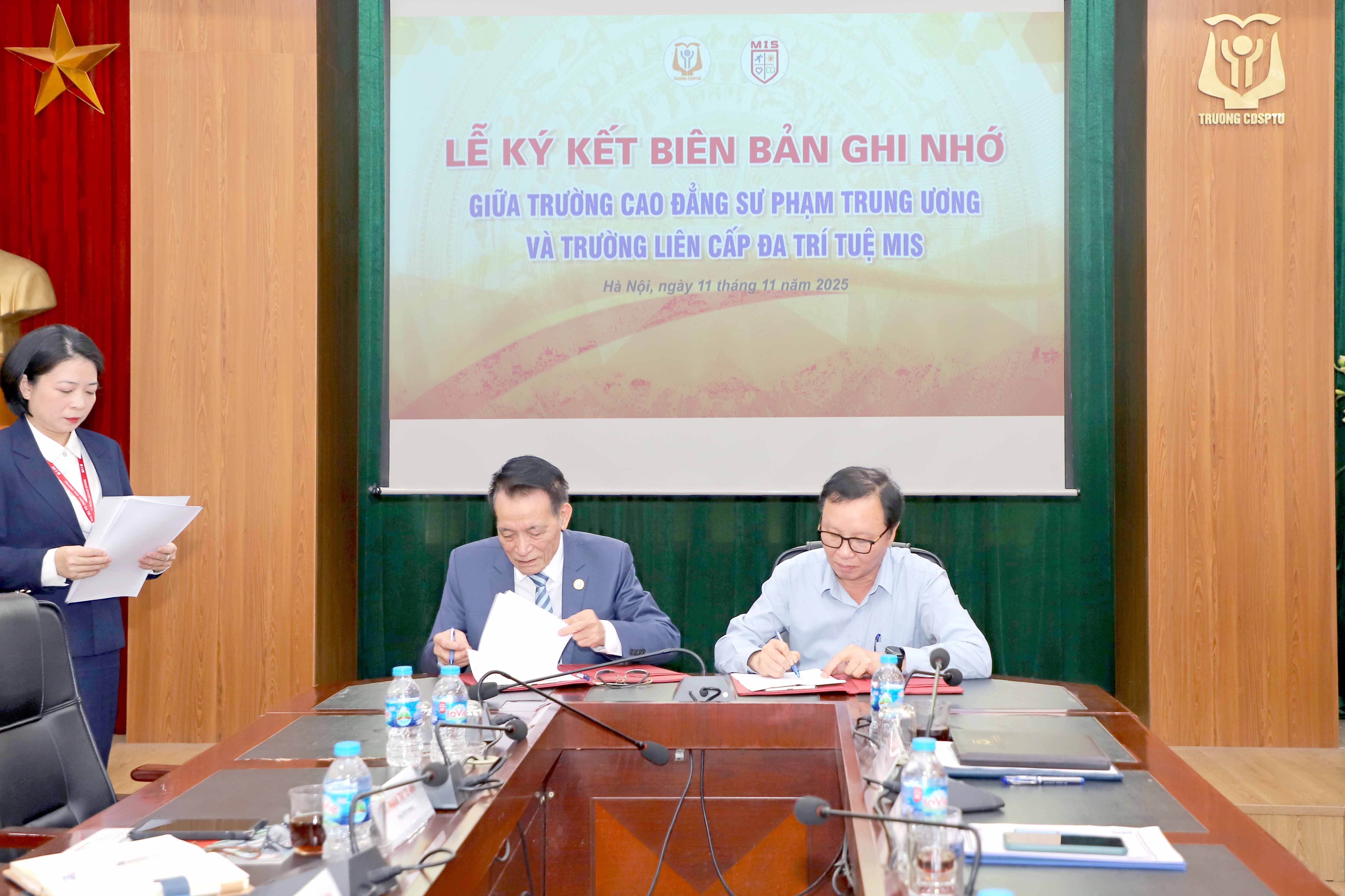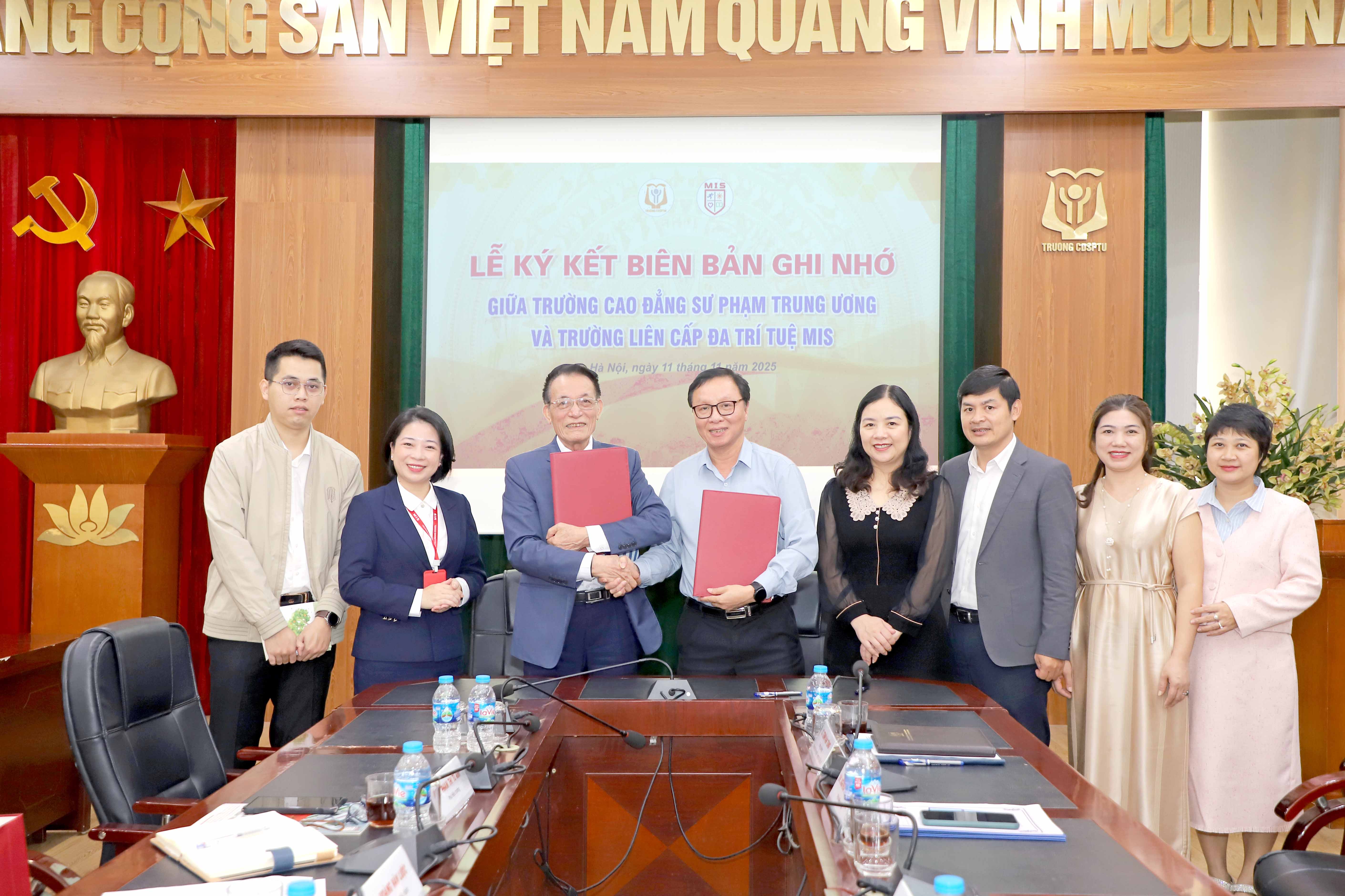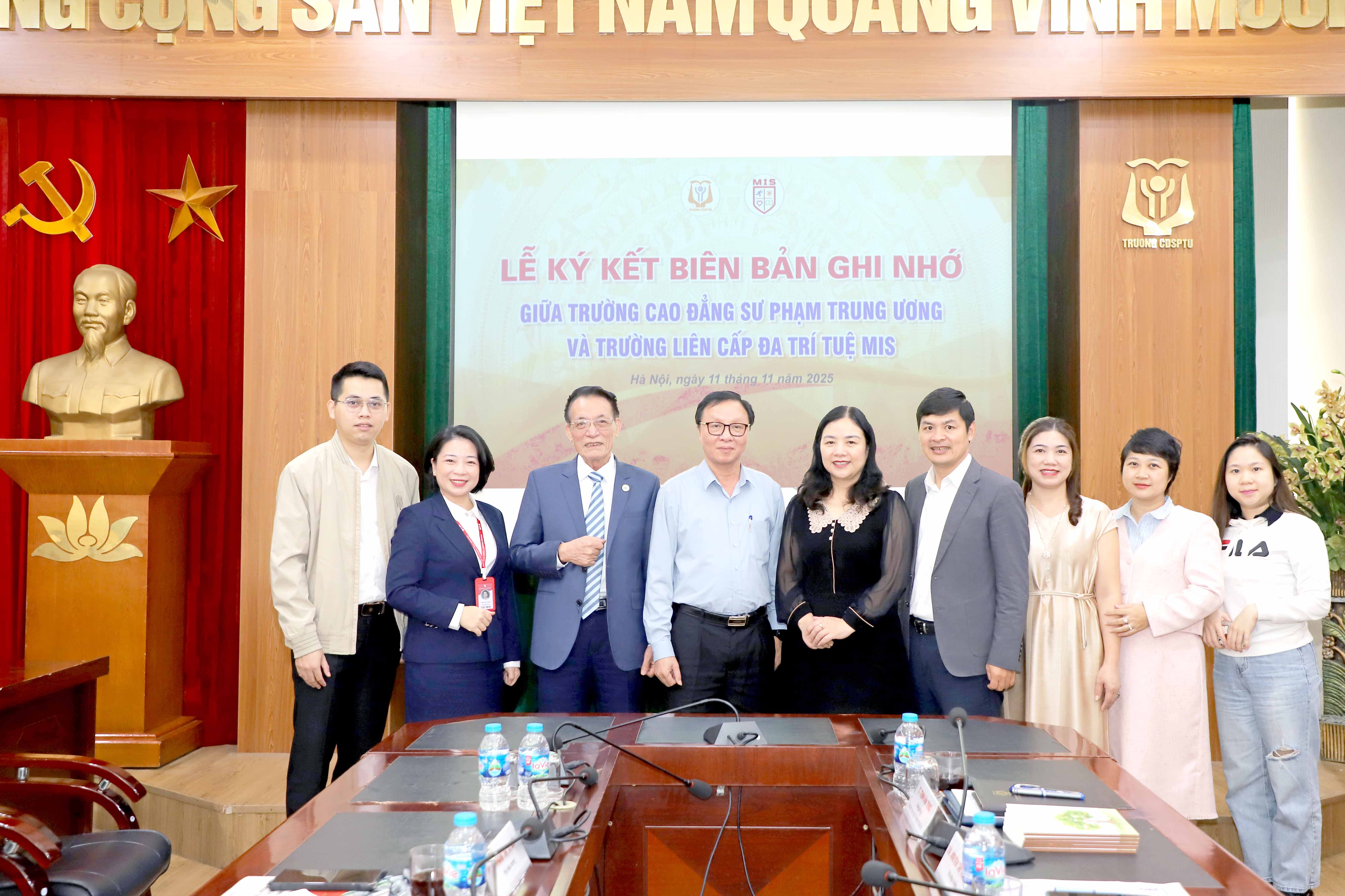 NCE Sáng ngày 11/11/2025, Trường Cao đẳng Sư phạm Trung ương (CĐSPTW) và Trường Liên cấp Đa Trí Tuệ MIS đã long trọng tổ chức Lễ ký kết Biên bản ghi nhớ hợp tác (MOU). Sự kiện đánh dấu bước tiến quan trọng trong hành trình hợp tác giáo dục, hướng tới mục tiêu phát triển nguồn nhân lực sư phạm chất lượng cao, đáp ứng yêu cầu đổi mới giáo dục trong bối cảnh hội nhập quốc tế.