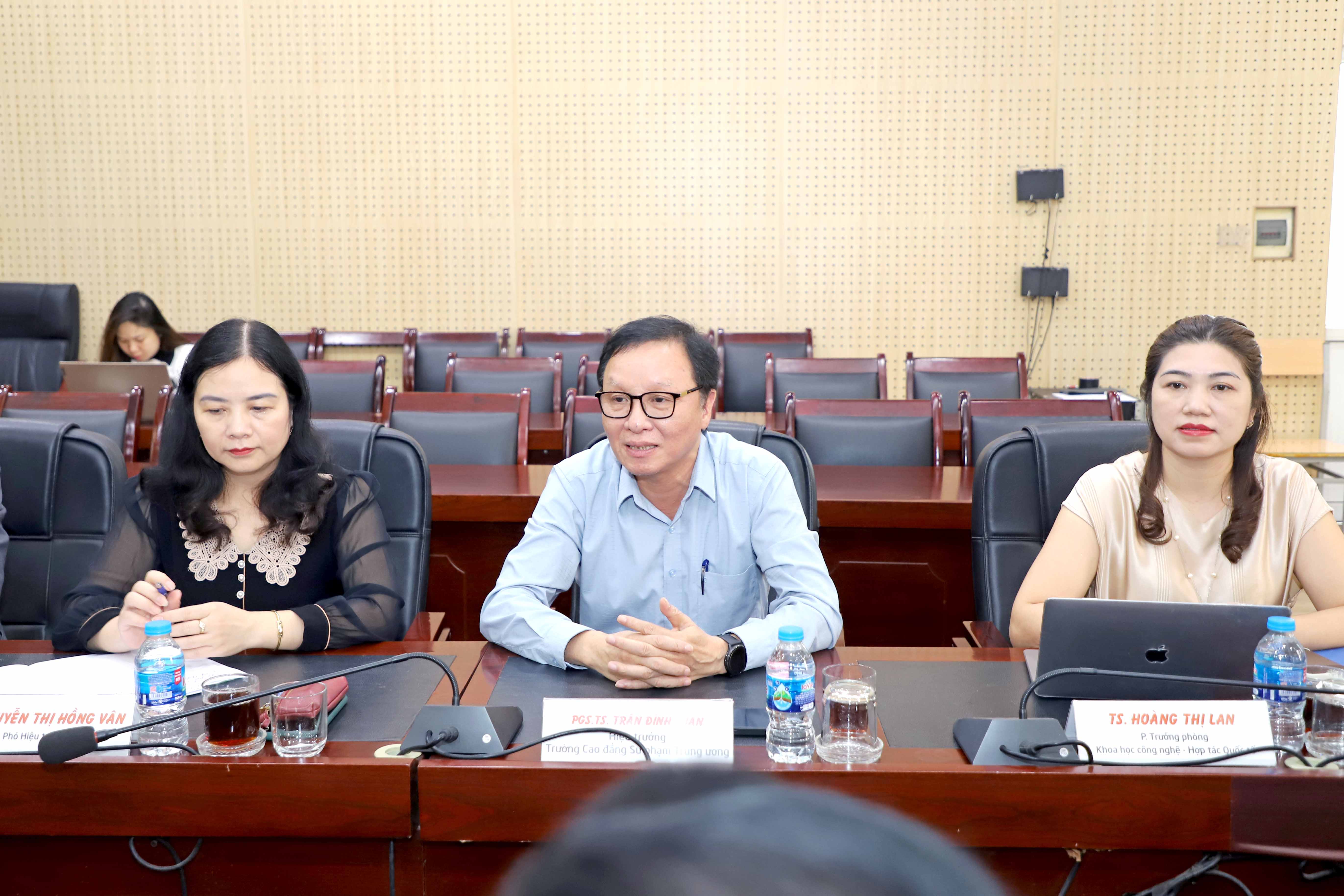 - Đại diện Trường CĐSPTW gồm PGS.TS Trần Đình Tuấn - Hiệu trưởng; TS. Nguyễn Thị Hồng Vân - Phó Hiệu trưởng; TS. Trịnh Văn Tùng - Trưởng Phòng Khoa học Công nghệ - Hợp tác Quốc tế cùng và chuyên viên Phòng Khoa học Công nghệ - Hợp tác Quốc tế.