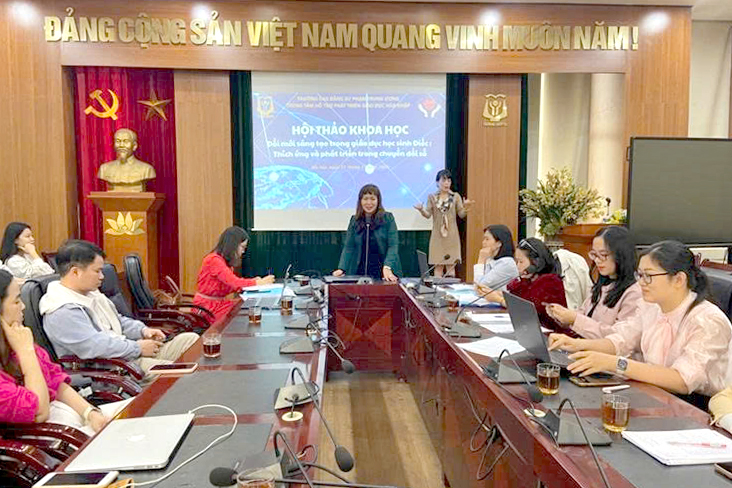 ThS. Nguyễn Thị Lan Phương - Giảng viên TTHTPTHN trình bày tham luận “Thích ứng và phát triển chuyển đổi số trong công tác dạy học môn Hoạt động trải nghiệm”.