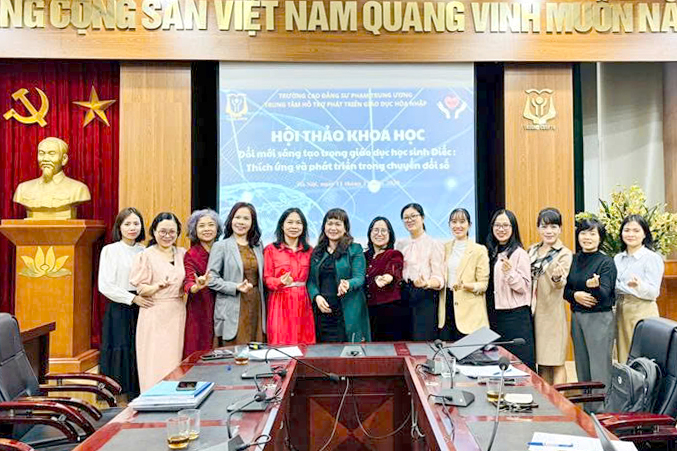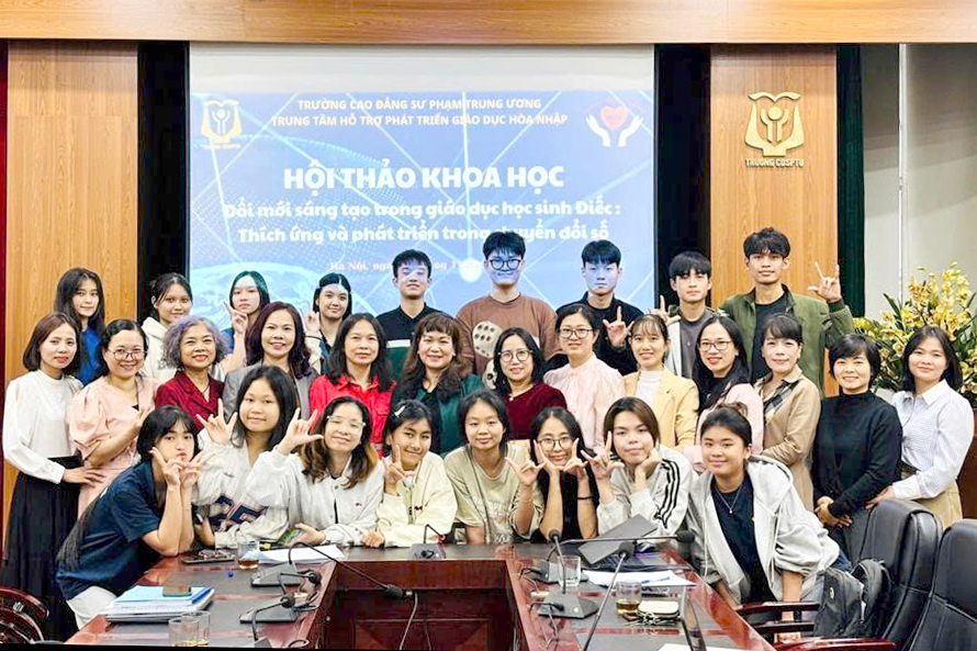 NCE Ngày 11/11/2025, tại Phòng Hội thảo tầng 5 Trường Cao đẳng Sư phạm Trung ương, Trung tâm Hỗ trợ Phát triển Giáo dục Hòa nhập (TTHTPTHN) - Trường Cao đẳng Sư phạm Trung ương (CĐSPTW) đã long trọng tổ chức Hội thảo khoa học cấp khoa với chủ đề: “Đổi mới sáng tạo trong giáo dục học sinh Điếc: Thích ứng và phát triển trong chuyển đổi số”. Hội thảo là diễn đàn khoa học nhằm trao đổi, chia sẻ những kinh nghiệm thực tiễn, các mô hình, giải pháp đổi mới và sáng tạo trong công tác giáo dục học sinh Điếc trong bối cảnh chuyển đổi số hiện nay.