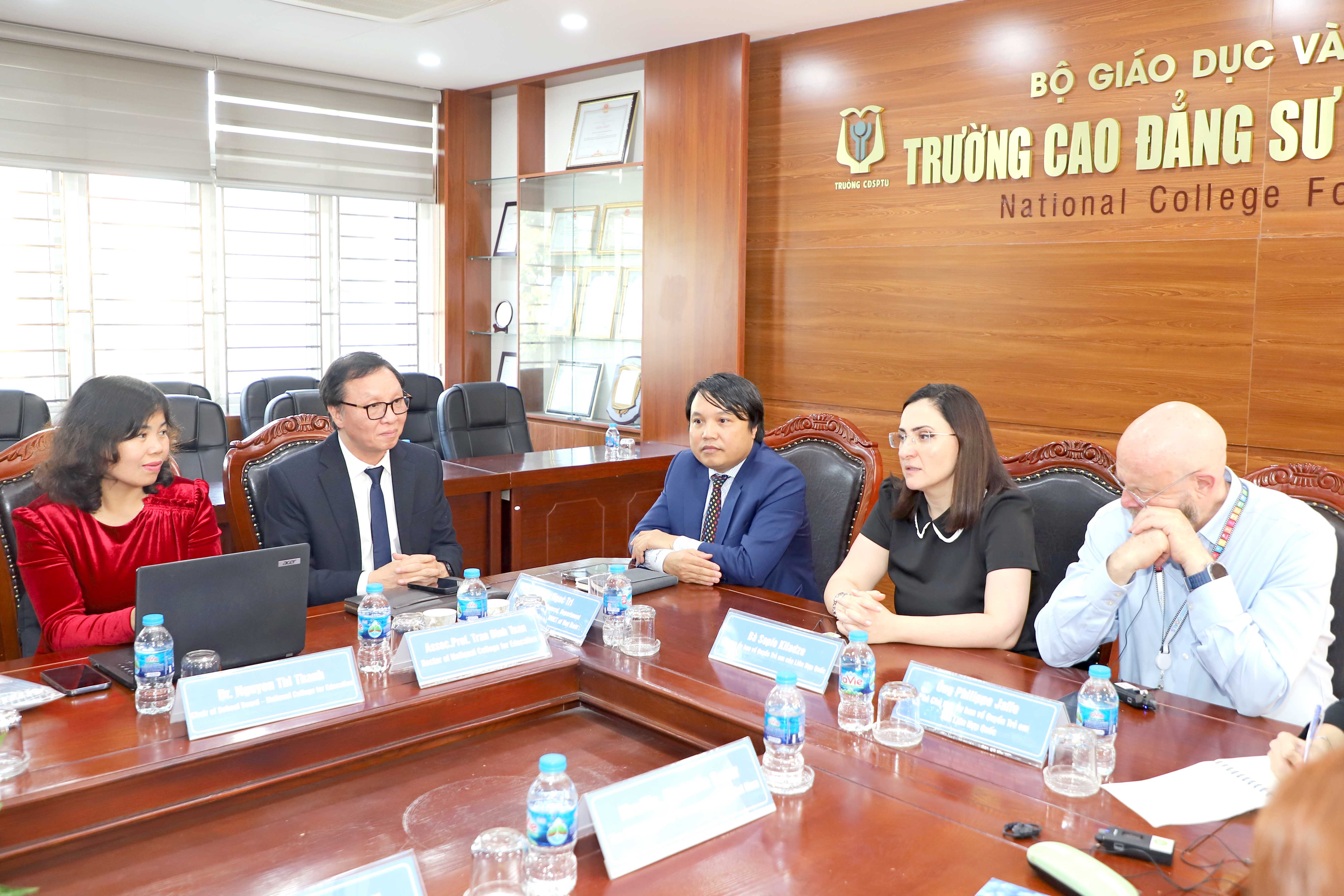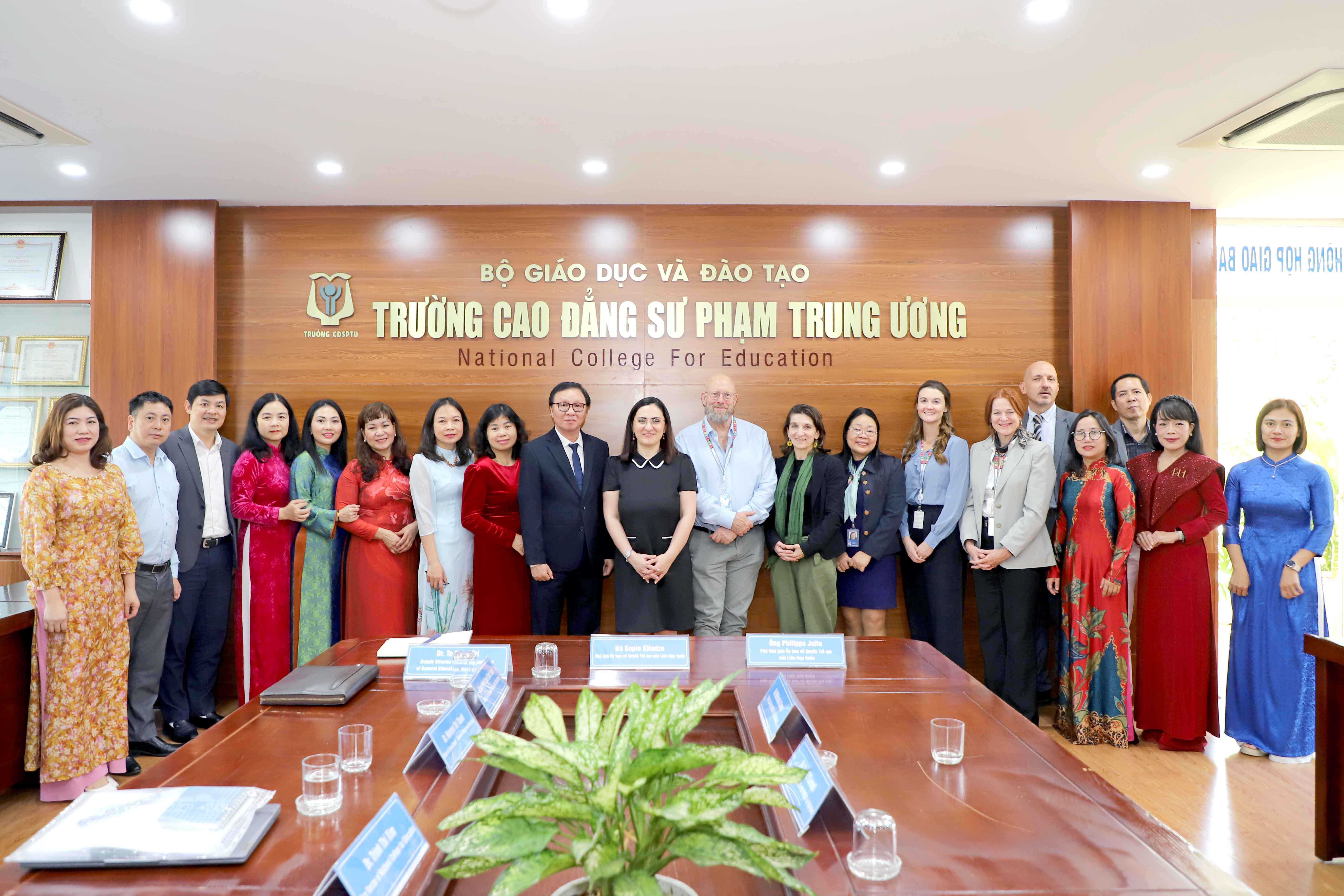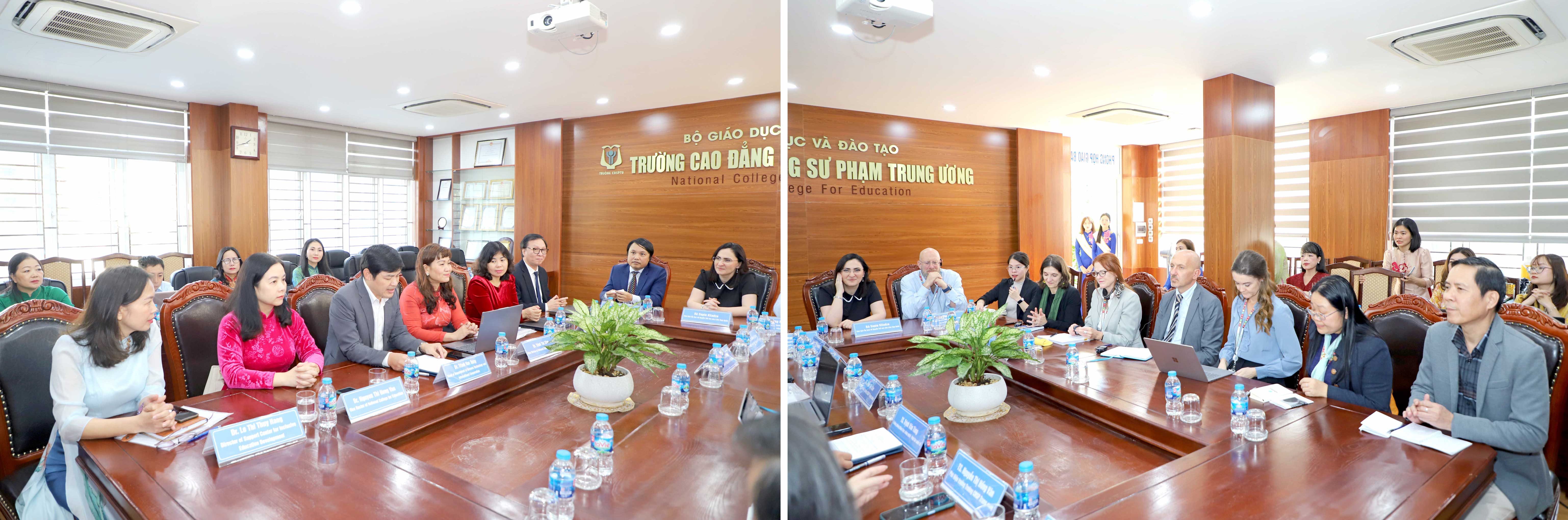 đại diện UNICEF Việt Nam và Ban giám hiệu, cán bộ Trường CĐSPTW buổi làm việc.
