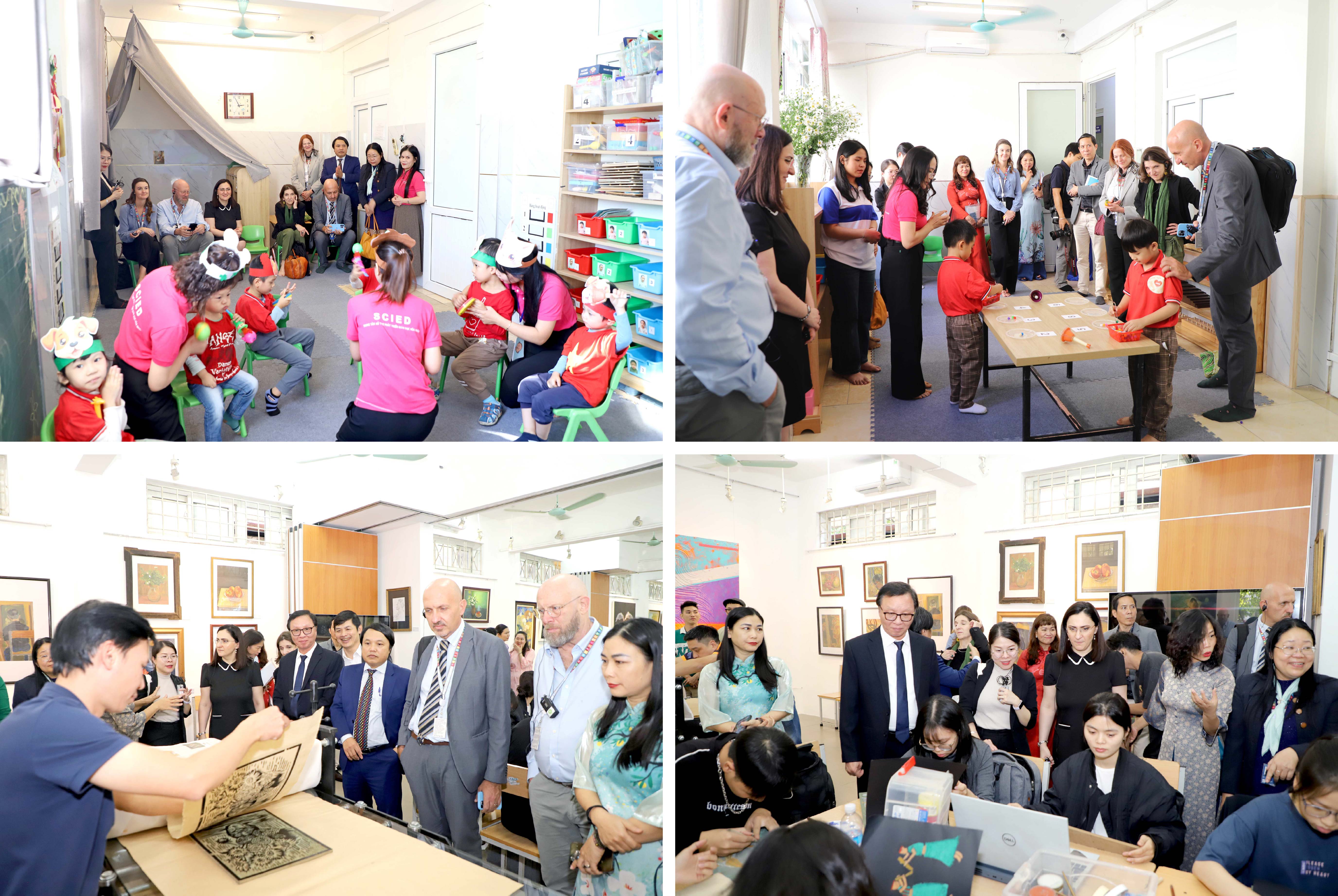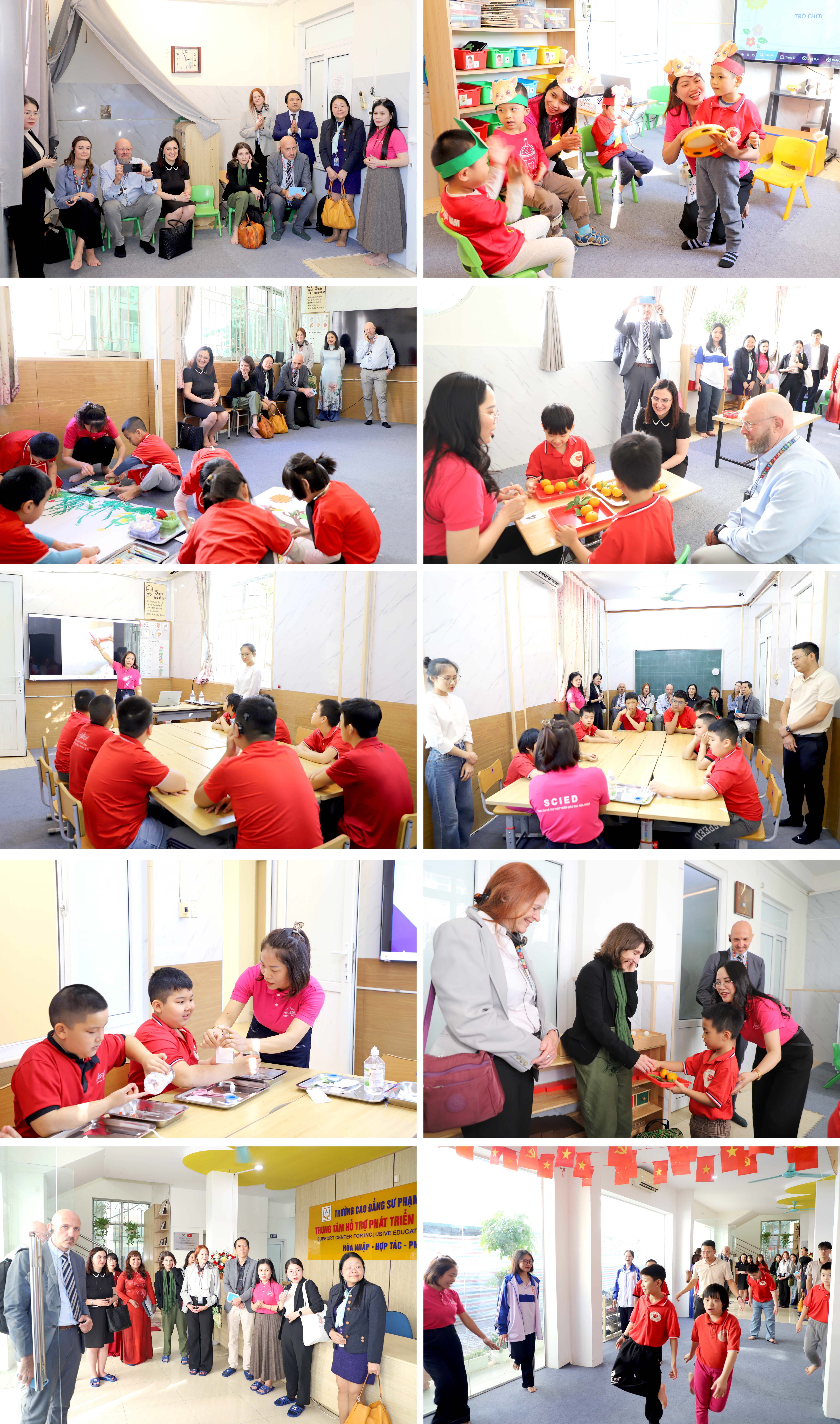 Phát biểu tại buổi tham quan và làm việc Ông Tạ Ngọc Trí - Phó Vụ trưởng Vụ Giáo dục phổ thông, Bộ GD&ĐT: “Thay mặt Bộ Giáo và Nhà trường nhiệt liệt chào mừng đoàn đến thăm Việt Nam. Việt Nam đã đạt được 1 số kết quả về bảo vệ quyền trẻ em và hỗ trợ trẻ khuyết tật. Theo như Bà Sophio Kiladze trao đổi, Việt Nam là quốc gia đầu tiên ở châu Á và là quốc gia thứ hai trên thế giới kí vào công ước quyền trẻ em và công ước quyền trẻ em khuyết tật. Cảm ơn tổ chức UNICEF đã hỗ trợ và đồng hành và đưa Trung tâm Hỗ trợ phát triển Giáo dục hoà nhập về Việt Nam”. Ngoài ra, Ông Tạ Ngọc Trí cũng chia sẻ thêm về những khó khăn khi ban hành Nghị quyết số 71-NQ/TW về đột phá phát triển giáo dục và đào tạo, nhằm đạt mục tiêu giáo dục những người khuyết tật lên cấp THPT. Chúng tôi mong muốn trong hơn 3000 trường mầm non và các trường tư thục sẽ có các lớp học hoà nhập, rất mong muốn nhận được sự ủng hộ và hỗ trợ từ phía tổ chức.