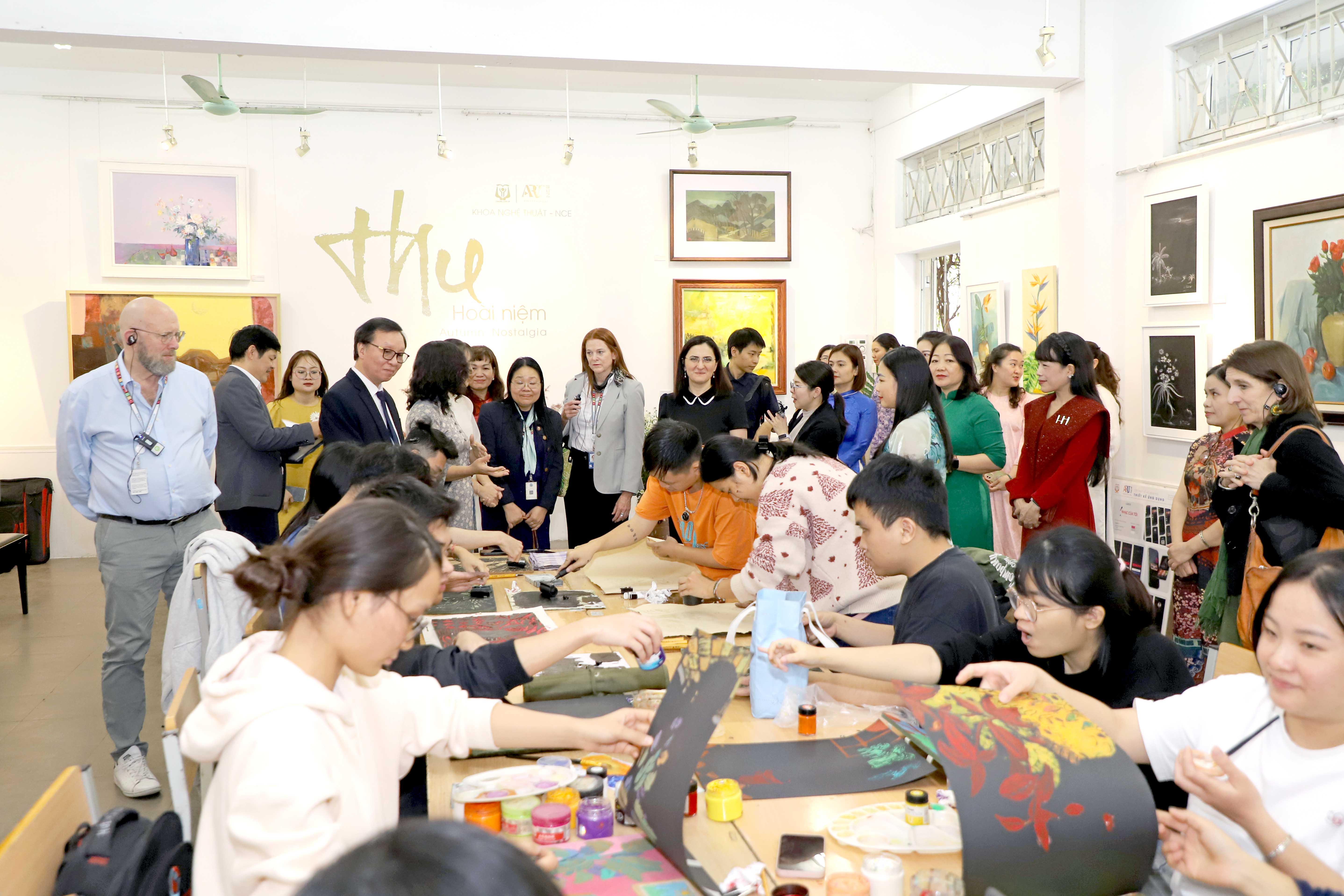 Tiếp theo, Đoàn có những hoạt động giao lưu ý nghĩa đối với Sinh viên, học sinh Điếc tại Trung tâm Hỗ trợ phát triển Giáo dục hoà nhập và Sinh viên ngành Thiết kế đồ họa tại Khoa Nghệ thuật.