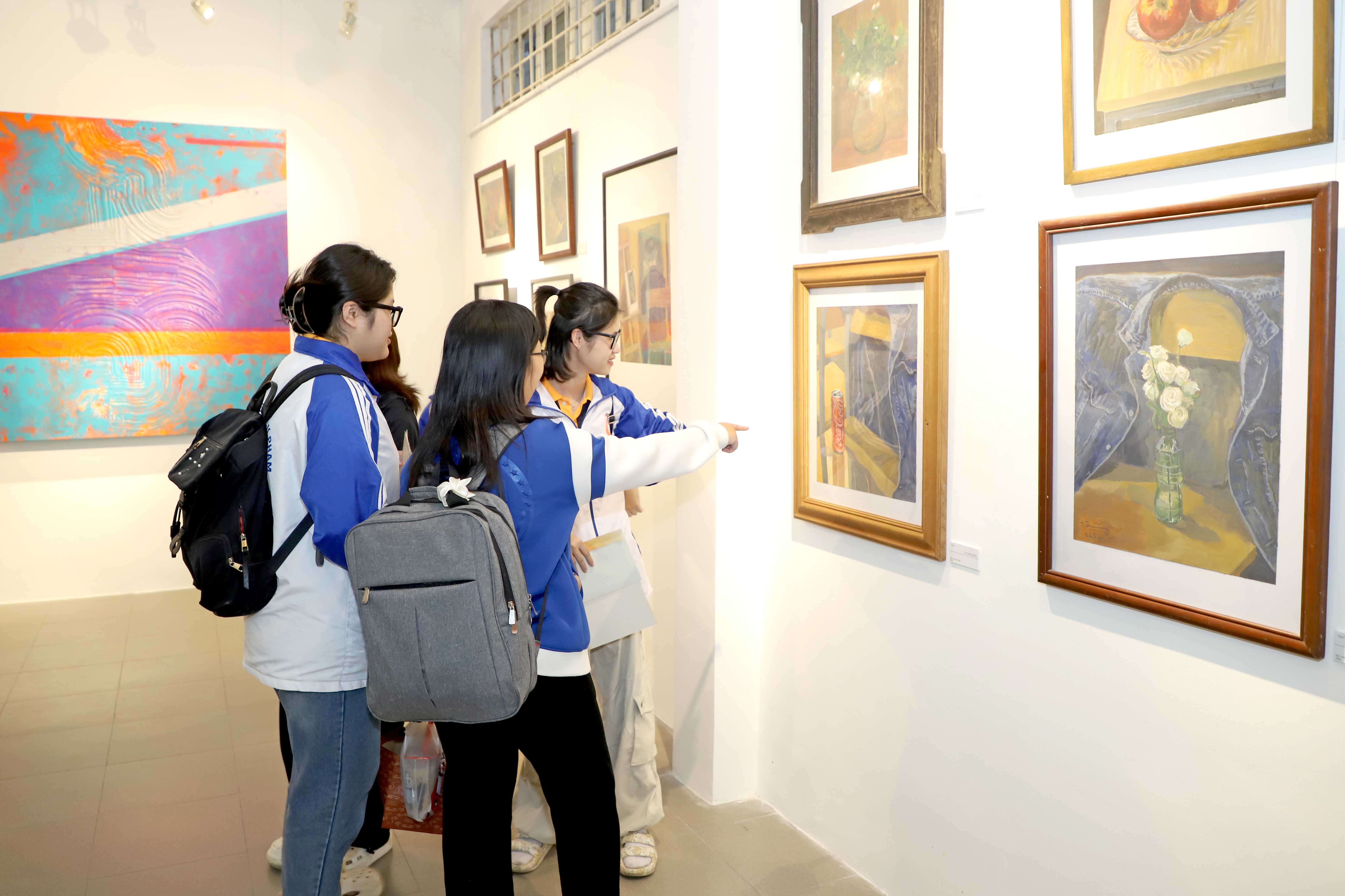 Đại biểu và các đơn vị trong Nhà trường tham dự triển lãm mỹ thuật "Thu hoài niệm" năm 2025 và chúc mừng Khoa Nghệ thuật: