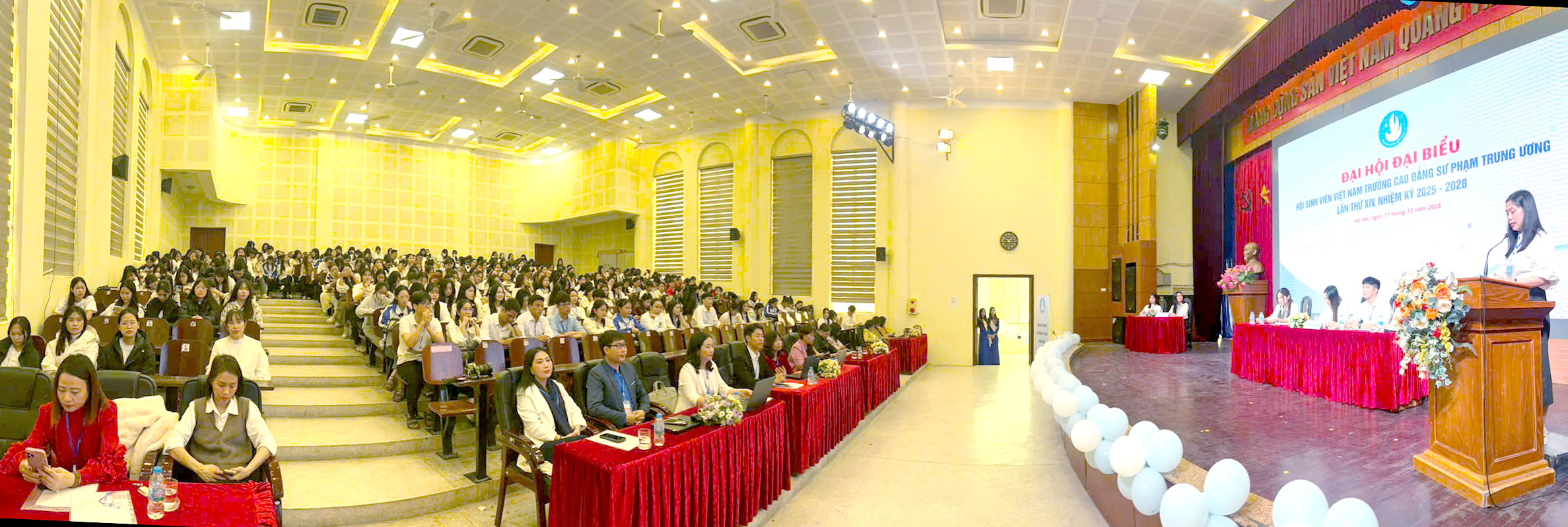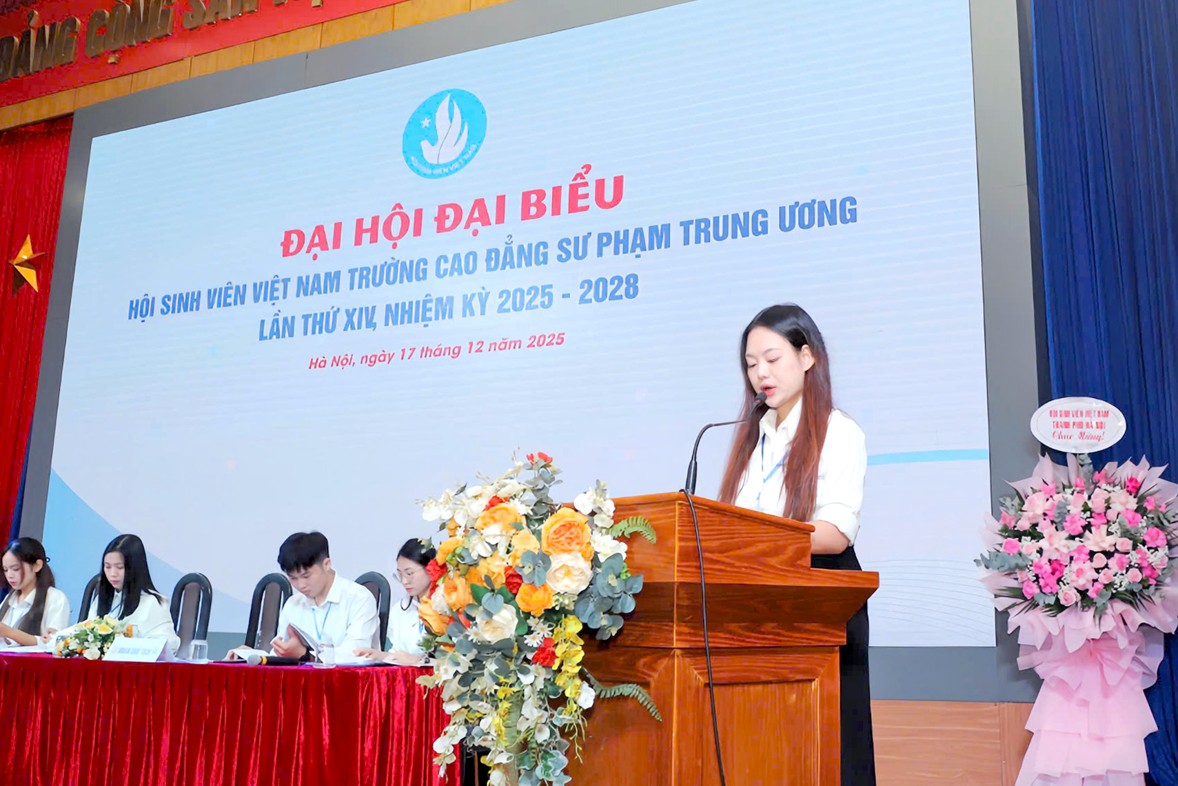 NCE Thực hiện chương trình công tác Hội và phong trào sinh viên năm học 2025-2026 và kế hoạch của Hội Sinh viên Việt Nam thành phố Hà Nội về việc tổ chức Đại hội Hội Sinh viên Việt Nam các cấp, nhiệm kỳ 2025-2028. Được sự đồng ý của Đảng ủy - Ban Giám hiệu Nhà trường và Hội Sinh viên thành phố Hà Nội, sáng ngày 17/12/2025, Hội Sinh viên Việt Nam Trường Cao đẳng Sư phạm Trung ương (CĐSPTW) long trọng tổ chức Đại hội Đại biểu lần thứ XIV, nhiệm kỳ 2025-2028.