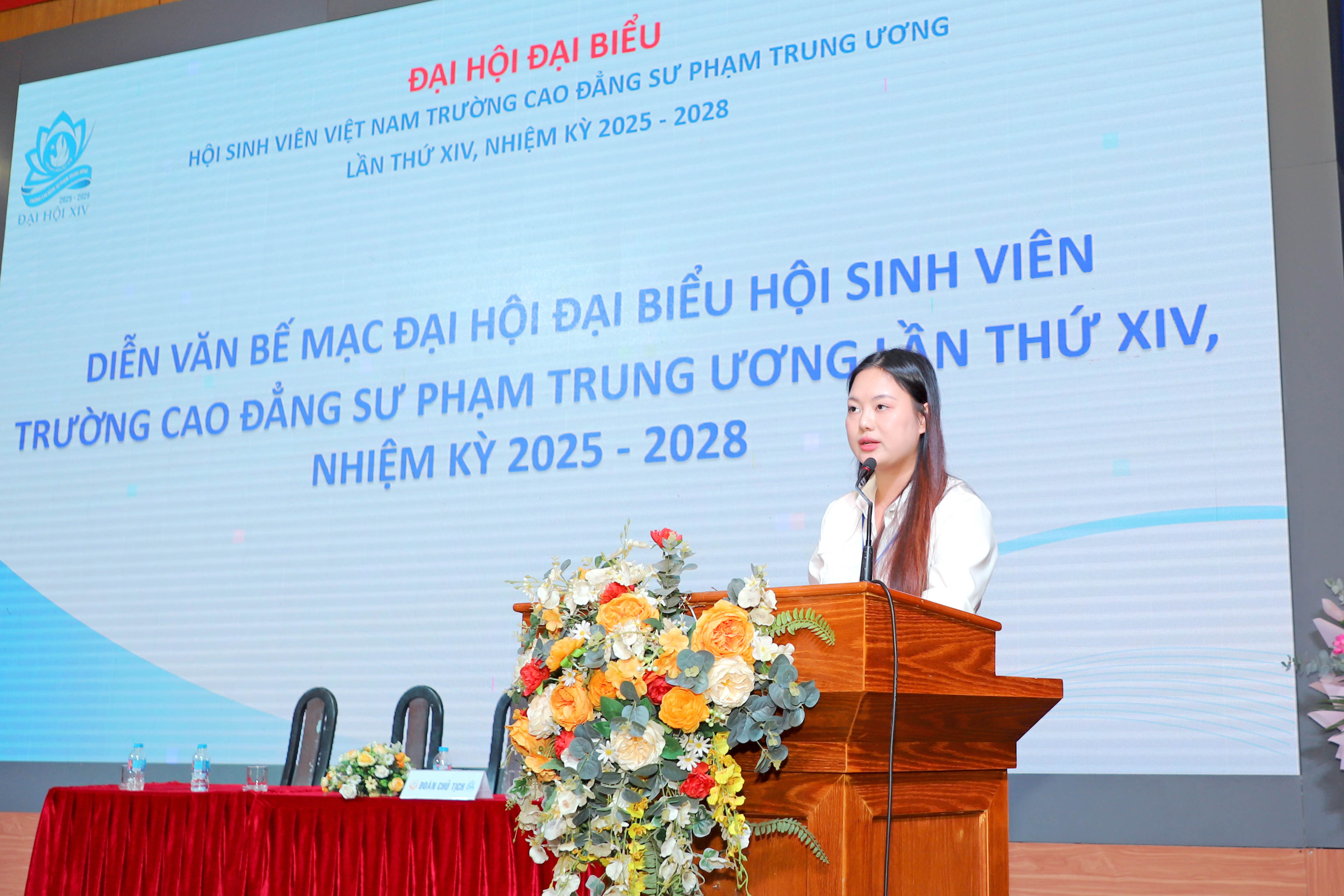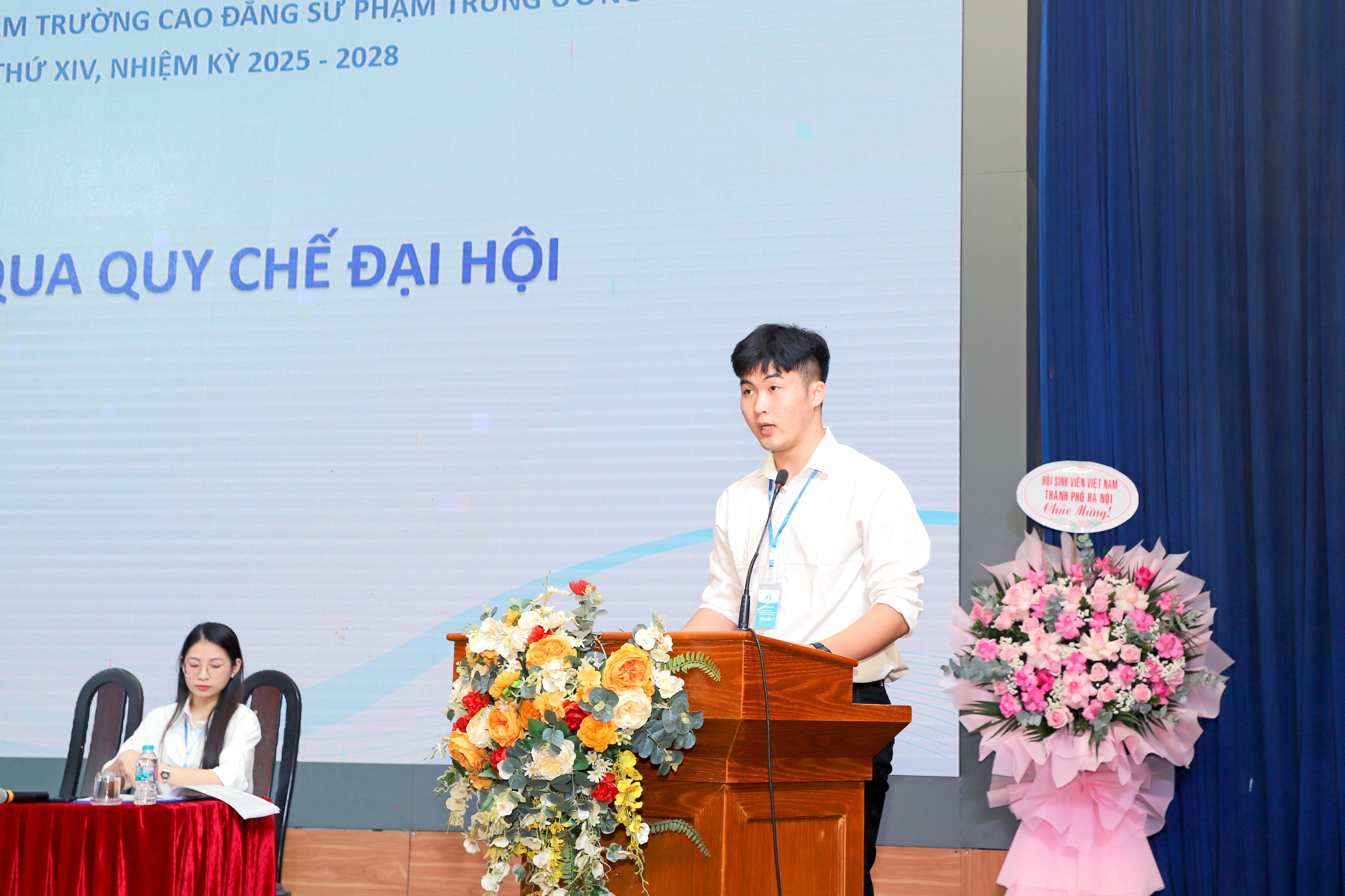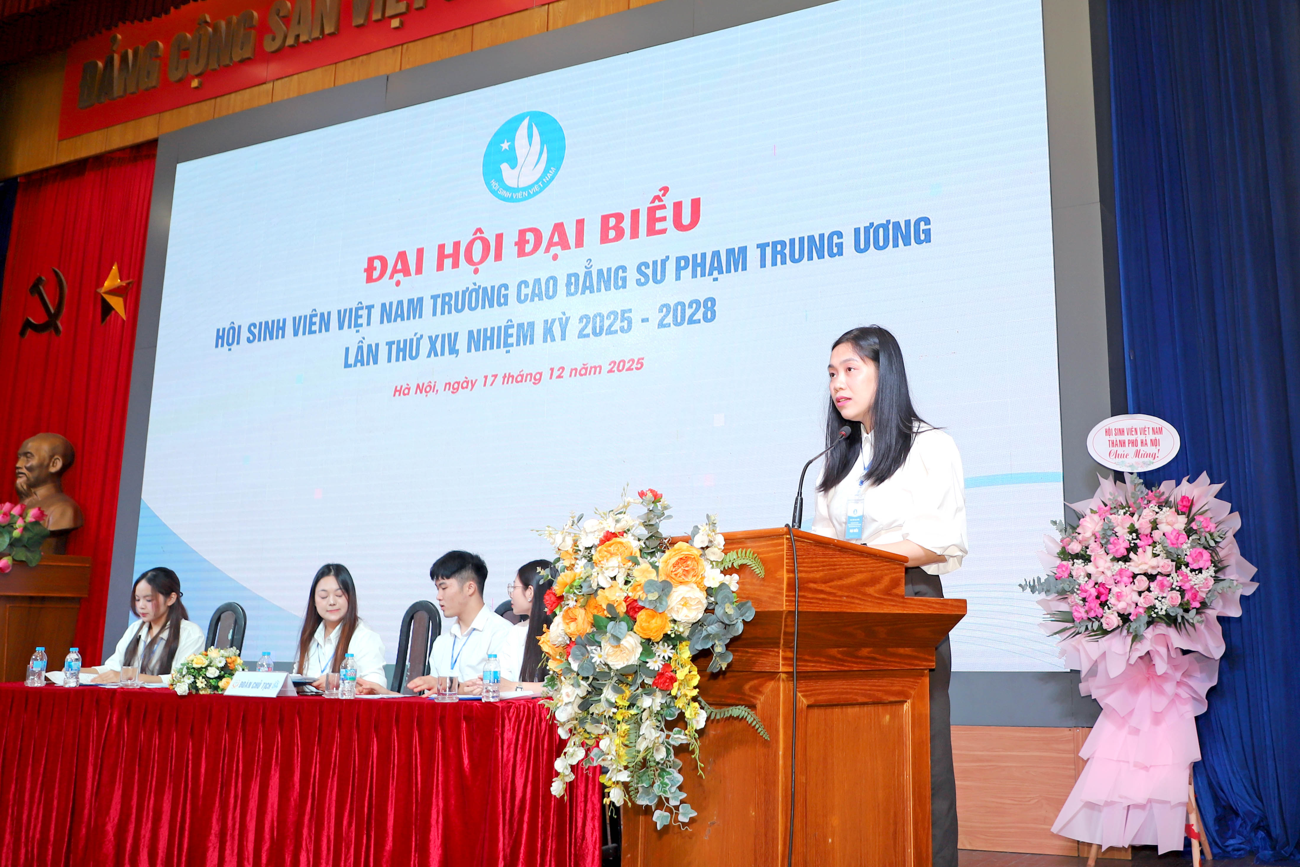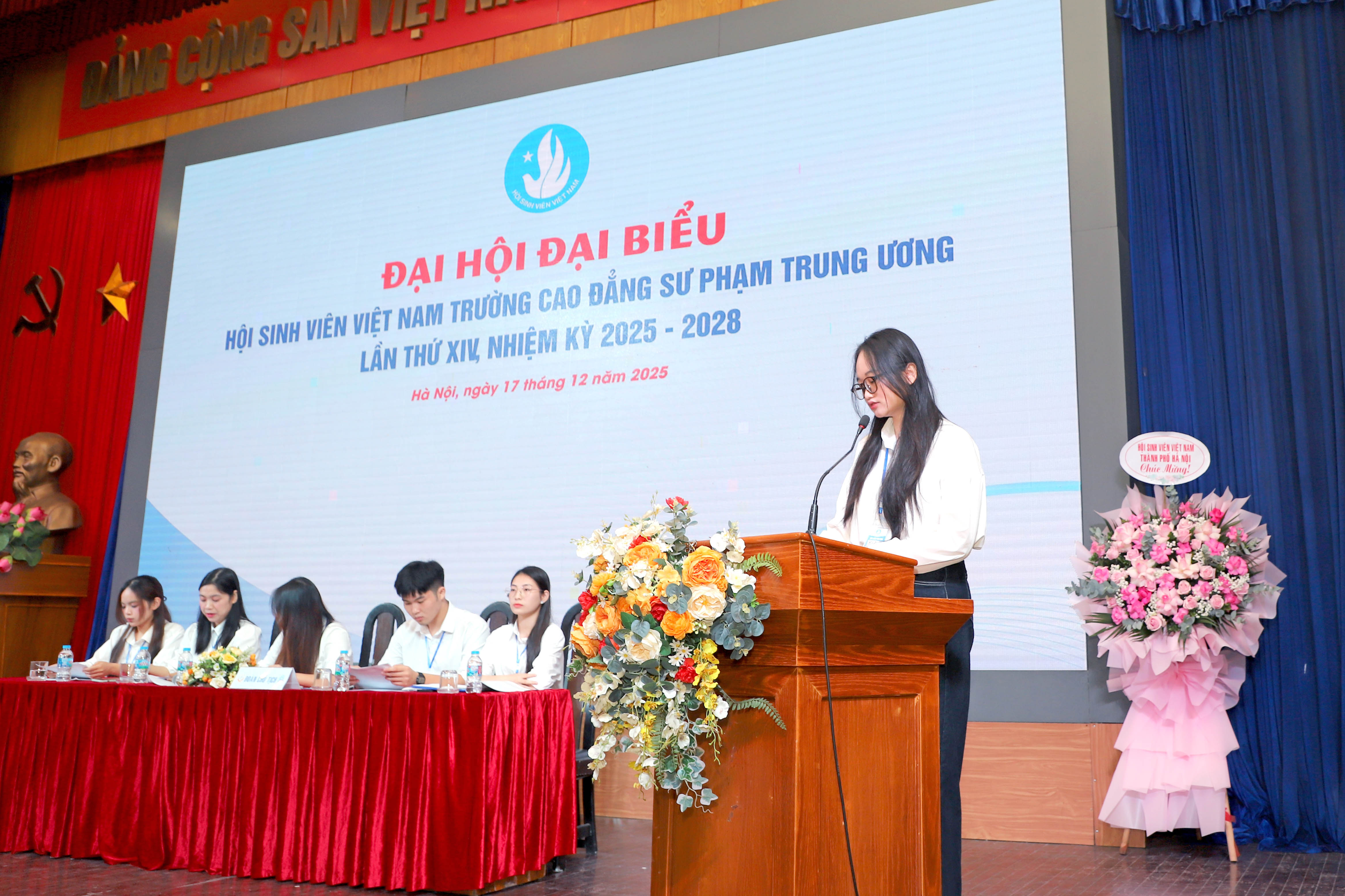 Đại hội Đại biểu Hội Sinh viên Trường CĐSPTW lần thứ XIV diễn ra trong 02 phiên. Tại phiên thứ nhất, Đại hội đã nghe đồng chí Ths Lê Thị Hồng Nhung - Phó Chủ tịch Hội Sinh viên trường khóa XIII trình bày báo cáo kiểm điểm của tập thể Ban Chấp hành Hội Sinh viên trường khóa XIII trên các mặt công tác, đồng thời Đại hội tiến hành hiệp thương bầu Ban Chấp hành Hội Sinh viên trường khóa XIV, nhiệm kỳ 2025-2028 gồm 17 đồng chí và Ban Kiểm tra Hội Sinh viên trường khóa XIV gồm 05 đồng chí.