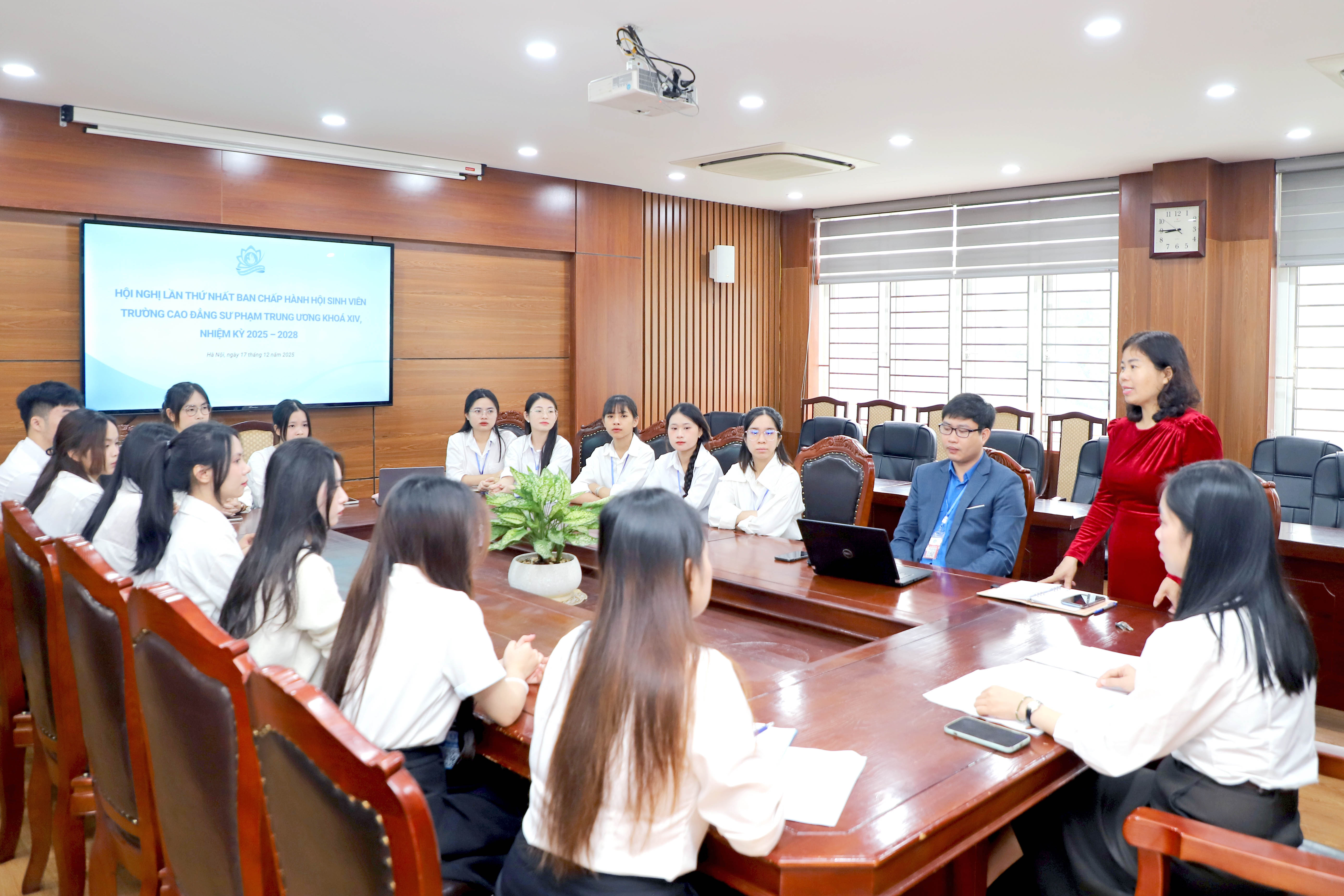 Kết thúc phiên làm việc thứ nhất, Ban Chấp hành Hội Sinh viên trường khóa XIV đã tiến hành Hội nghị lần thứ nhất, bầu các chức danh Chủ chốt của Hội Sinh viên trường khóa XIV, nhiệm kỳ 2025-2028. Đồng chí Tạ Thị Hà Ly - Uỷ viên Ban Thường vụ Đoàn trường đã được tập thể Ban Chấp hành tín nhiệm hiệp thương bầu giữ chức danh Chủ tịch Hội Sinh viên trường khóa XIV; Đồng chí Lê Thị Hồng Nhung - UVBCH Đoàn trường, Phó Chủ tịch Hội Sinh viên trường khóa XIII và đồng chí Mai Thanh Trúc - Chi hội trưởng Chi hội 24MN - CN MNTT2 đã được Hội nghị tín nhiệm hiệp thương bầu giữ chức danh Phó Chủ tịch Hội Sinh viên trường khóa XIV. Đồng chí Lê Thị Hồng Nhung - Phó Chủ tịch Hội Sinh viên trường khóa XIV được hiệp thương bầu giữ chức danh Trưởng Ban Kiểm tra Hội Sinh viên trường khóa XIV, nhiệm kỳ 2025-2028.