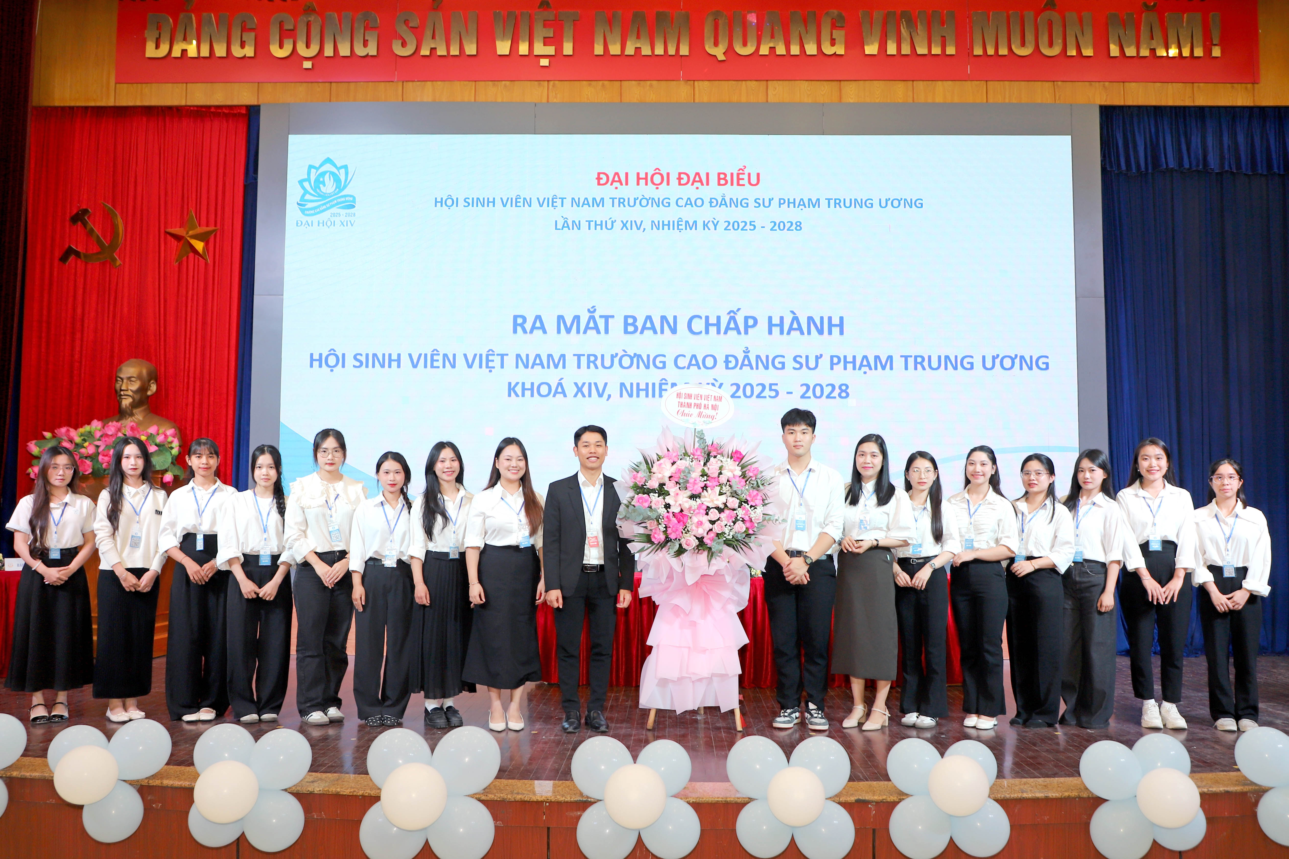 tặng hoa chúc mừng Ban Chấp hành Hội Sinh viên trường khóa XIV, nhiệm kỳ 2025-2028