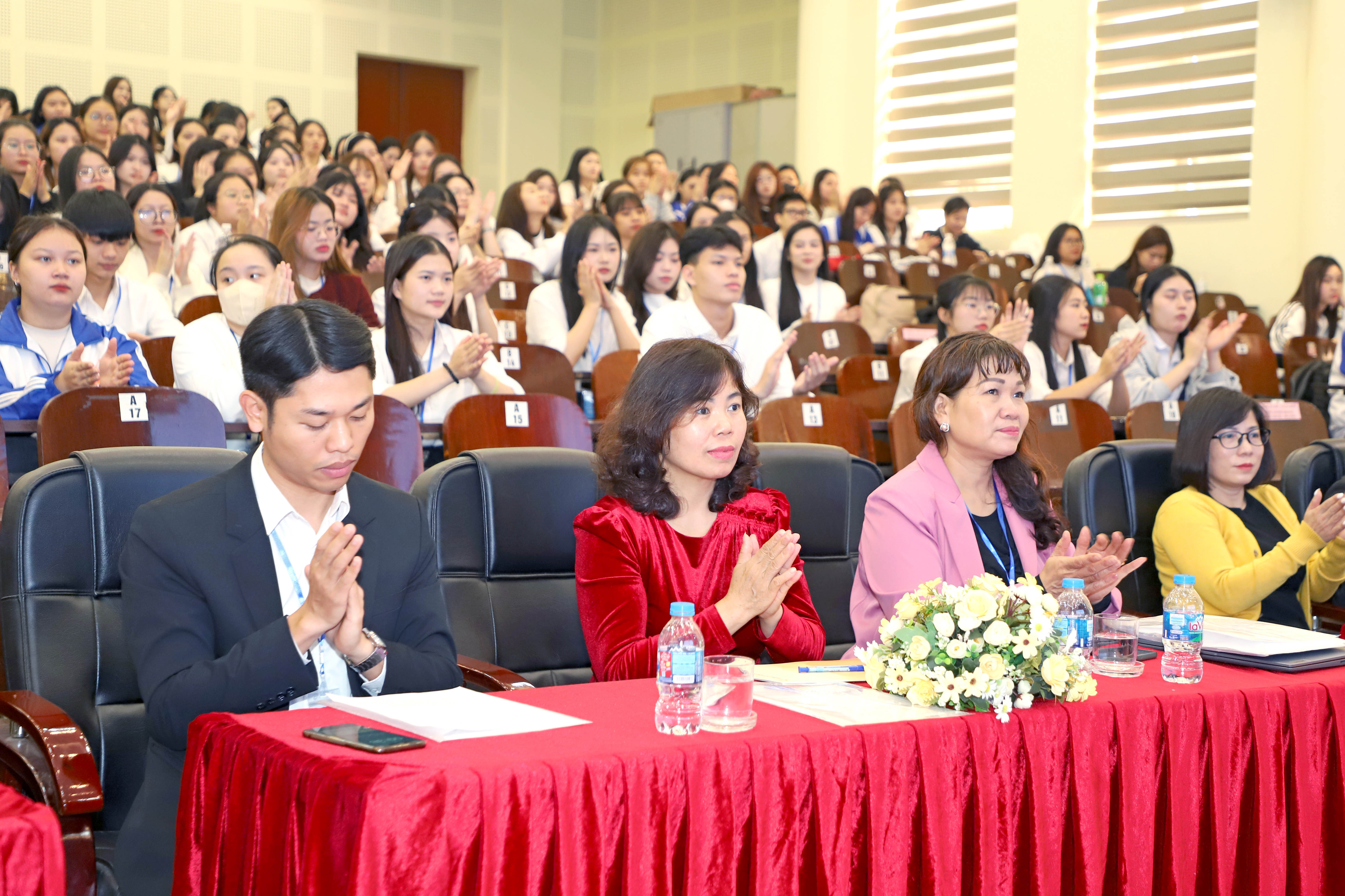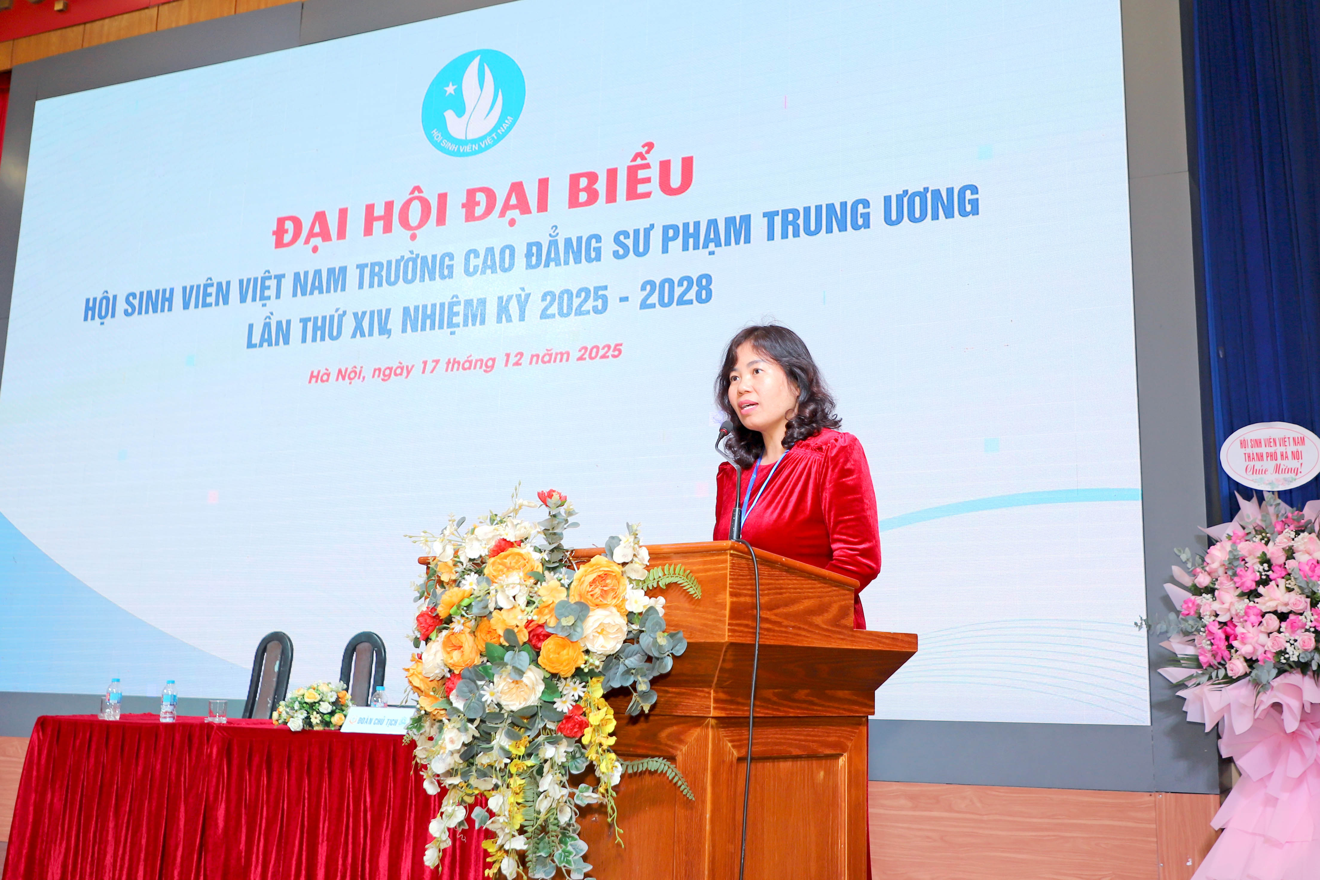 Thay mặt Đảng ủy và Ban Giám hiệu Nhà trường, TS. Nguyễn Thị Thanh - Bí thư Đảng ủy, Chủ tịch Hội đồng trường đã biểu dương và chúc mừng những thành tích nổi bật mà Hội Sinh viên Nhà trường đạt được trong thời gian qua; đồng thời gửi lời chúc mừng tới 17 đồng chí được Đại hội tín nhiệm hiệp thương bầu vào Ban Chấp hành Hội Sinh viên trường khóa XIV, nhiệm kỳ 2025–2028. Đồng chí bày tỏ kỳ vọng rằng, với tinh thần đoàn kết, trách nhiệm và sự phát huy trí tuệ tập thể, Ban Chấp hành Hội Sinh viên trường khóa XIV sẽ tiếp tục kế thừa và phát huy truyền thống vẻ vang 32 năm xây dựng và trưởng thành của Hội Sinh viên Nhà trường, triển khai hiệu quả Nghị quyết Đại hội đã đề ra, qua đó góp phần tích cực vào sự phát triển bền vững của Nhà trường trong giai đoạn mới.