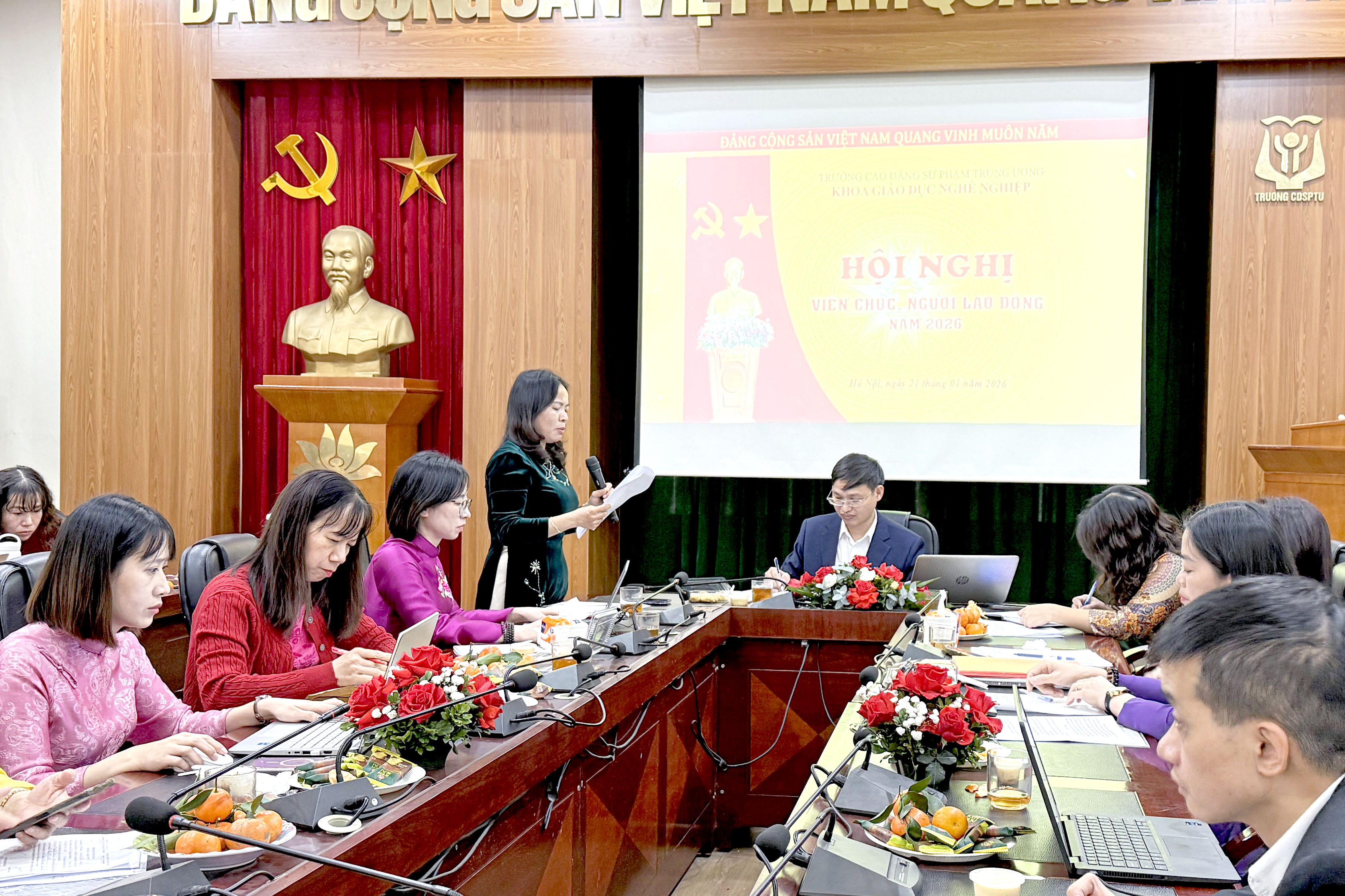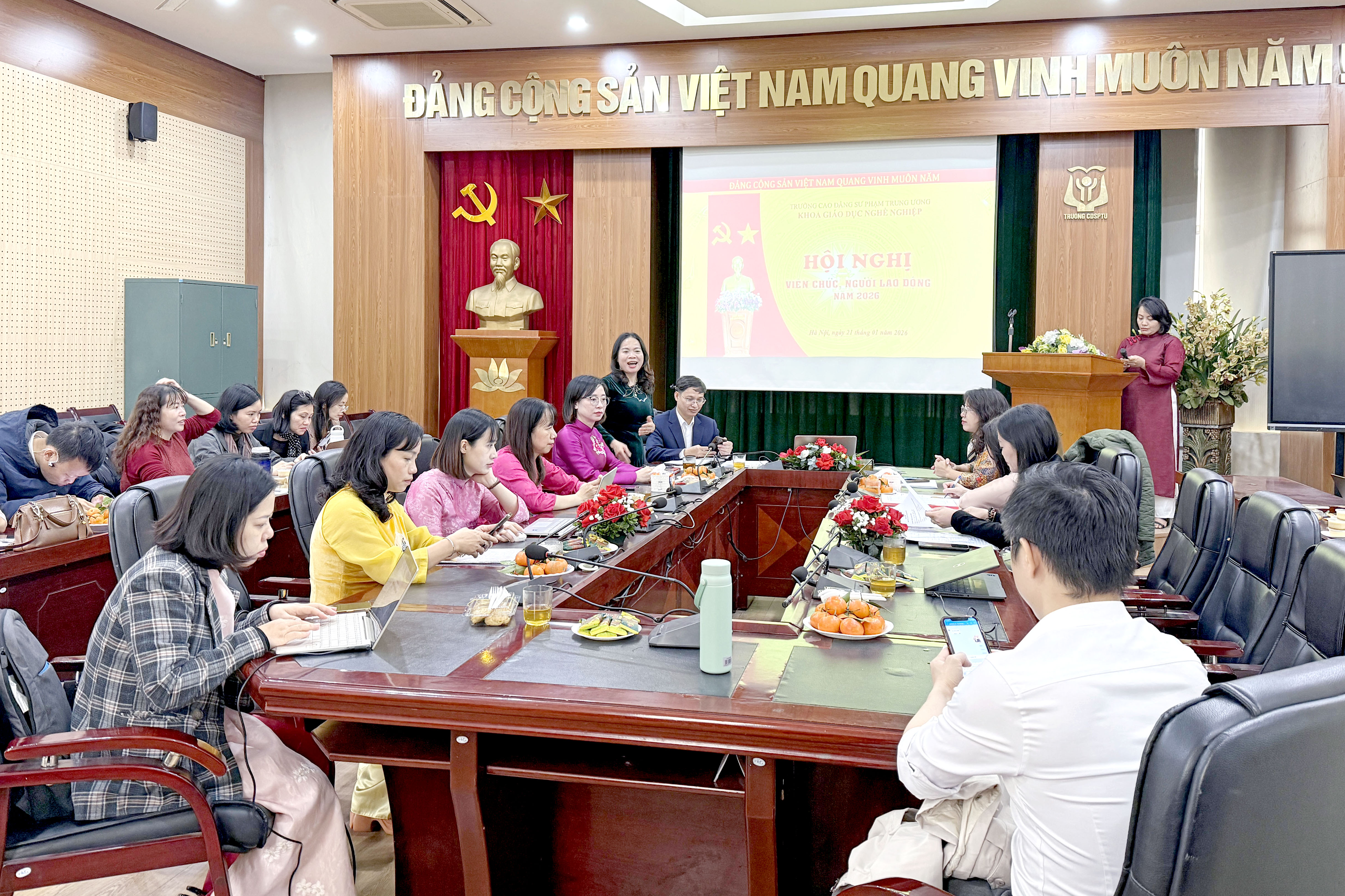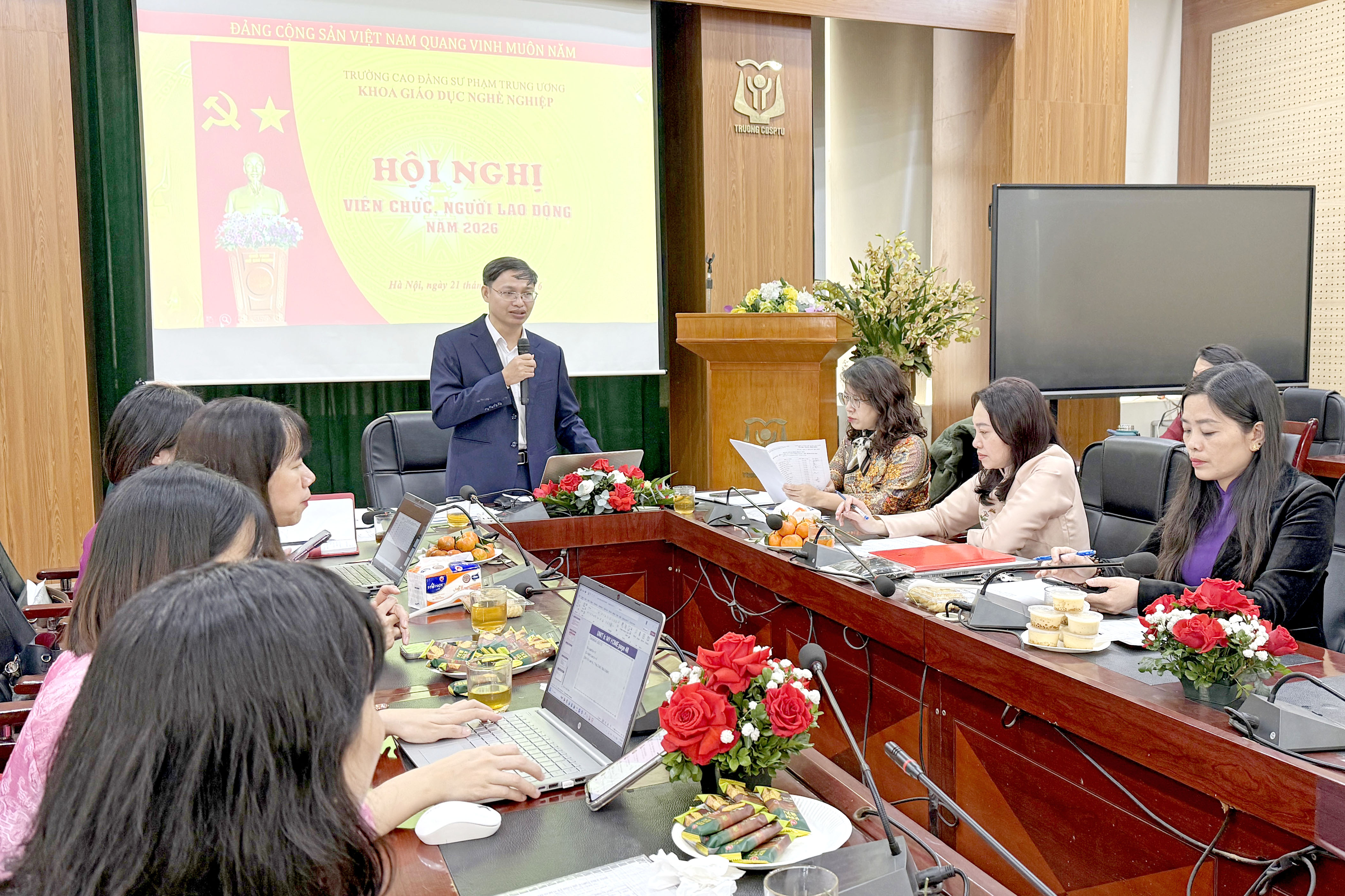 NCE Thực hiện Kế hoạch của Nhà trường về việc tổ chức Hội nghị Tổng kết năm 2025 và Hội nghị viên chức, người lao động năm 2026, sáng ngày 21/01/2026, tại Phòng Hội thảo, Khoa Giáo dục nghề nghiệp, Trường Cao đẳng Sư phạm Trung ương đã tổ chức thành công Hội nghị Tổng kết công tác năm 2025 và Hội nghị viên chức, người lao động năm 2026.