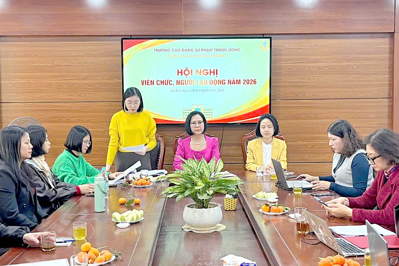 NCE Ngày 12 tháng 01 năm 2026, Khoa Giáo dục đại cương tổ chức Hội nghị viên chức, người lao động năm 2026. Hội nghị vinh dự đón TS. Trịnh Thị Xim - Phó Hiệu trưởng Nhà trường, cùng toàn thể viên chức, người lao động trong Khoa về dự Hội nghị.