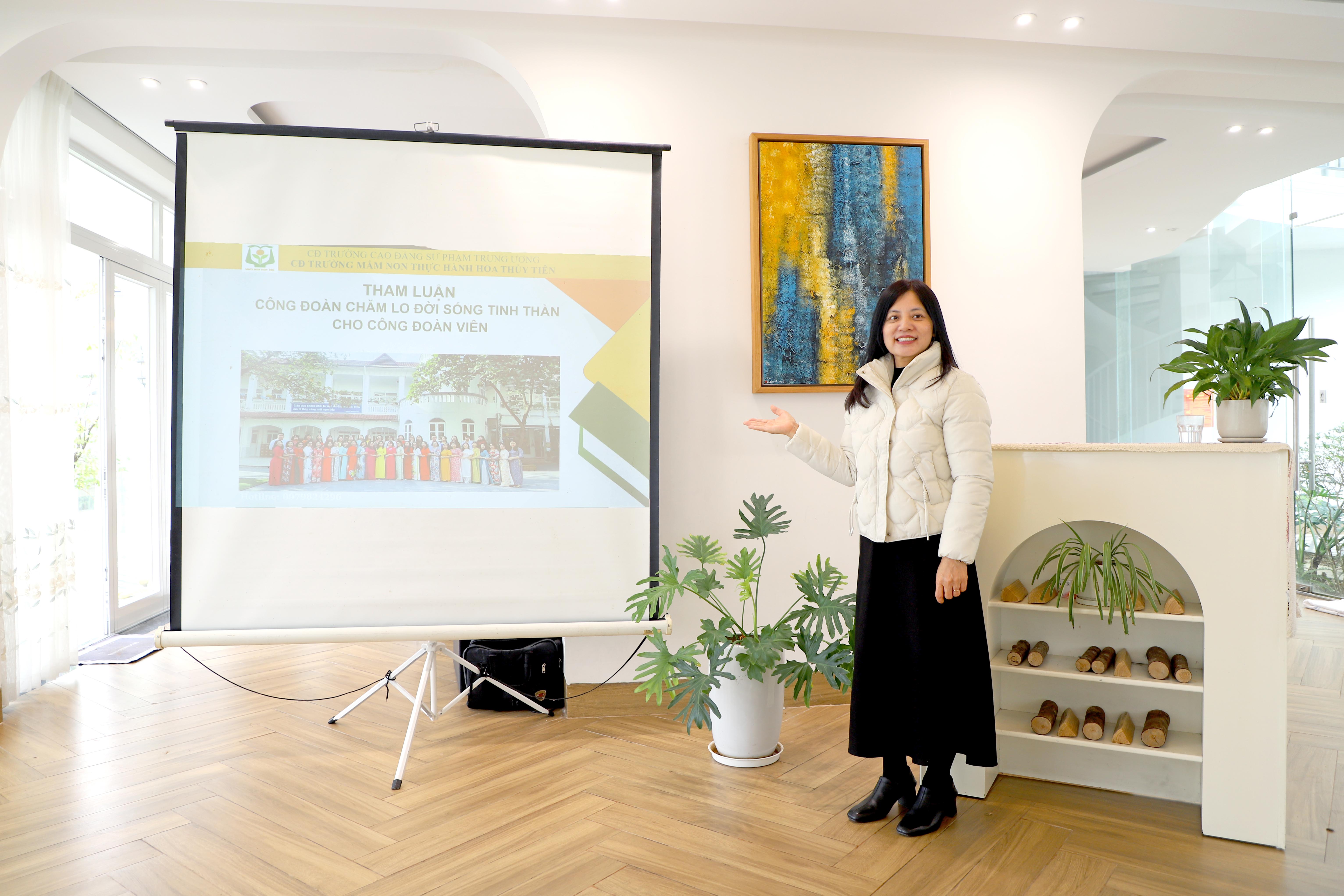Đồng chí Lê Thị Kim Cúc - Chủ tịch Công đoàn bộ phận Khoa Giáo dục mầm non chia sẻ