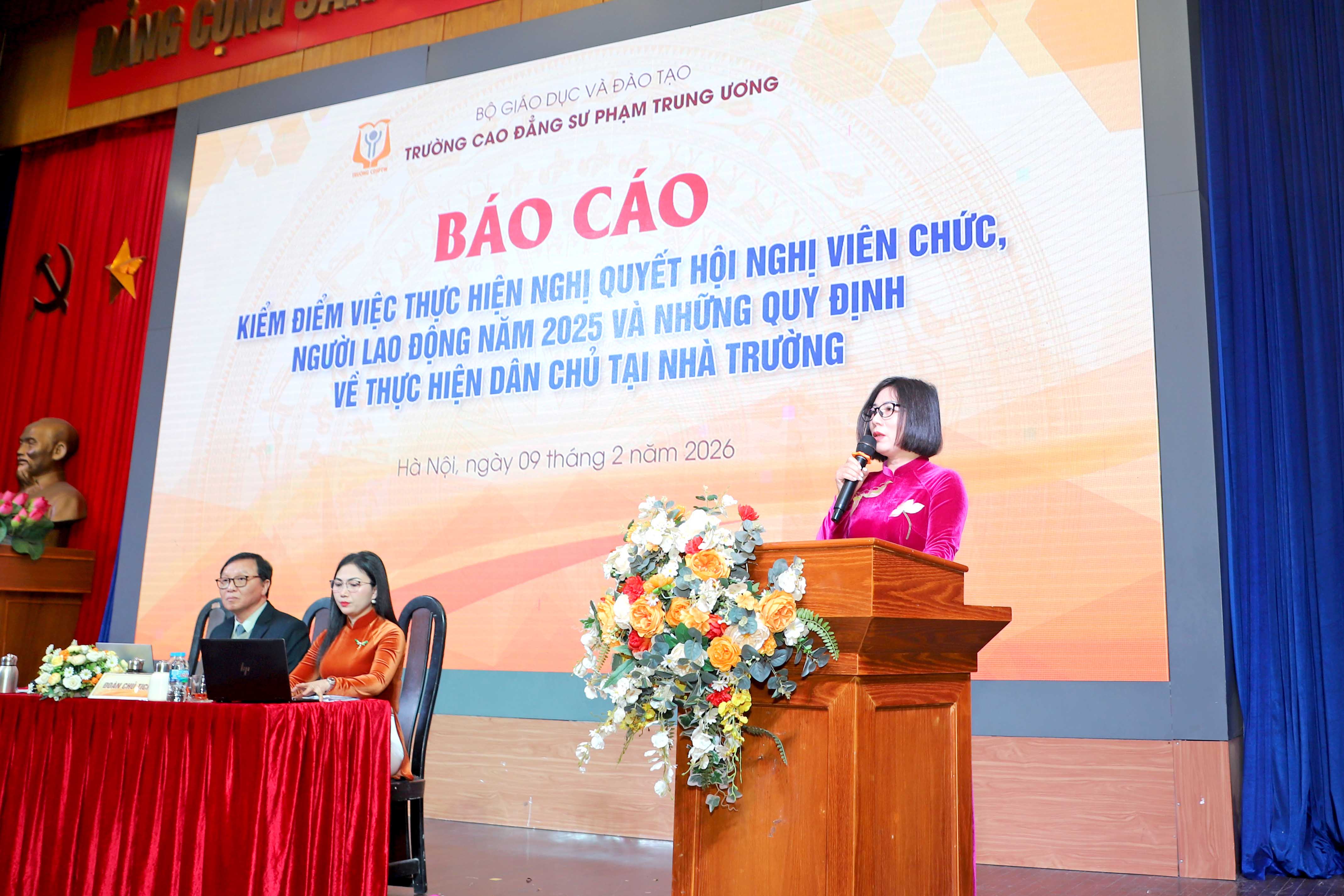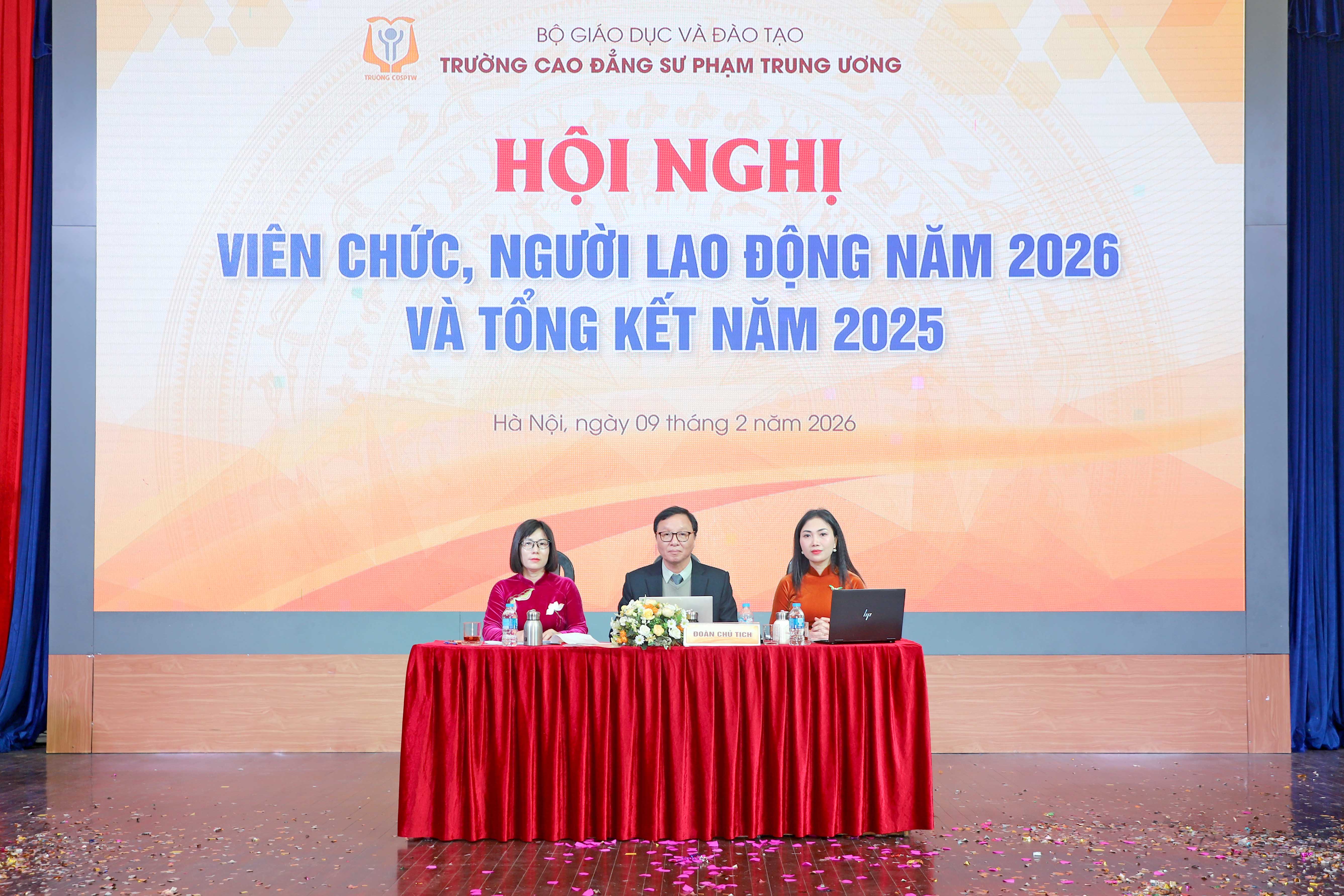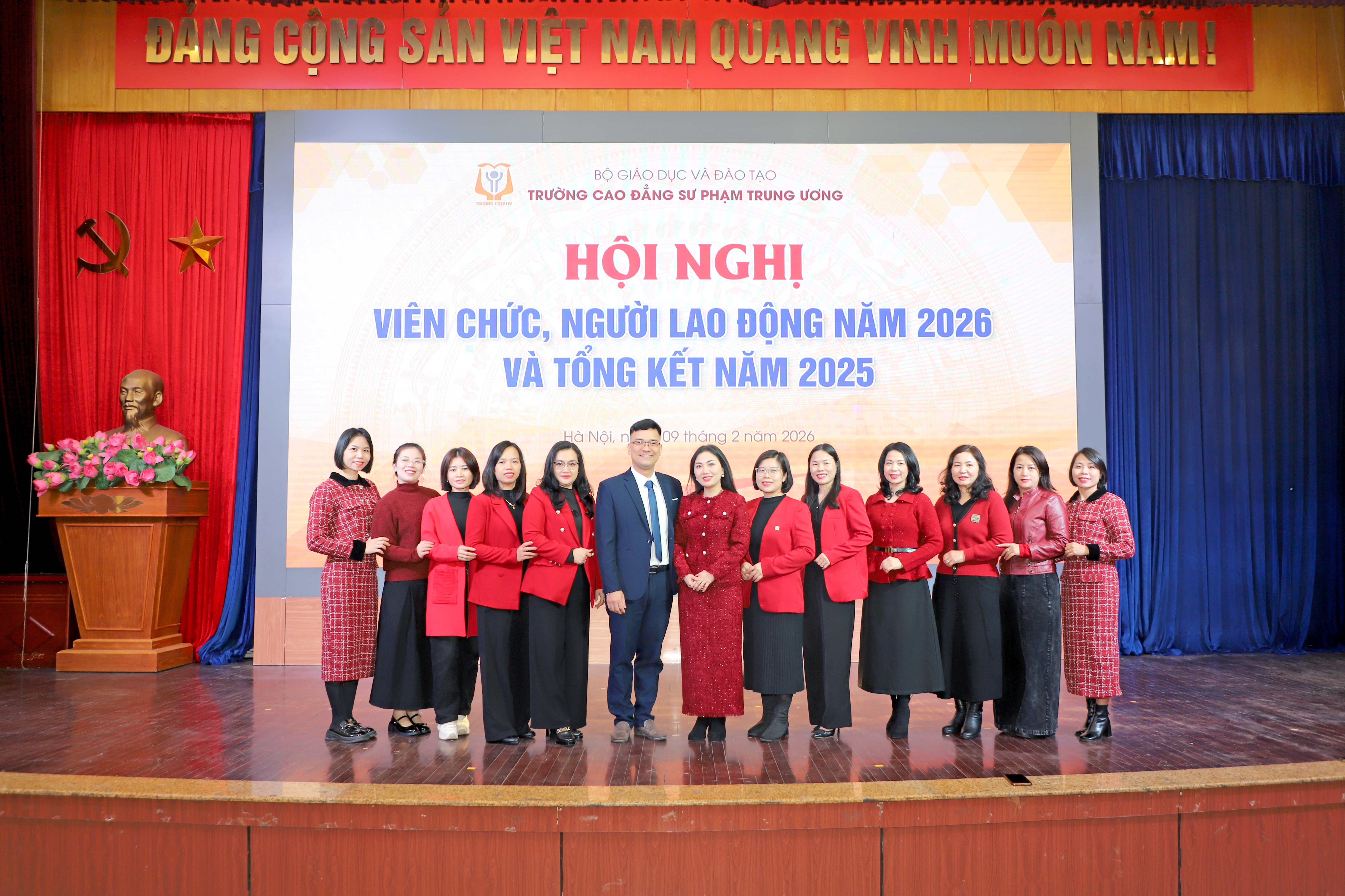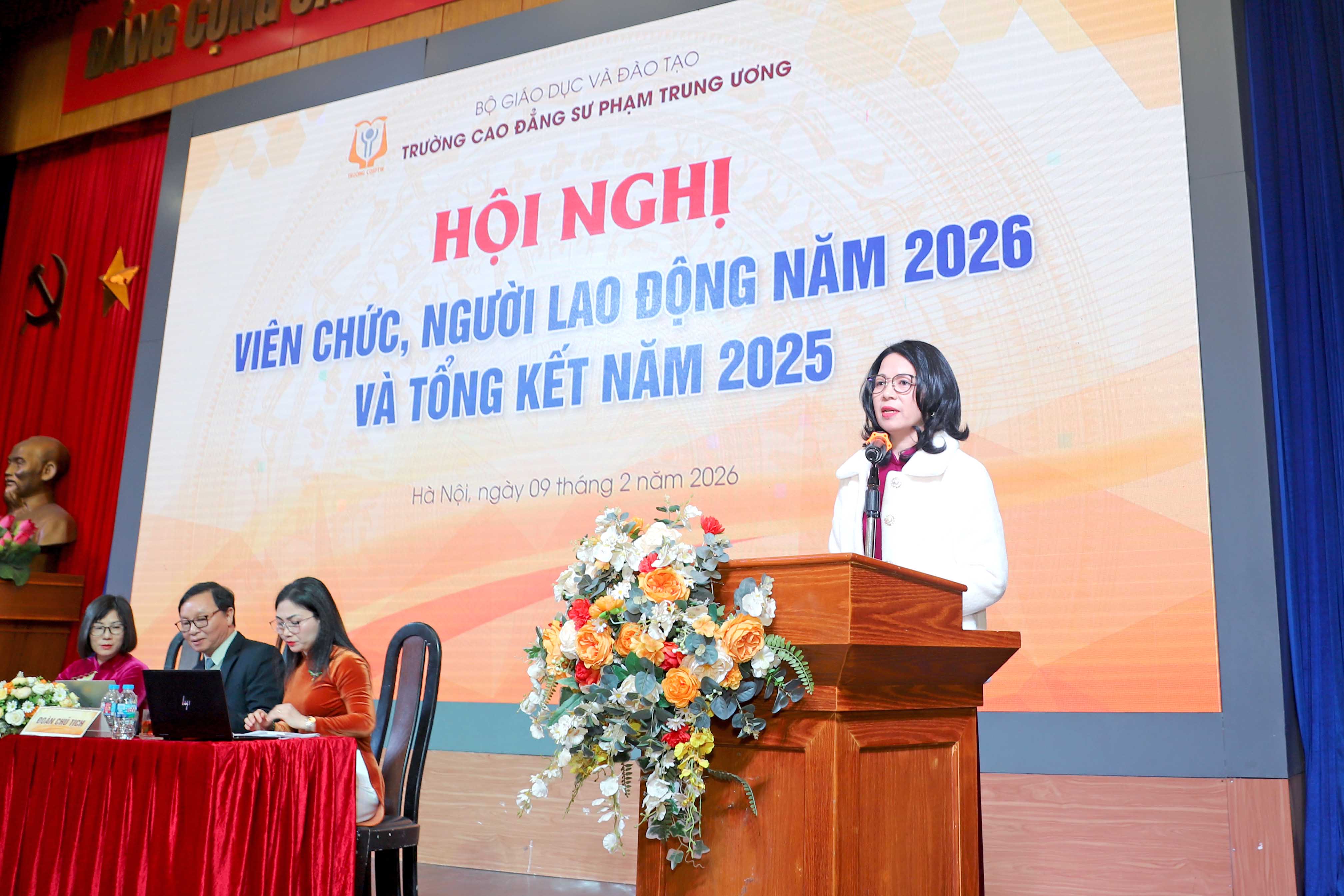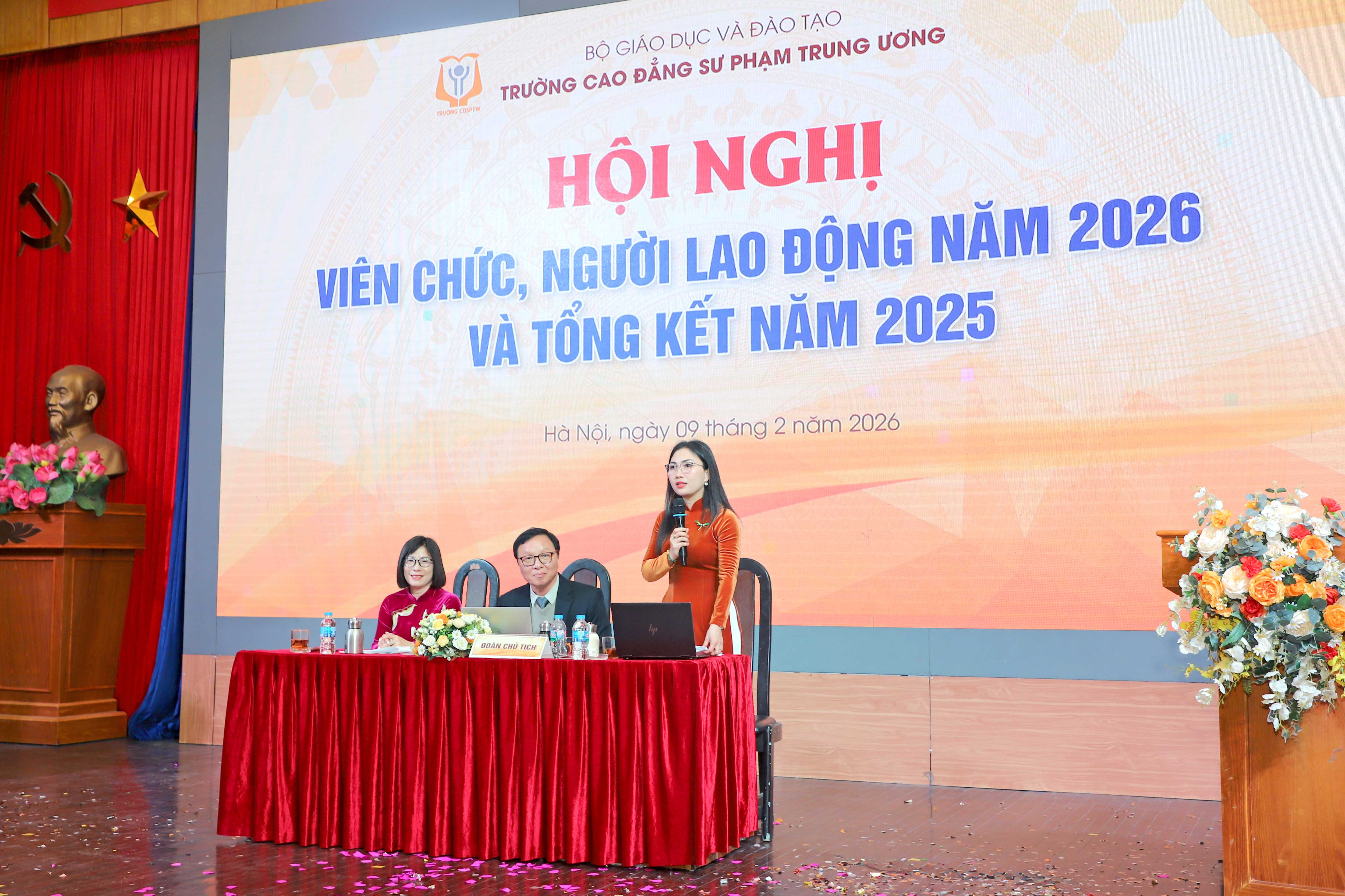 NCE Ngày 09/02/2026 - Trường Cao đẳng Sư phạm Trung ương (CĐSPTW) đã long trọng tổ chức Hội nghị viên chức, người lao động năm 2026 và tổng kết năm 2025 nhằm nhìn nhận, phân tích, đánh giá những kết quả đã đạt được cũng như chỉ ra những tồn tại, hạn chế, khó khăn, vướng mắc khi thực hiện nhiệm vụ năm 2025. Hội nghị cũng kiểm điểm việc thực hiện đường lối, chủ trương của Đảng, chính sách, pháp luật của Nhà nước có liên quan đến chức năng, nhiệm vụ của đơn vị, kiểm điểm người đứng đầu và đề ra phương hướng phấn đấu, chỉ tiêu thi đua cho năm 2026.