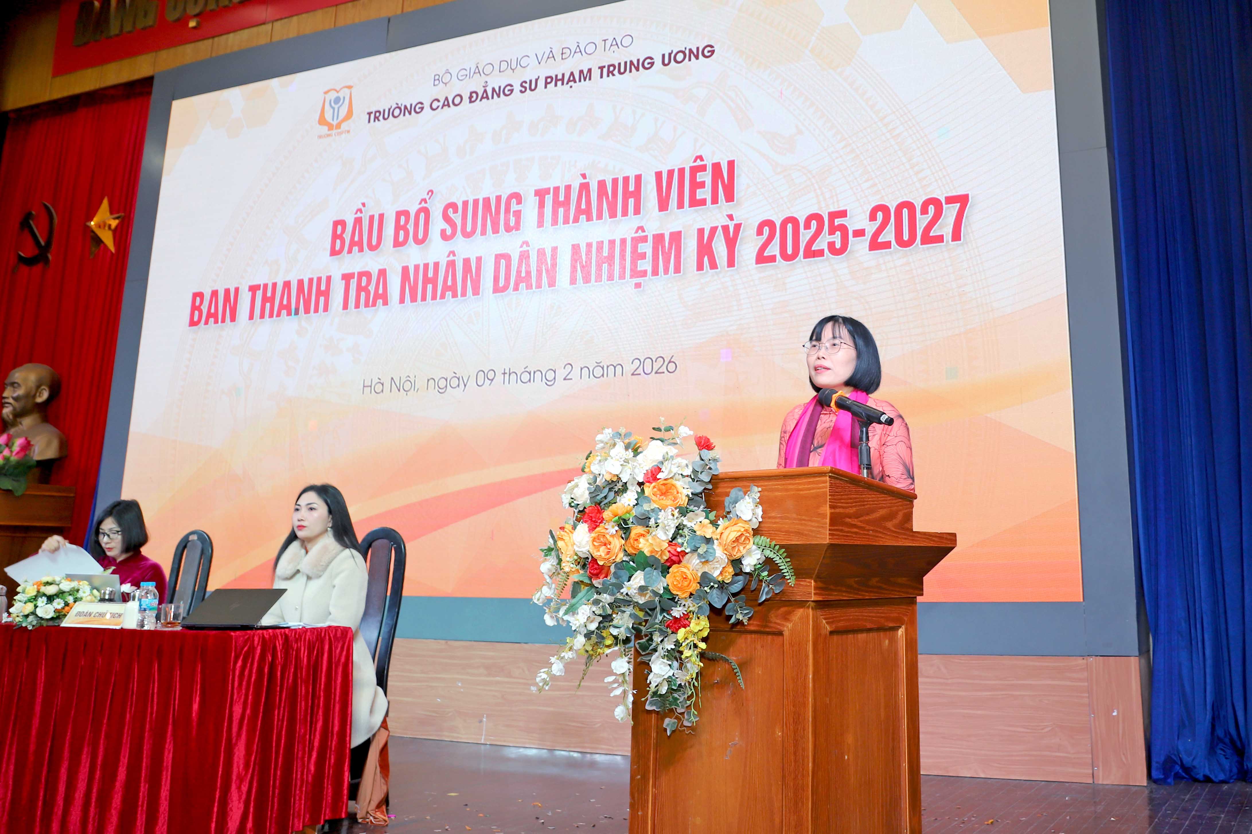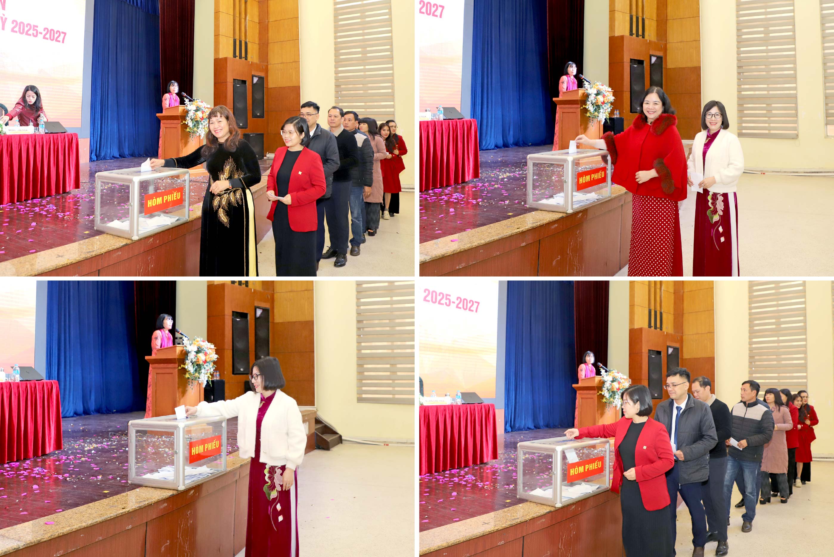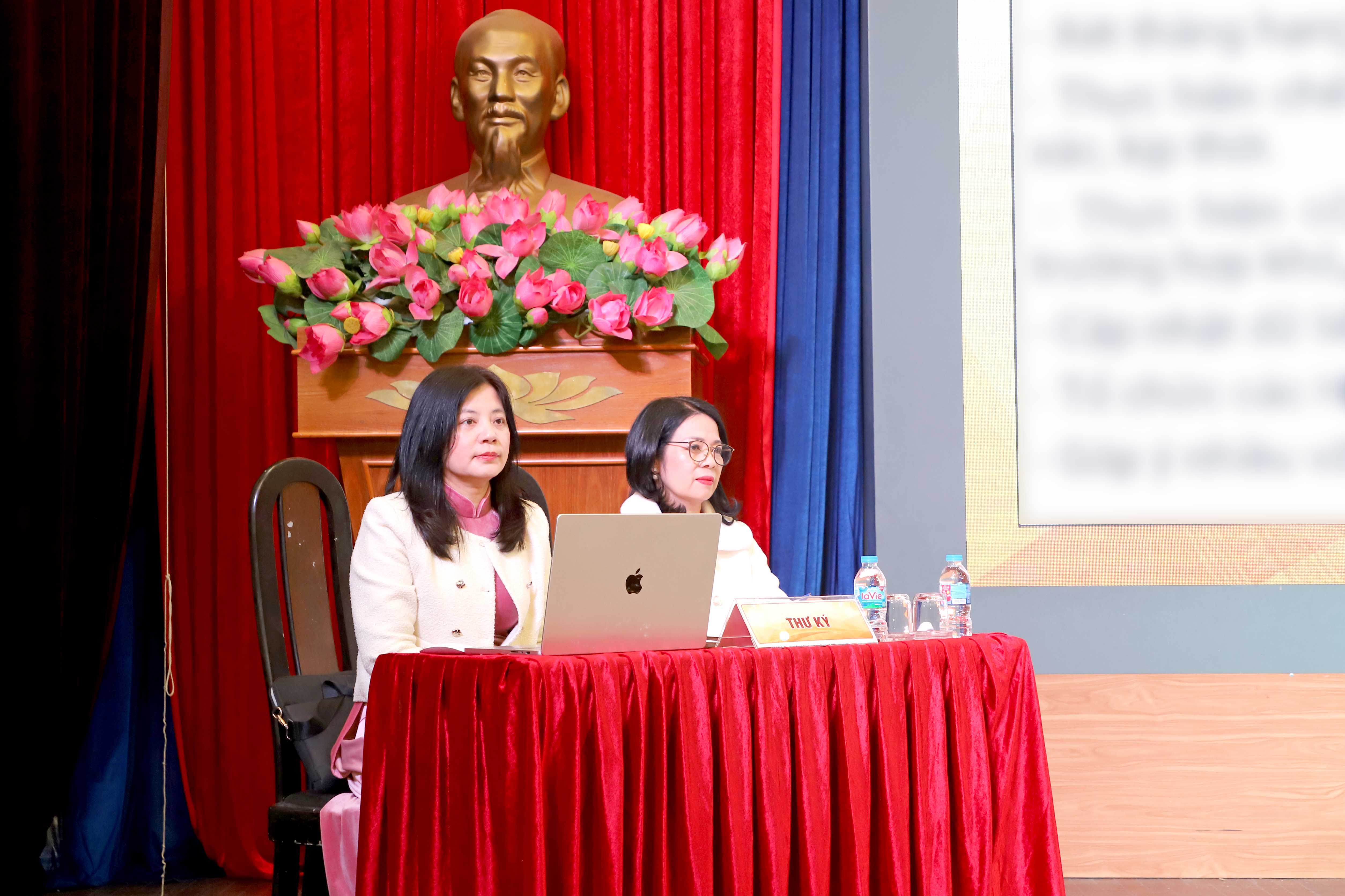 Hội nghị đã biểu quyết 100% nhất trí với danh sách đoàn chủ tịch gồm ba thành viên: PGS.TS. Trần Đình Tuấn - Phó Bí thư Đảng ủy, Hiệu trưởng Nhà trường; TS. Nguyễn Thị Thanh Nga - Đảng ủy viên, Chủ tịch Công đoàn Trường và TS. Nguyễn Thị Nhung - Trưởng phòng Tổ chức - Hành chính; Tổ thư ký Hội nghị được tín nhiệm giao cho đồng chí Lưu Thị Nam - Uỷ viên Ban Chấp hành Công đoàn Trường, Phó Hiệu trưởng Trường mầm non thực hành Hoa Thủy Tiên và đồng chí Nguyễn Thị Minh Huệ - Chuyên viên Phòng Tổ chức - Hành chính.