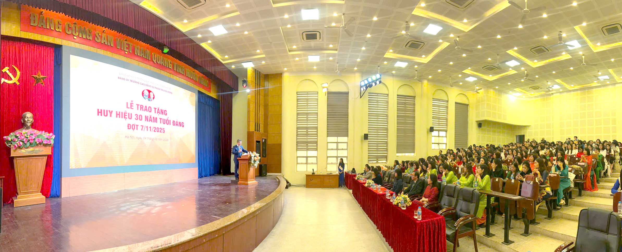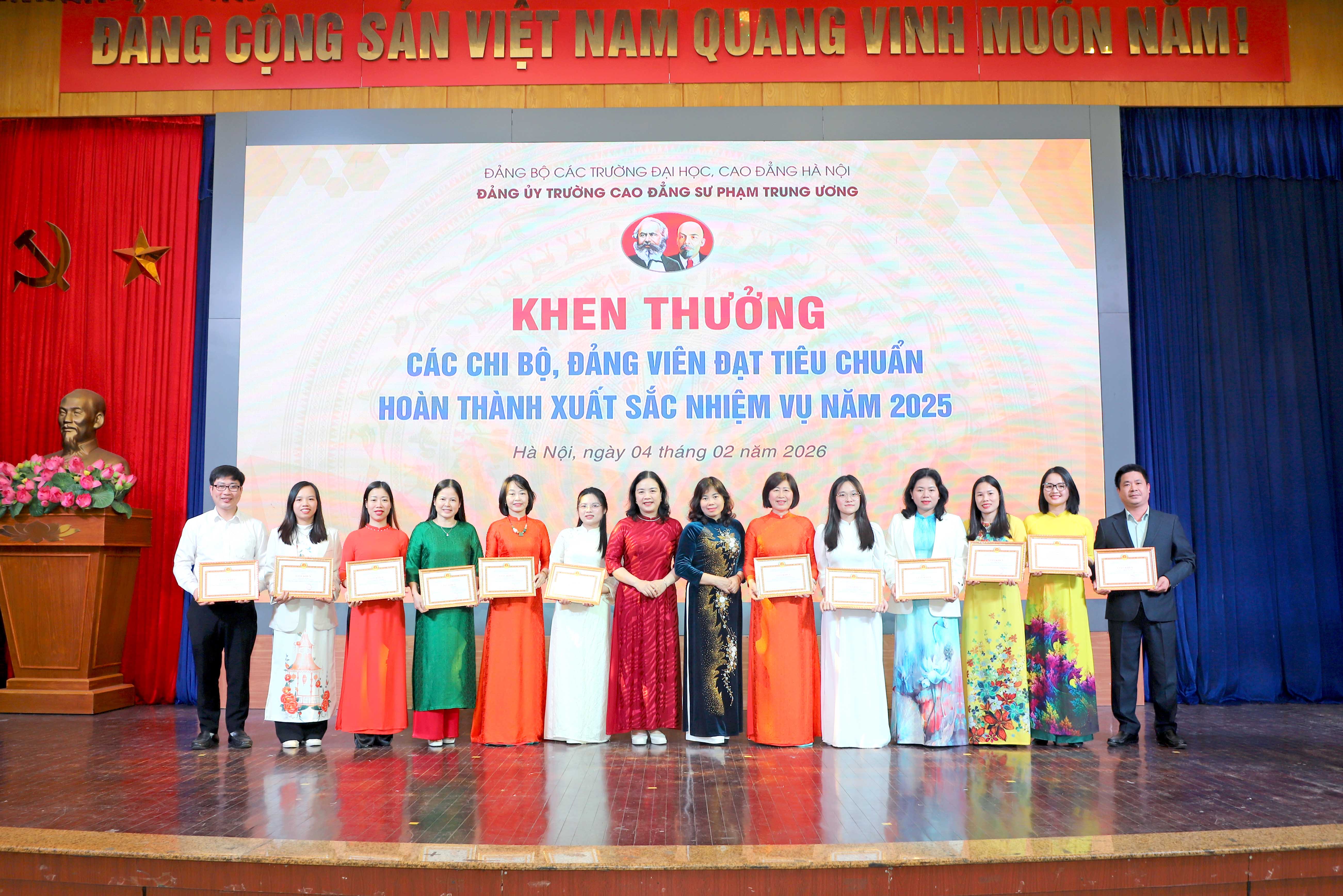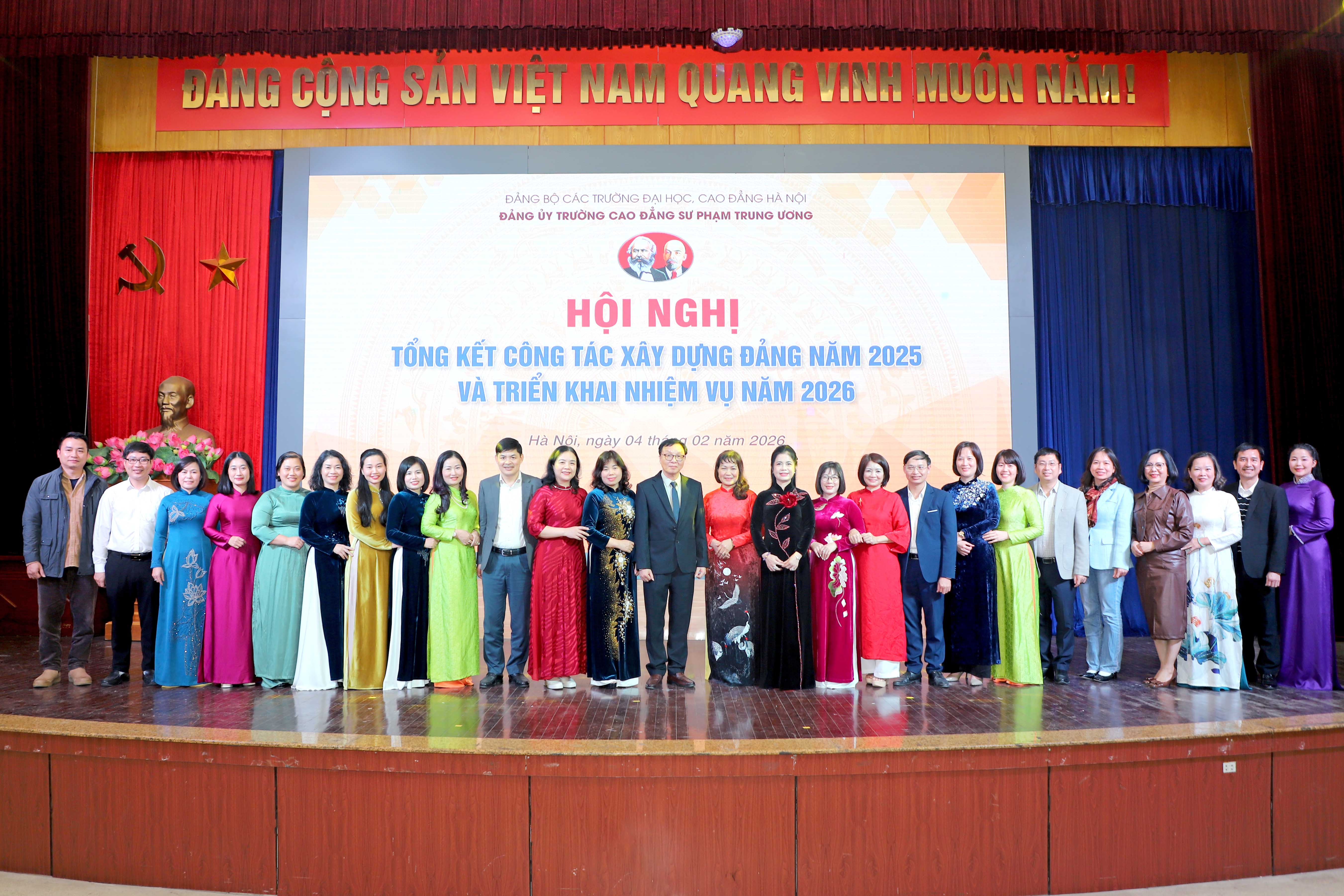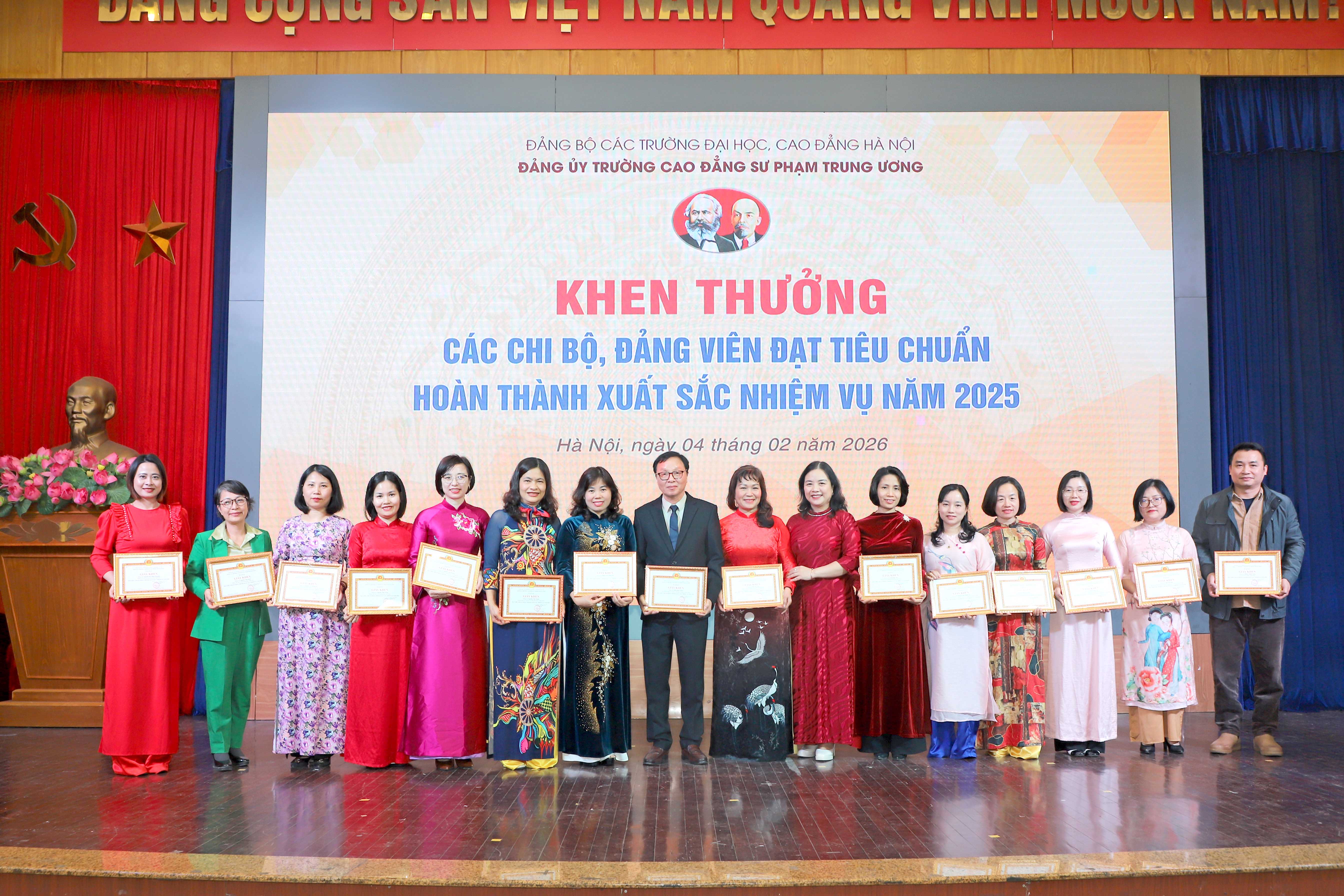 Lễ trao tặng Huy hiệu 30 năm tuổi Đảng và Hội nghị Tổng kết công tác xây dựng Đảng năm 2025, triển khai nhiệm vụ năm 2026 đã diễn ra thành công tốt đẹp, thể hiện sự quan tâm sâu sắc của Đảng đối với đội ngũ đảng viên, đồng thời khẳng định vai trò lãnh đạo toàn diện của Đảng bộ Trường Cao đẳng Sư phạm Trung ương trong sự nghiệp xây dựng và phát triển Nhà trường.