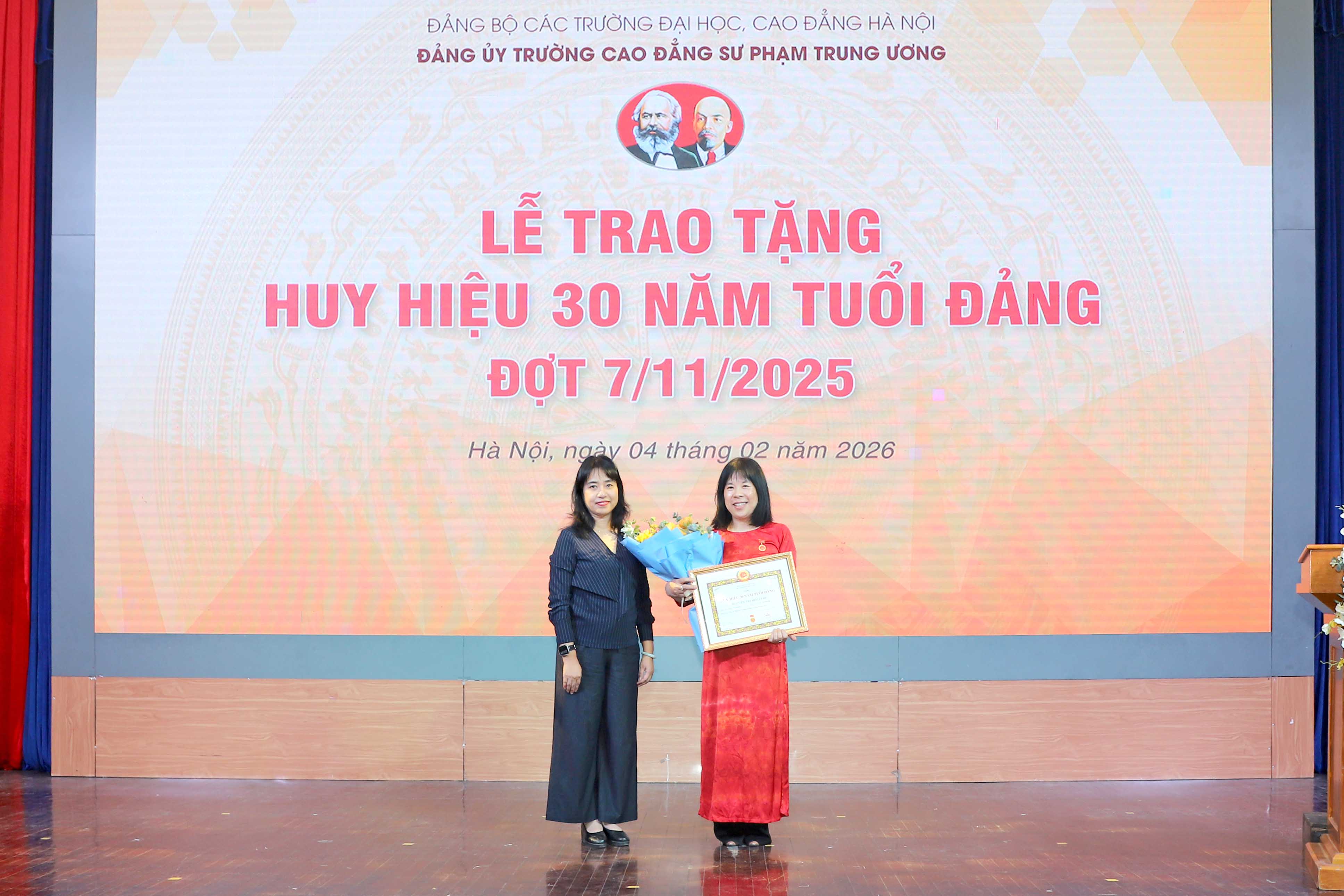 NCE Thực hiện Kế hoạch số 93-KH/ĐU ngày 30/01/2025 của Đảng ủy Trường Cao đẳng Sư phạm Trung ương (CĐSPTW), chiều ngày 04/02/2026, Đảng bộ Trường Cao đẳng Sư phạm Trung ương đã long trọng tổ chức Lễ trao tặng Huy hiệu 30 năm tuổi Đảng và Hội nghị Tổng kết công tác xây dựng Đảng năm 2025, triển khai nhiệm vụ năm 2026.