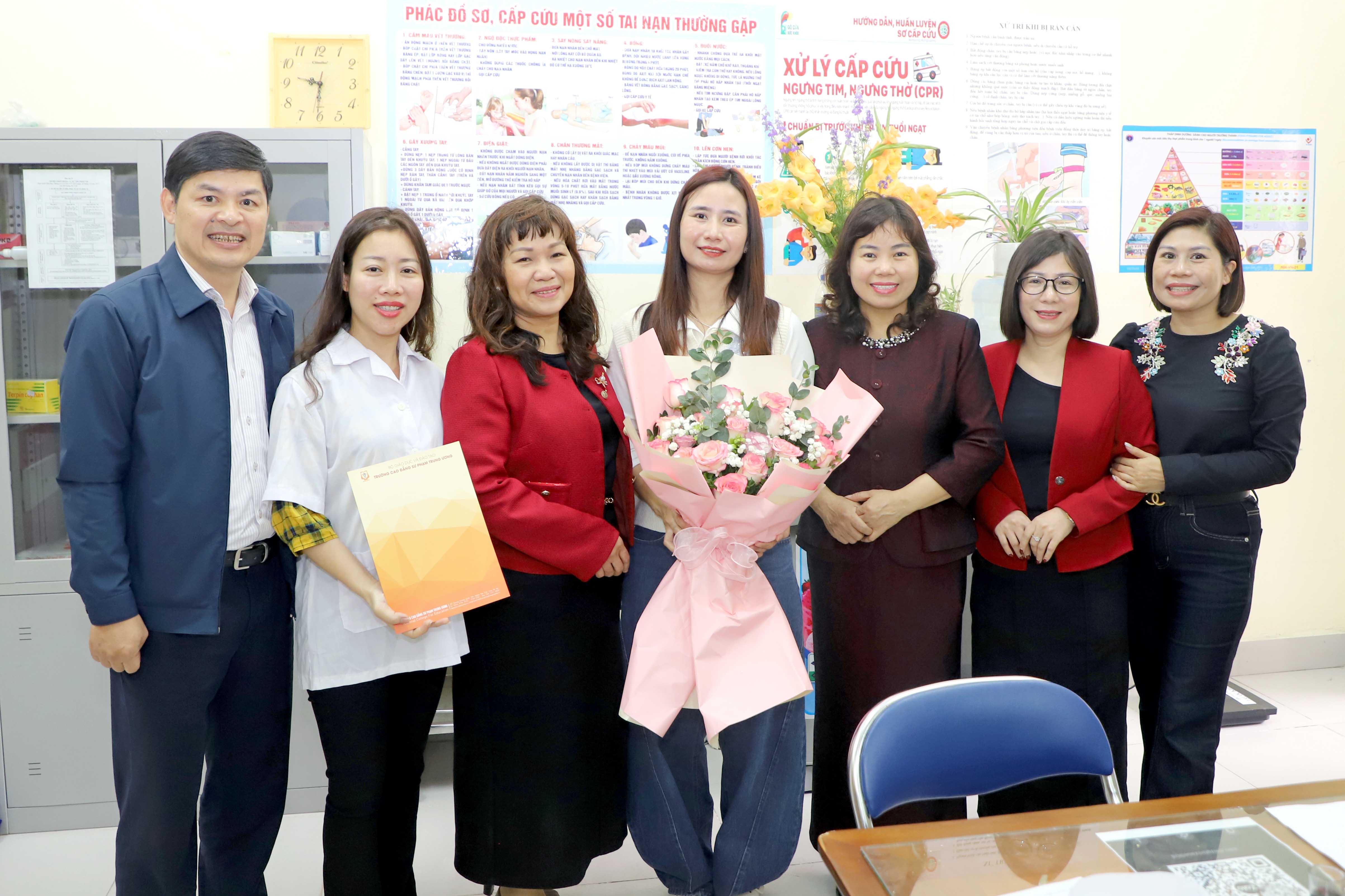 NCE Hòa chung không khí kỷ niệm trên cả nước, sáng 27/02/2026, Đảng ủy, Ban Giám hiệu và Công đoàn Trường Cao đẳng Sư phạm Trung ương (CĐSPTW) đã đến thăm, tặng hoa chúc mừng nhân viên y tế thuộc phòng Quản trị - Thiết bị của Nhà trường nhân kỷ niệm 71 năm Ngày Thầy thuốc Việt Nam (27/02/1955 - 27/02/2026). Hoạt động diễn ra trong không khí ấm áp, thể hiện sự quan tâm, ghi nhận của lãnh đạo Nhà trường đối với những đóng góp thầm lặng của đội ngũ y tế trong công tác chăm sóc sức khỏe cho viên chức, người lao động và học sinh, sinh viên toàn trường.