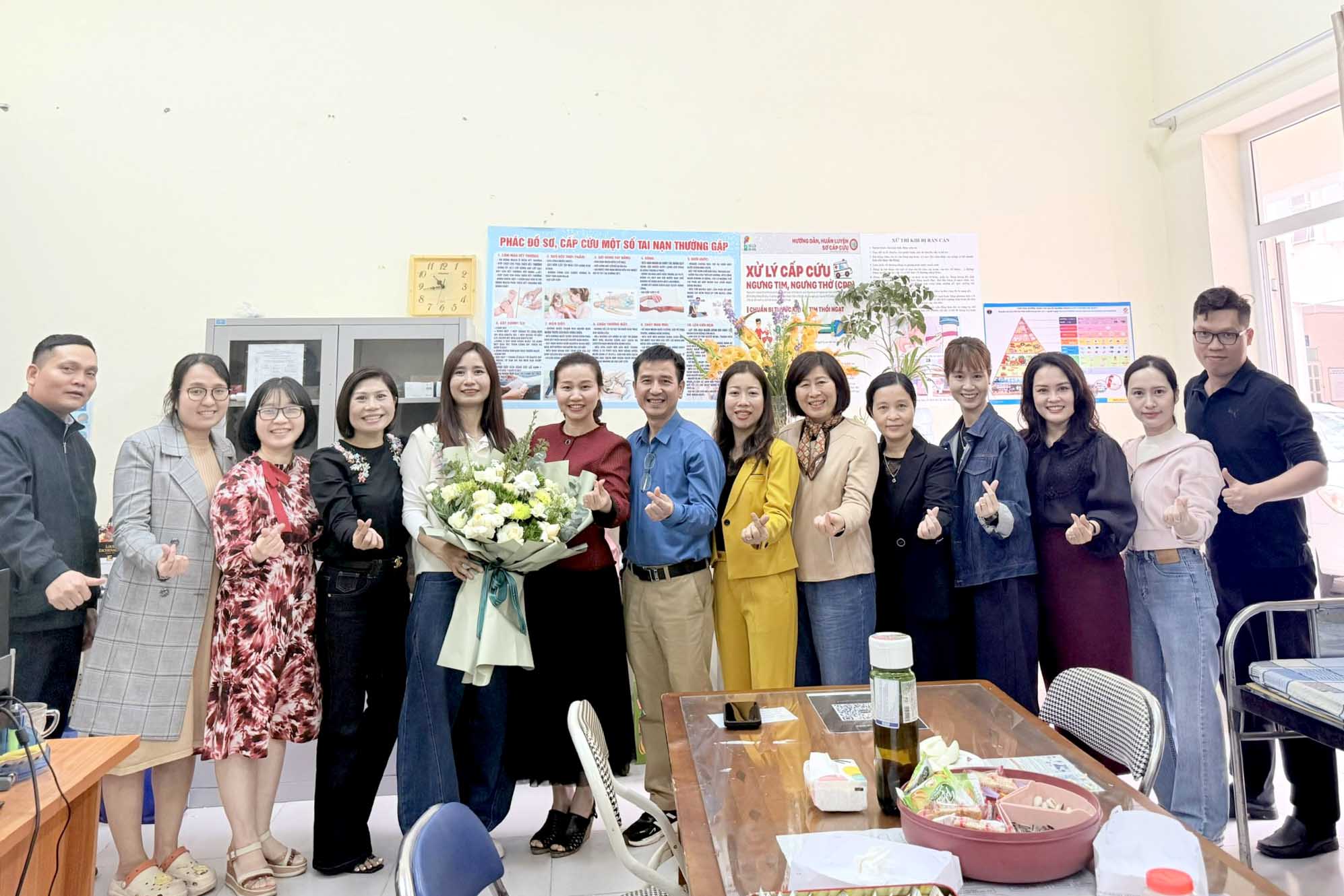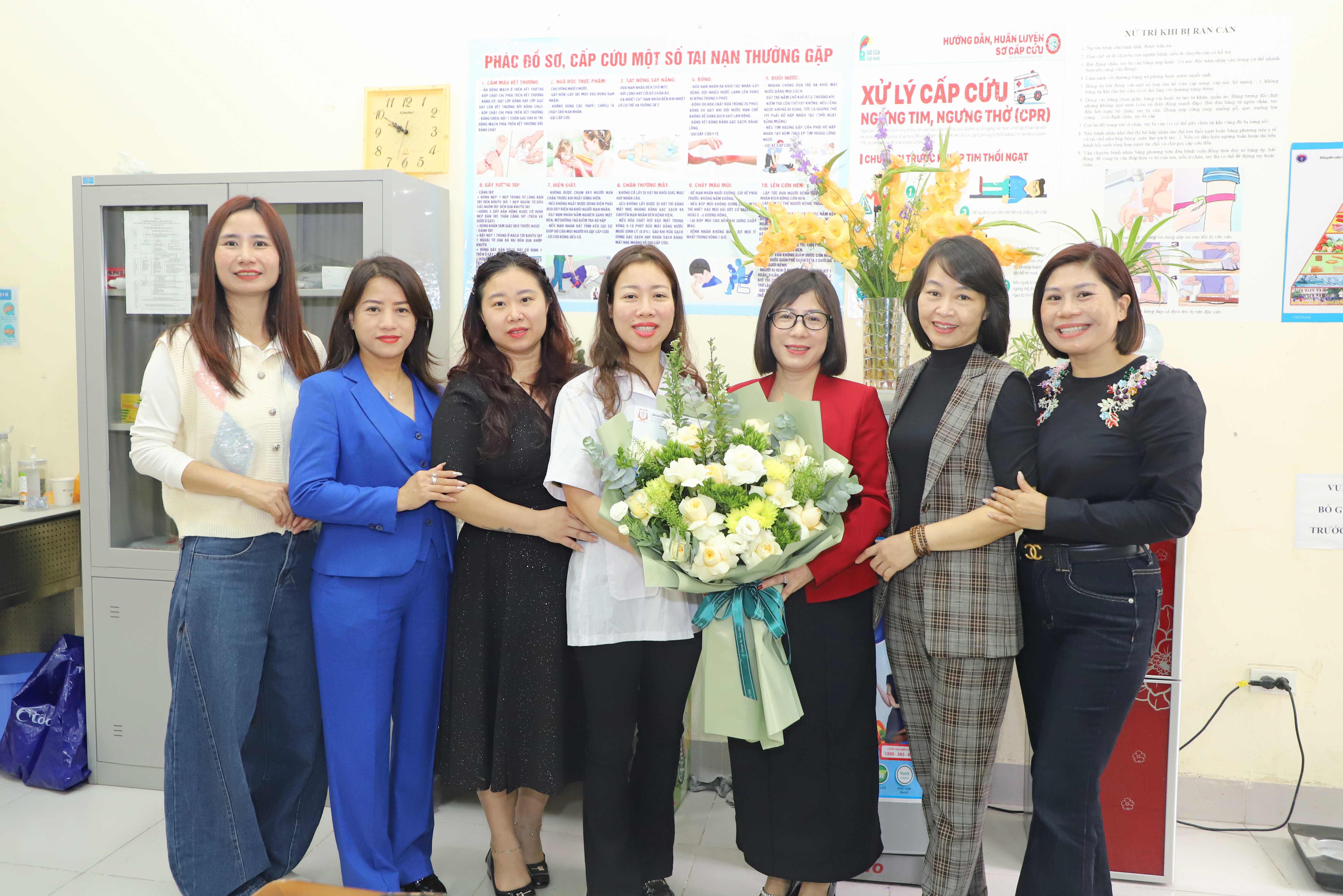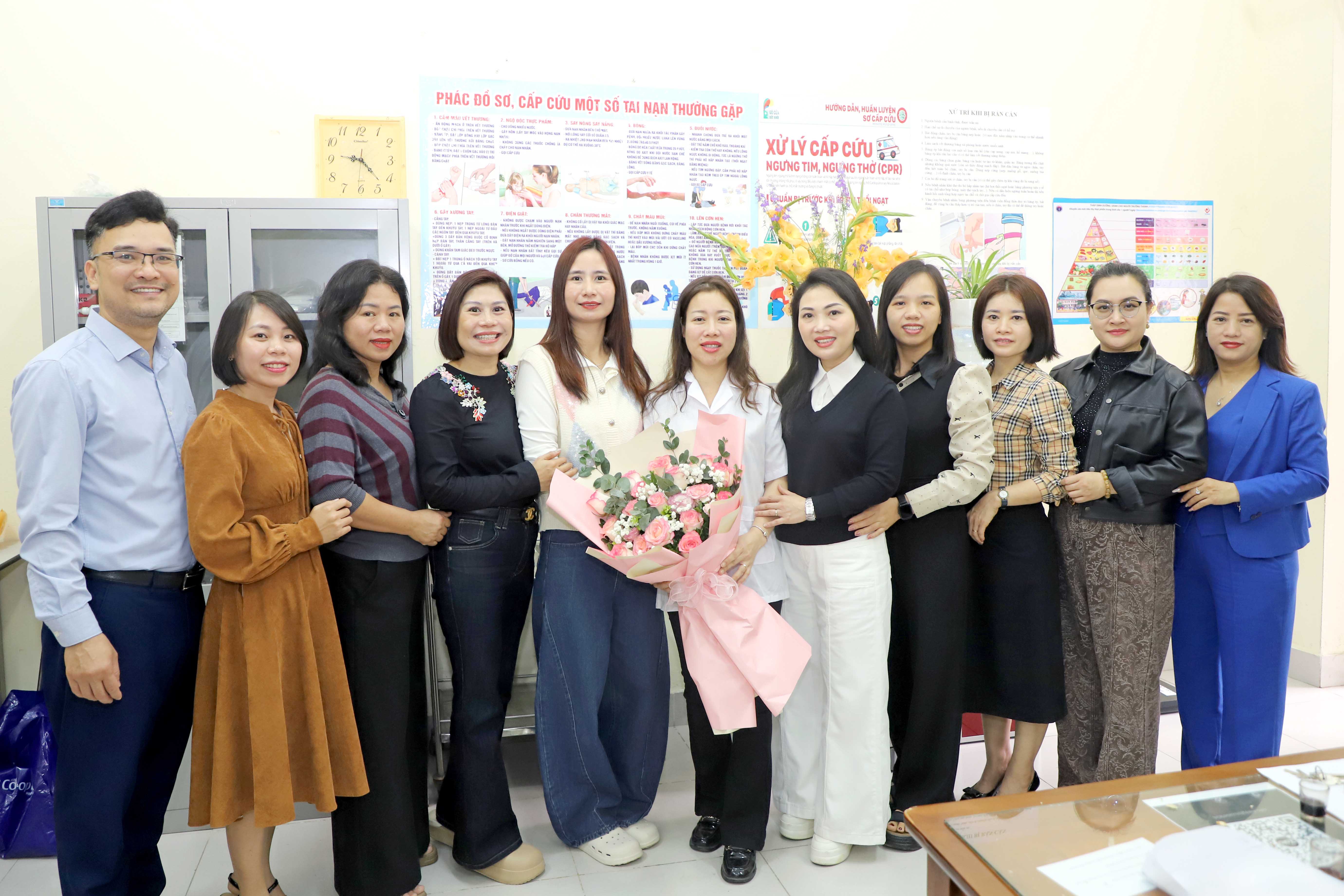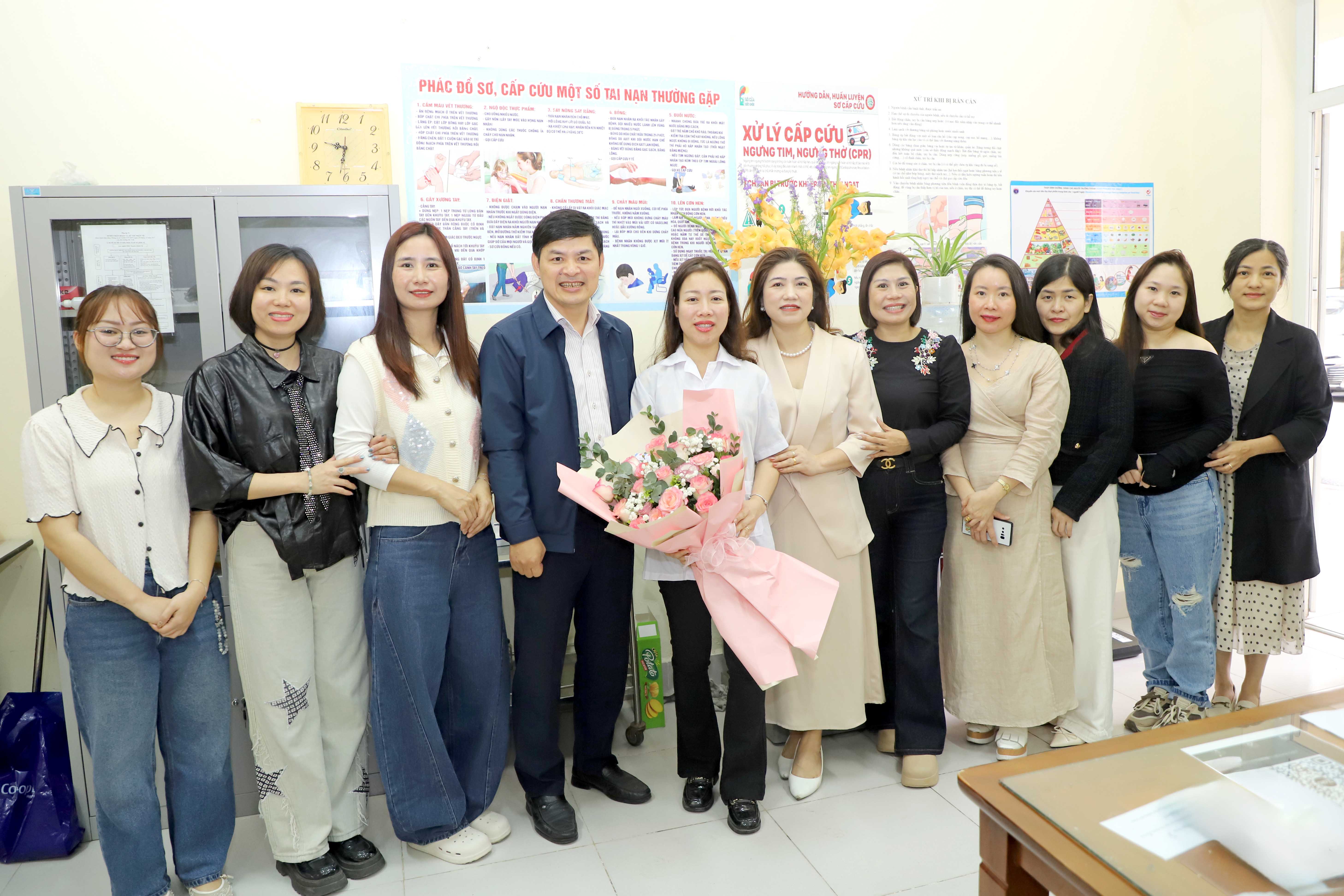 tặng hoa và quà chúc mừng đội ngũ y tế của Nhà trường.
