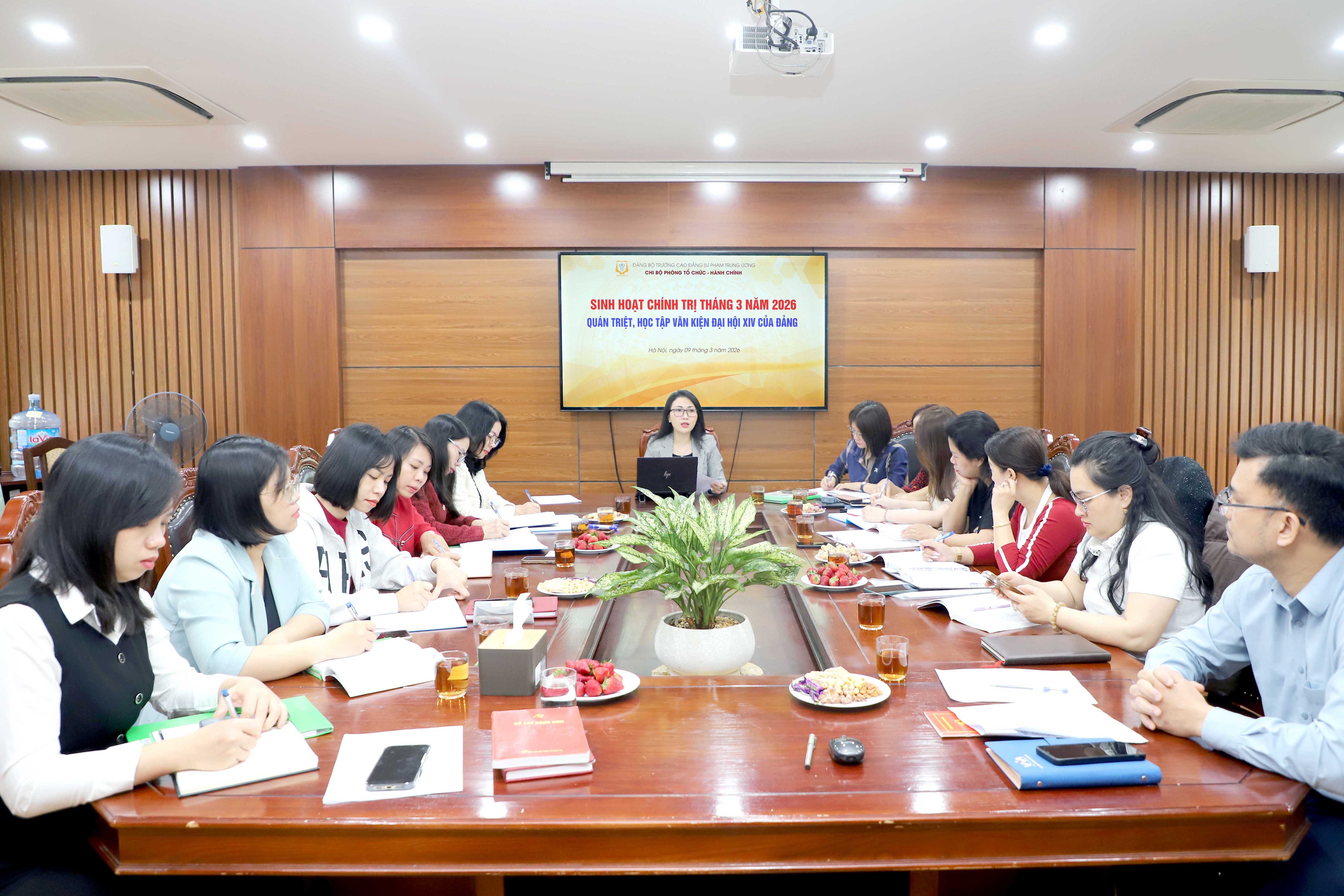 Ngày 9/3/2026, Chi bộ Phòng Tổ chức - Hành chính đã tổ chức sinh hoạt chính trị nhằm quán triệt, triển khai các nội dung tại Đại hội đại biểu toàn quốc lần thứ XIV của Đảng Cộng sản Việt Nam.