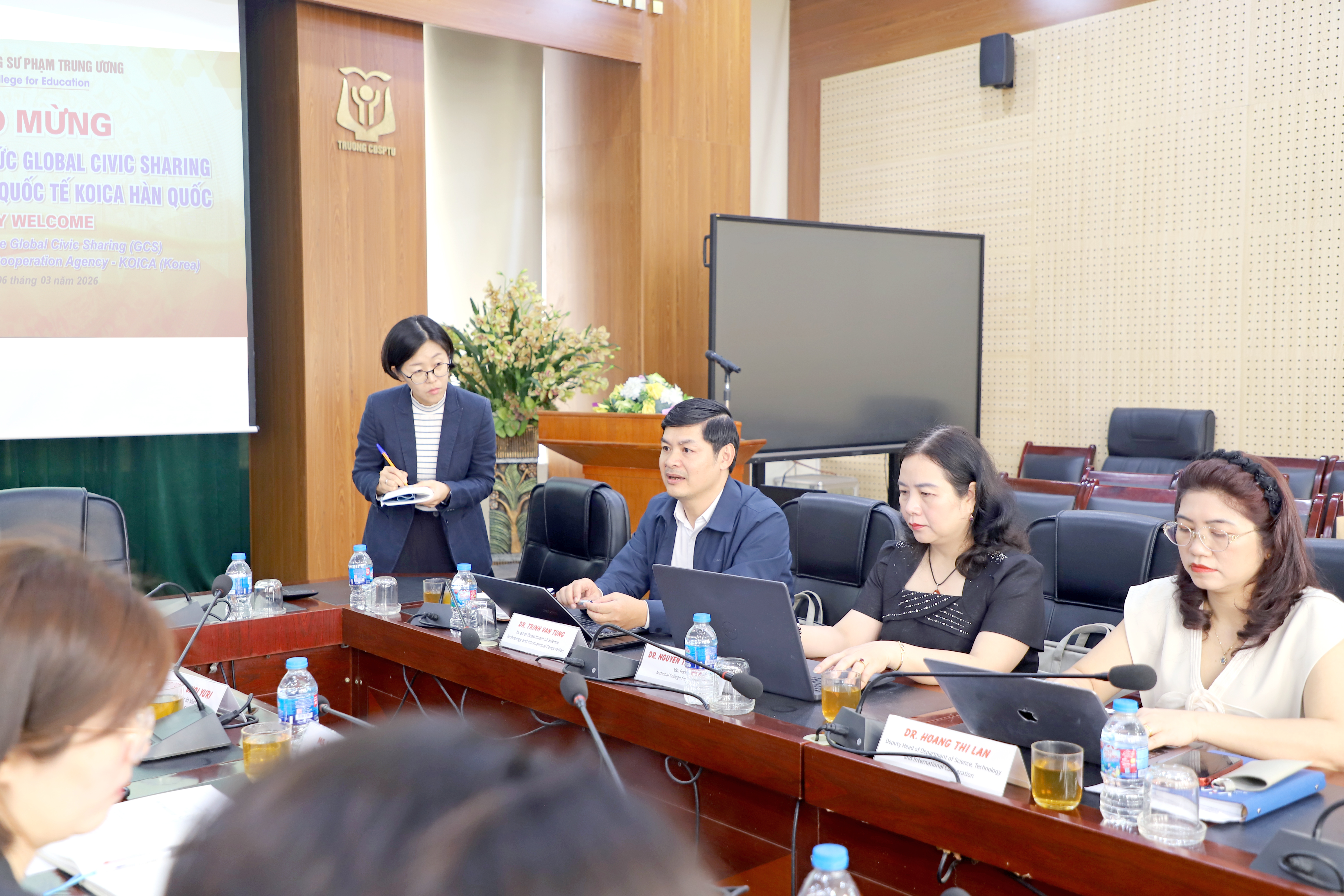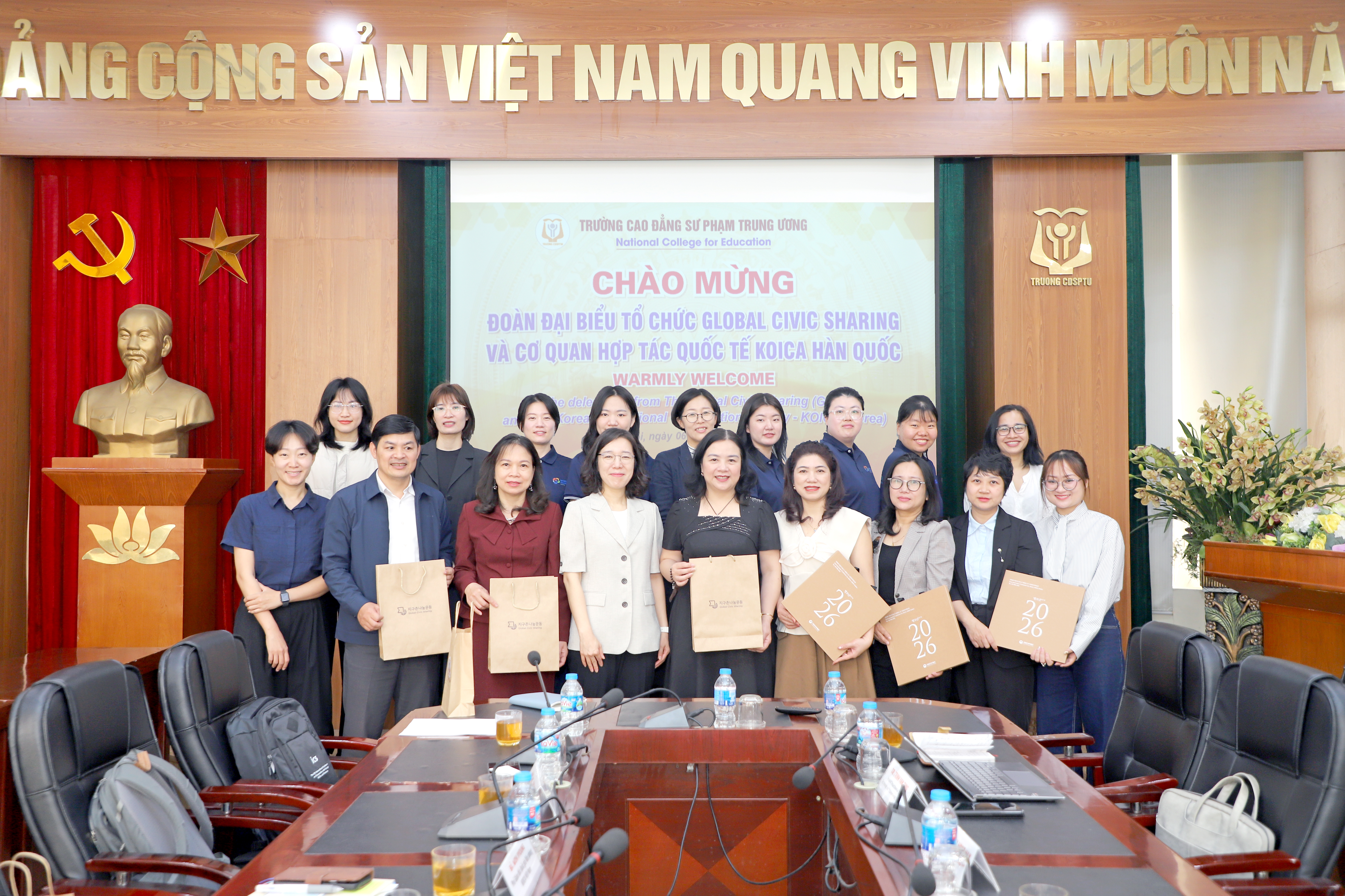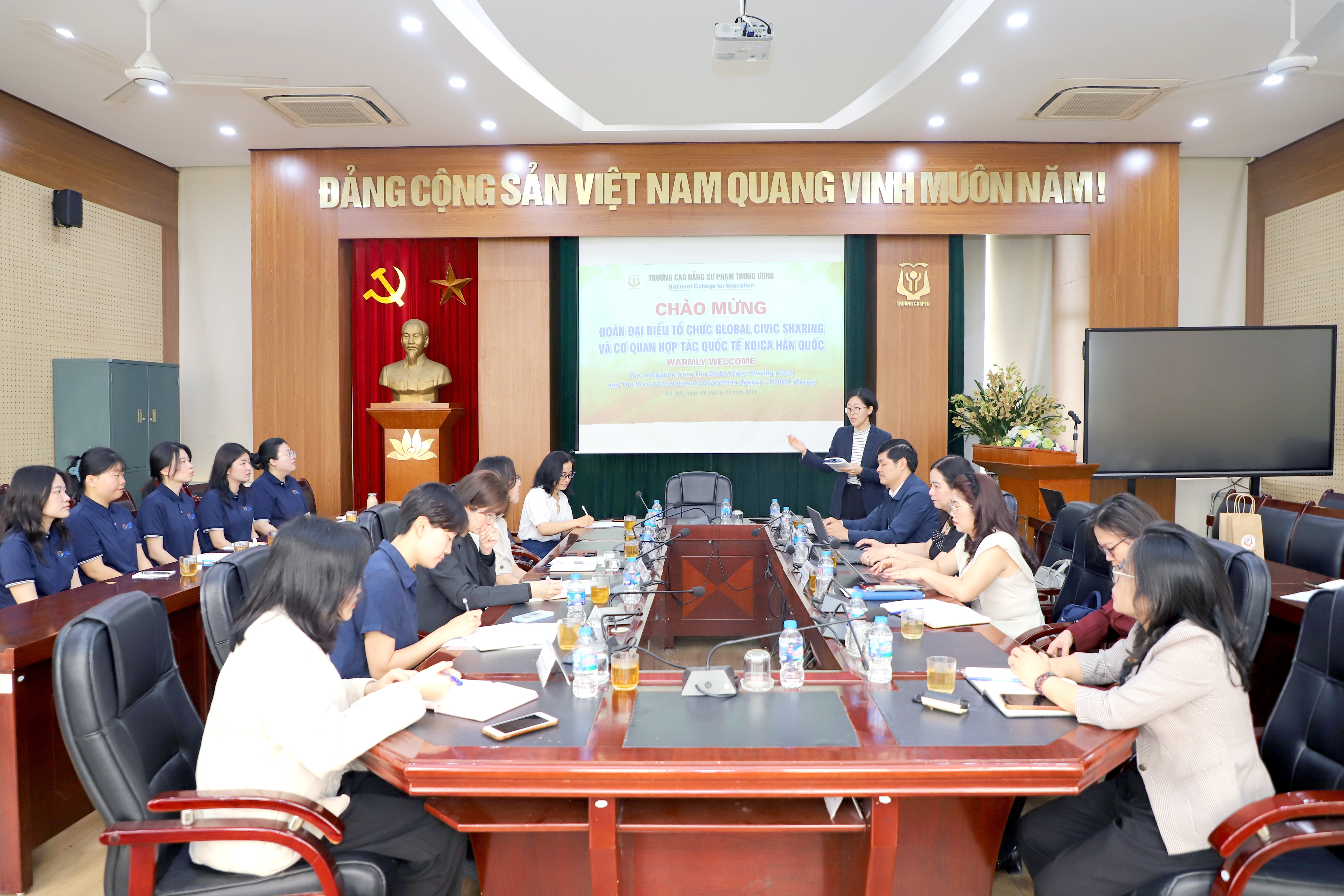 NCE Sáng ngày 06/3/2026 Trường Cao đẳng Sư phạm Trung ương (CĐSPTW) đã vinh dự đón tiếp Đoàn chuyên gia Tổ chức Global Civic Sharing (GCS) và Cơ quan hợp tác quốc tế (KOICA) đến từ Hàn Quốc. Đây là buổi gặp mặt đầu tiên giữa các tình nguyện viên Hàn Quốc và Ban lãnh đạo Nhà trường và Trung tâm Hỗ trợ Phát triển Giáo dục Hòa nhập, đánh dấu một bước tiến quan trọng trong mối quan hệ hợp tác giáo dục song phương.