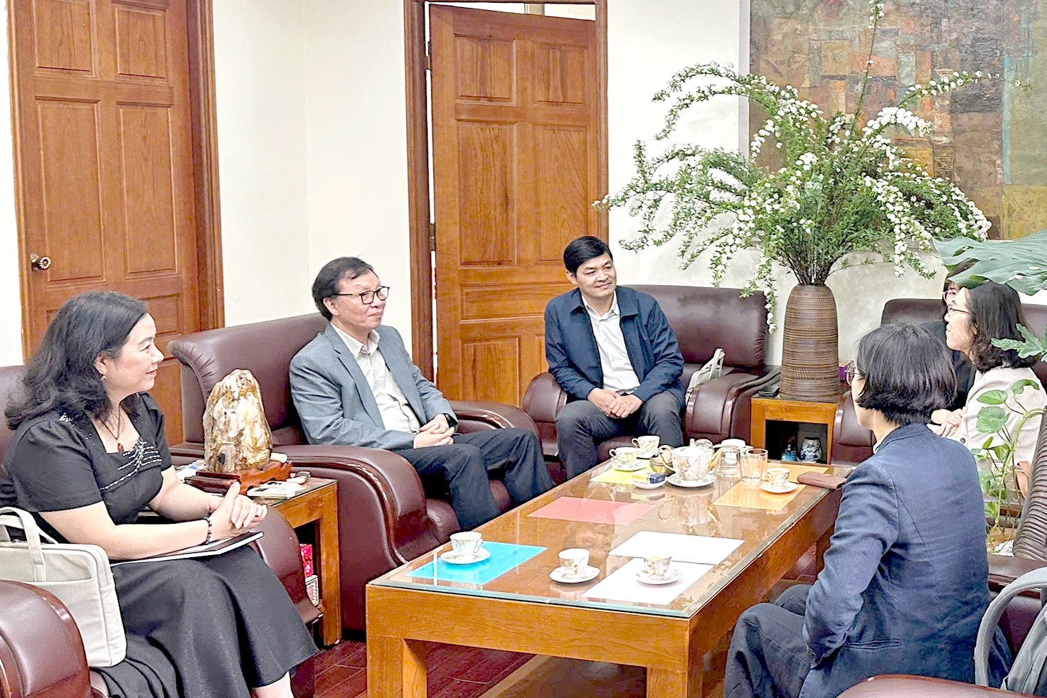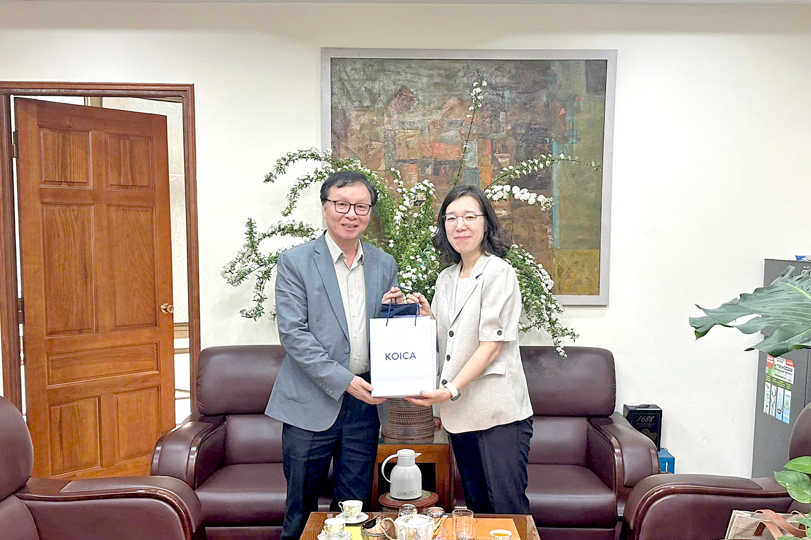 Tham dự buổi làm việc, về phía Cơ quan hợp tác quốc tế (KOICA) Hàn Quốc có: Bà Won Jiyoung - Phó Giám đốc Quốc gia văn phòng KOICA Việt Nam, Bà Lee Jin Hee - Quản lý chương trình tình nguyện viên; cùng các cán bộ văn phòng KOICA Việt Nam: Bà Nguyễn Thị Huyền và Bà Vũ Thị Dung.