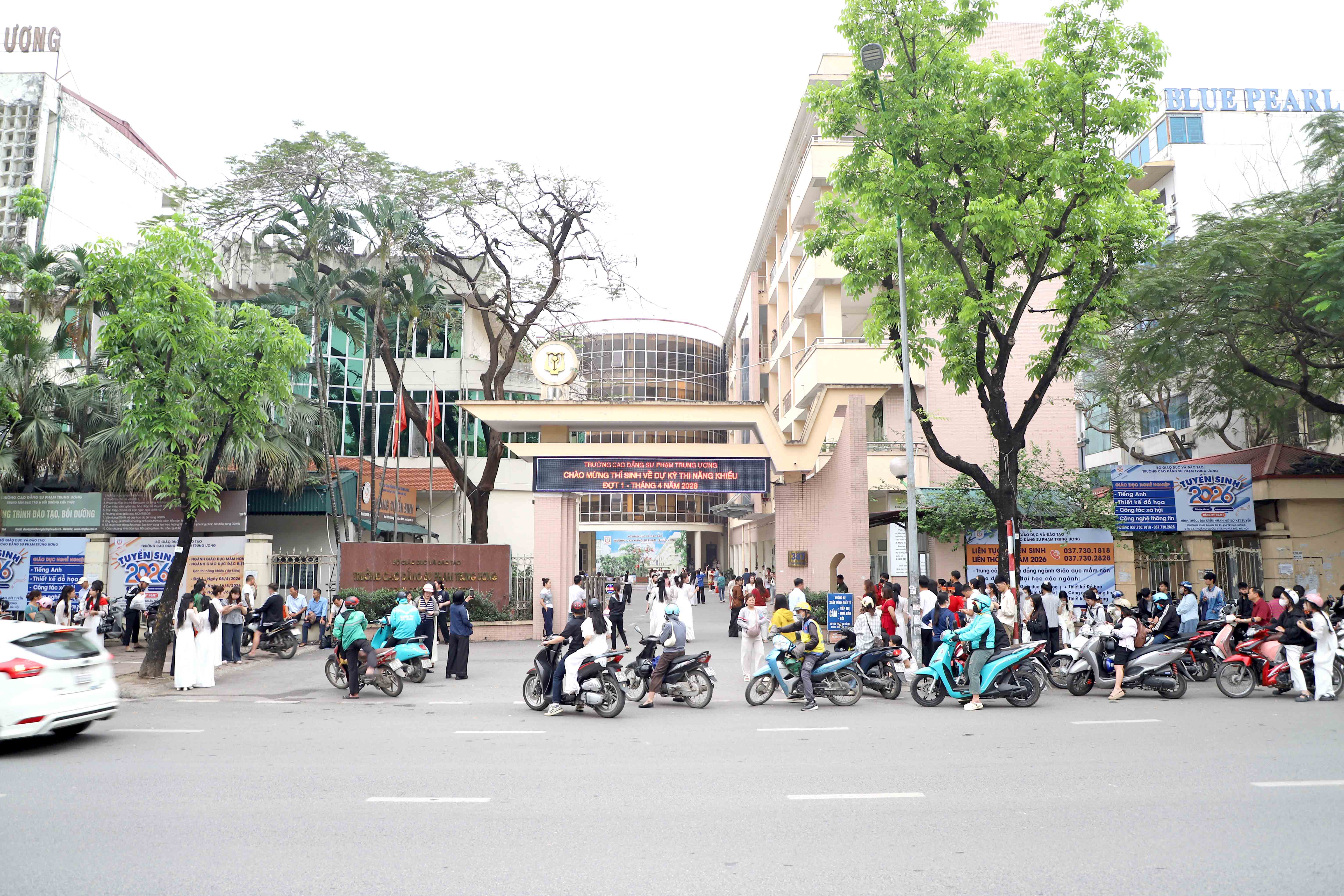 Quang cảnh cổng trường CĐSPTW trong ngày thi năng khiếu đợt 1,