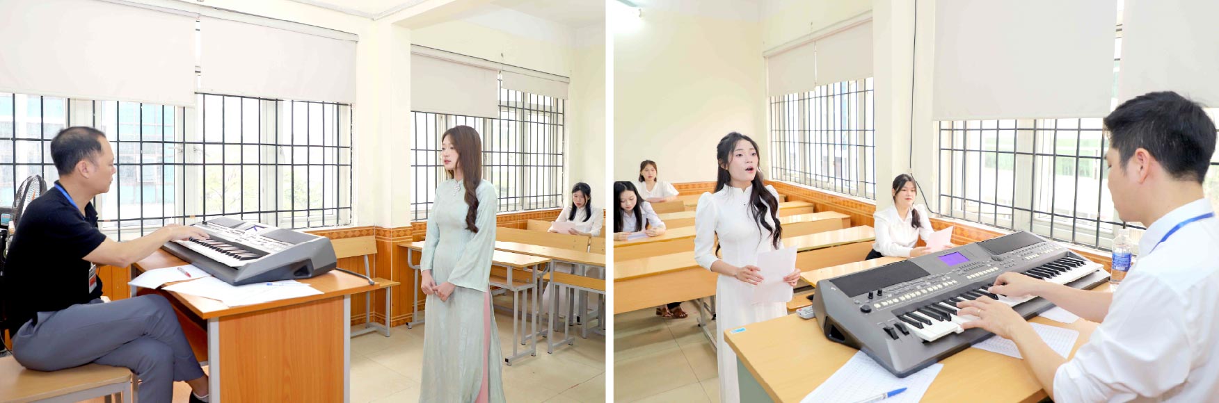 Kỳ thi năng khiếu diễn ra trong không khí sôi nổi, các thí sinh đã tự tin thể hiện tài năng, năng khiếu của mình. Trước đó, các thí sinh đã được tham gia 02 buổi ôn tập miễn phí do Nhà trường tổ chức với sự hướng dẫn của các thầy, cô giảng viên tâm huyết, bề dày chuyên môn.