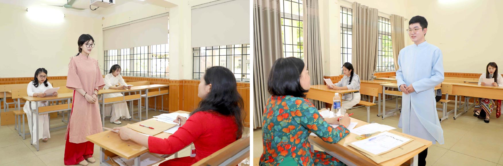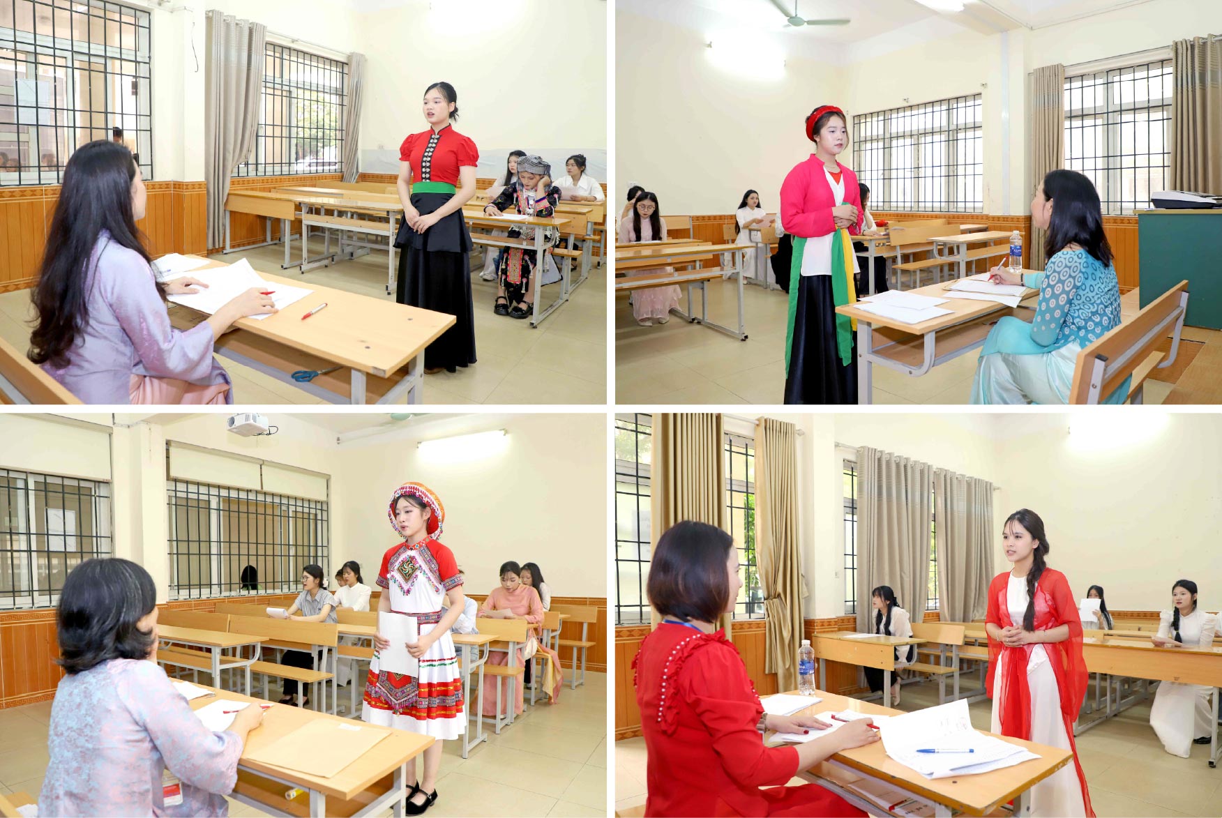 Thí sinh thể hiện phần thi Đọc, kể diễn cảm tại các phòng thi