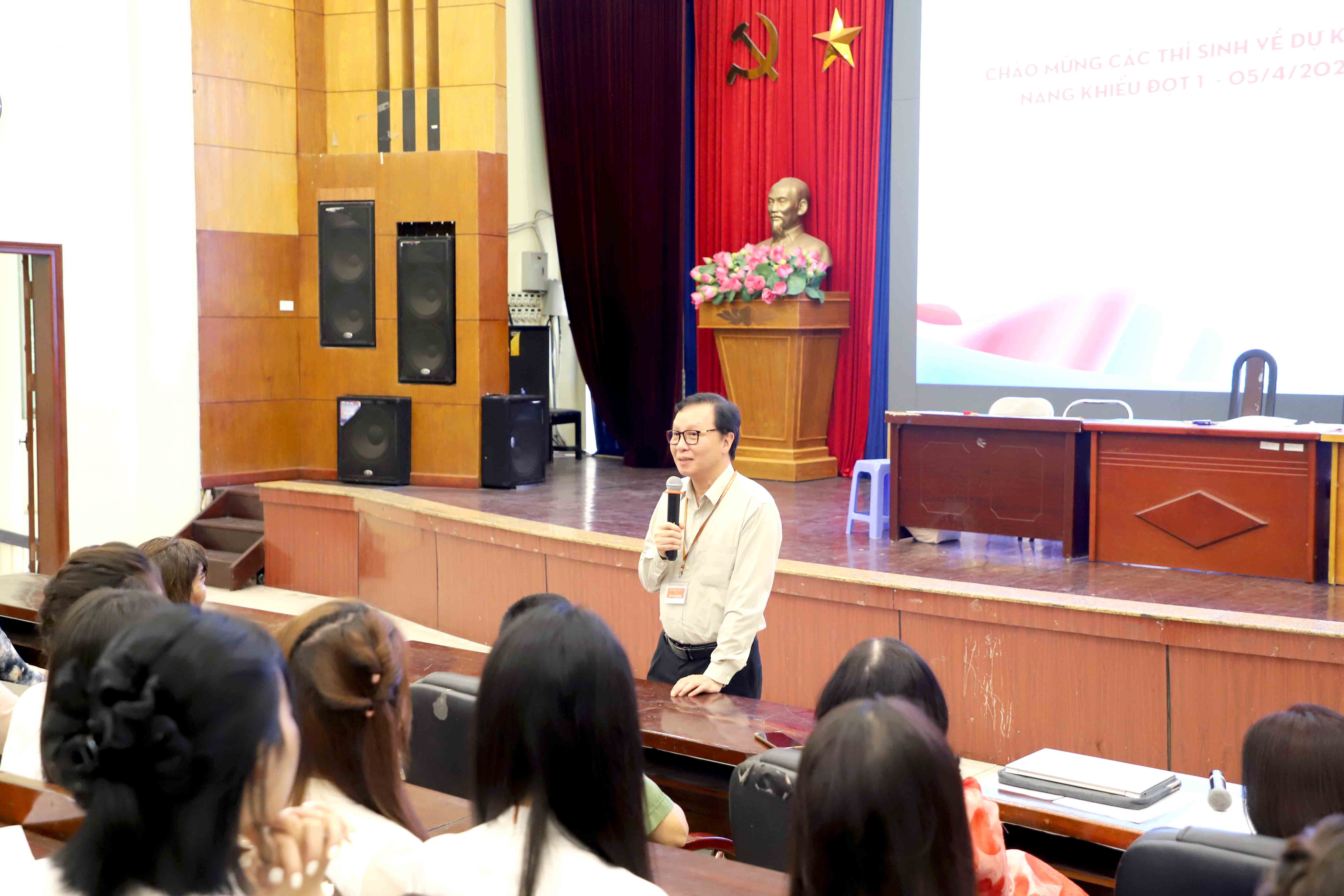 Trước khi bước vào các phần thi, PGS.TS Trần Đình Tuấn - Phó Bí thư Đảng ủy, Hiệu trưởng, Chủ tịch Hội đồng tuyển sinh nhà trường đã gửi lời động viên, tạo tâm lý thoải mái cho các thí sinh và chia sẻ: “Trường CĐSPTW là một ngôi trường đẹp, tọa lạc tại trung tâm Thủ đô, rất thuận tiện cho việc học tập và sinh hoạt của các em. Nhà trường tổ chức kỳ thi nhằm đánh giá mức độ phù hợp của các em với ngành nghề đào tạo, do đó các em hãy thể hiện tài năng của mình một cách tự tin để đạt được kết quả cao nhất”. Thầy Hiệu trưởng gửi gắm mong muốn được gặp lại các em trong thời gian tới với tư cách là tân sinh viên của Nhà trường.