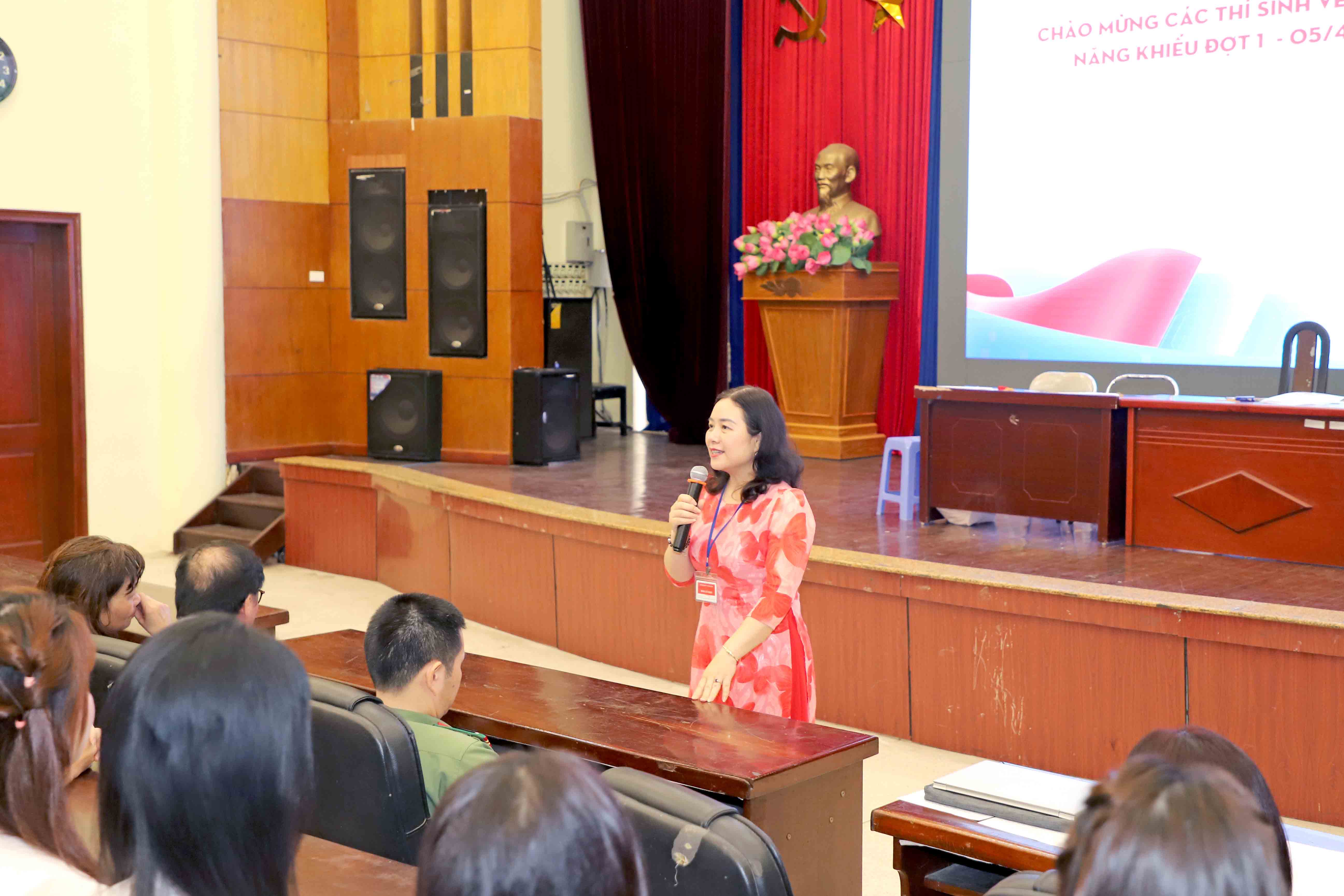 Nguyễn Thị Hồng Vân - Phó Hiệu trưởng Nhà trường phát biểu, động viên và chúc các thí sinh đạt
