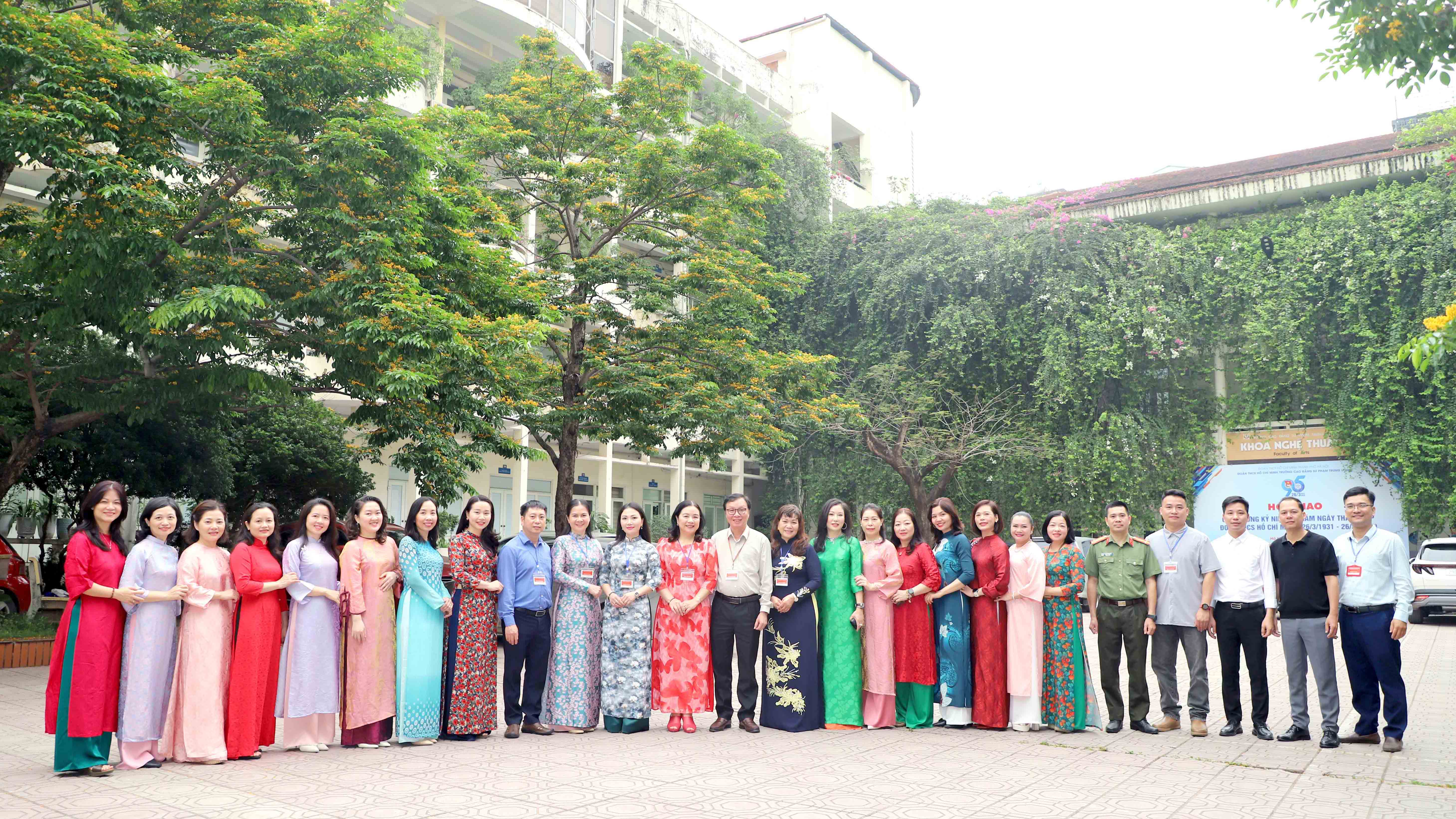Lãnh đạo Hội đồng tuyển sinh chụp ảnh lưu niệm cùng thành viên phục vụ kỳ thi