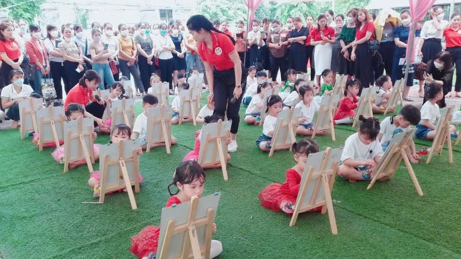 Hoạt động giáo dục của Trường Mầm non Hoa Phượng (Kim Bôi, Phú Thọ). Ảnh: NVCC