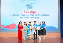 NCE - Thực hiện chỉ đạo của Thành đoàn Hà Nội, được sự đồng ý của Đảng ủy, Ban Giám hiệu Nhà trường, sáng ngày 26/3/2026, Đoàn Trường Cao đẳng Sư phạm Trung ương long trọng tổ chức Lễ kỷ niệm 95 năm thành lập Đoàn TNCS Hồ Chí Minh (26/3/1931 - 26/3/2026; Gặp mặt cán bộ chủ chốt Đoàn trường qua các thời kỳ và tuyên dương “Cán bộ Đoàn tiêu biểu các cấp năm 2025”.