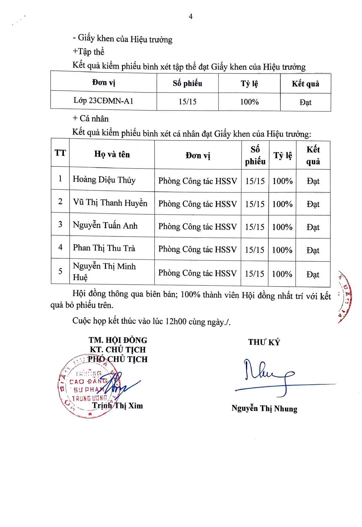 Người ký: Phó Chủ tịch Trịnh Thị Xim