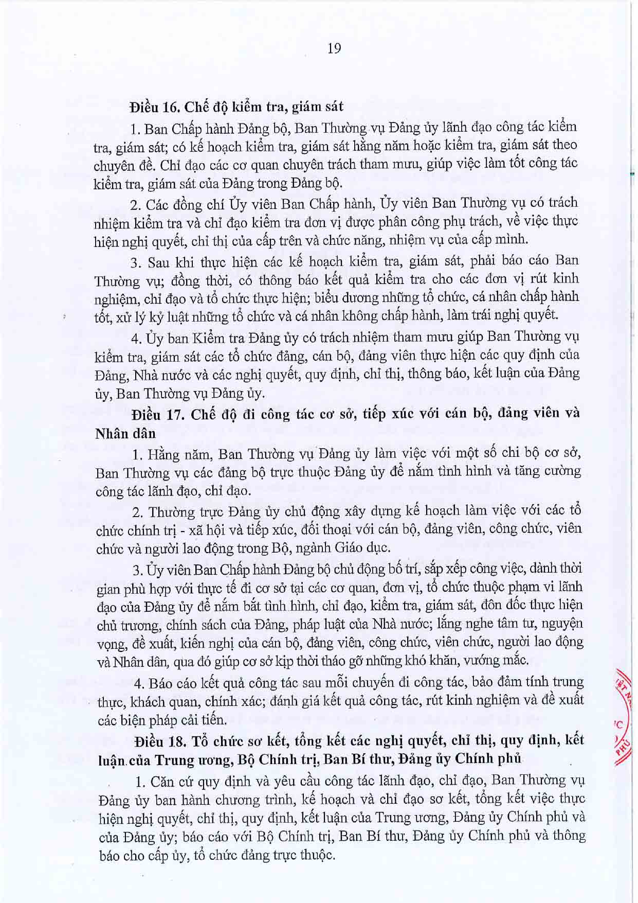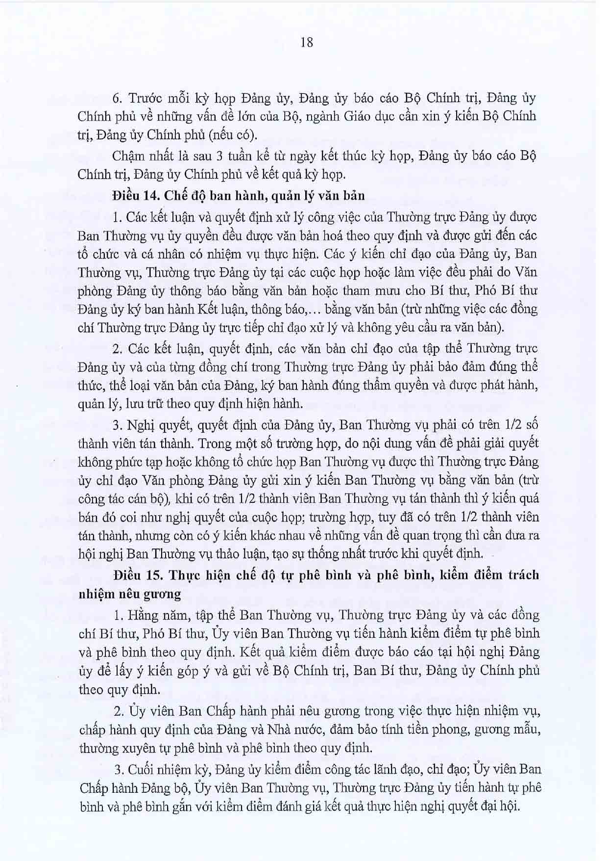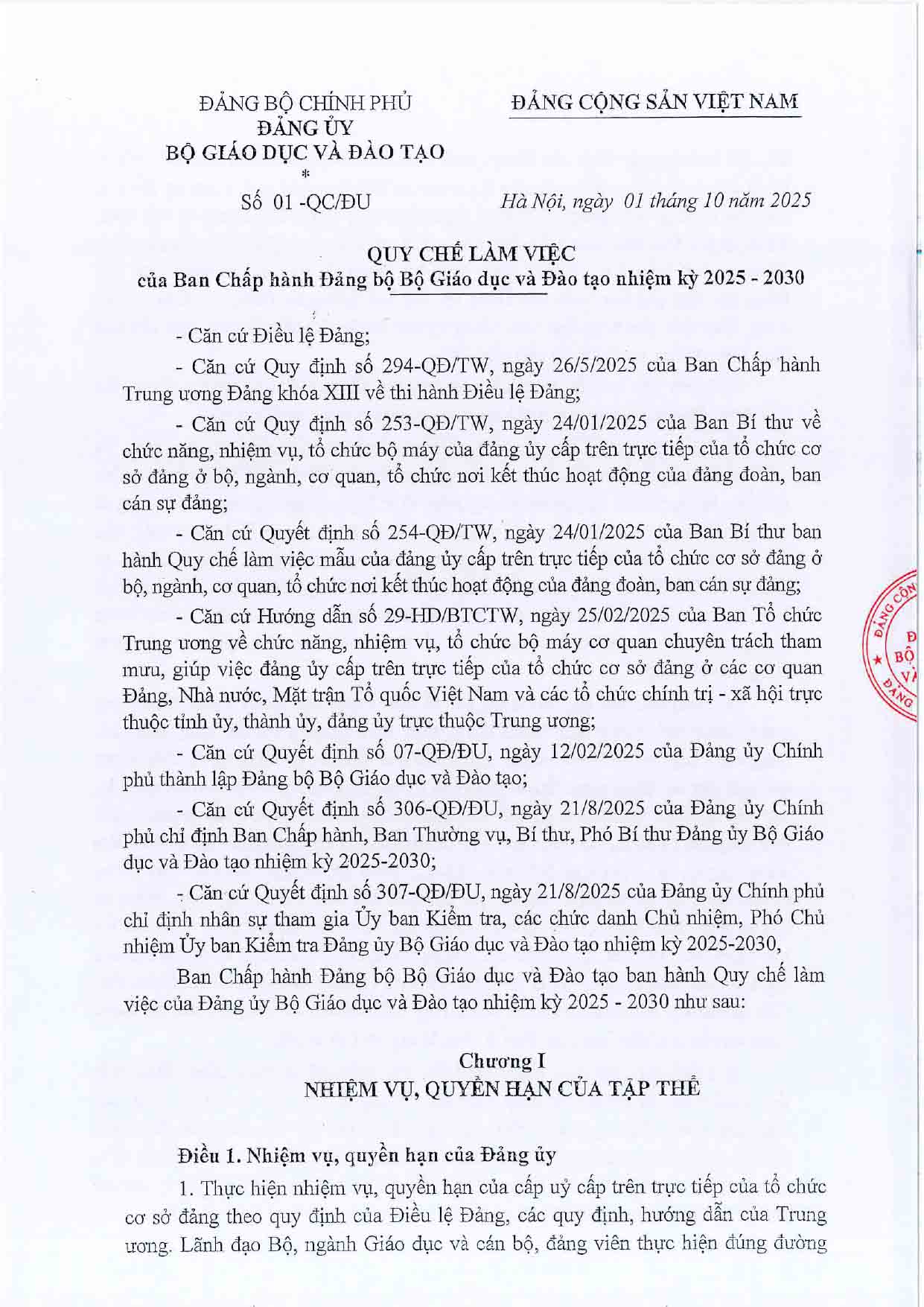 Quy chế làm việc của Ban Chấp hành Đảng bộ Bộ Giáo dục và Đào tạo nhiệm kỳ 2025 - 2030