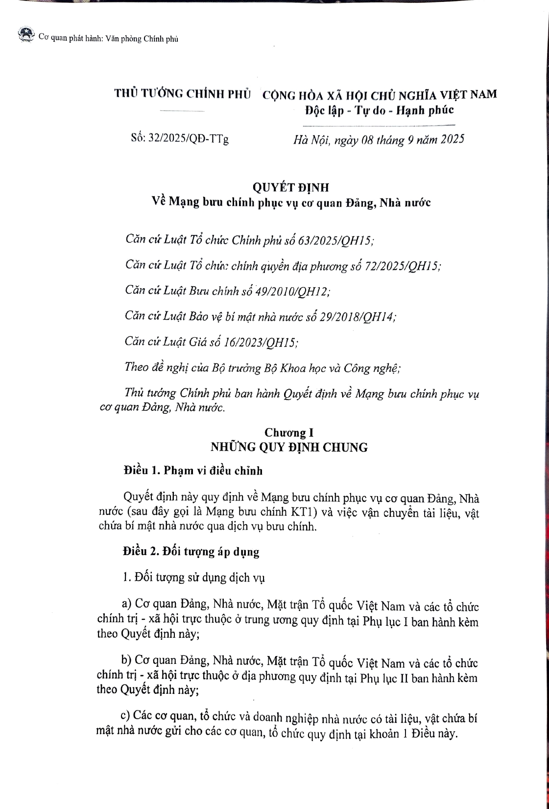 Số/ký hiệu: 32/2025/QĐ-TTg