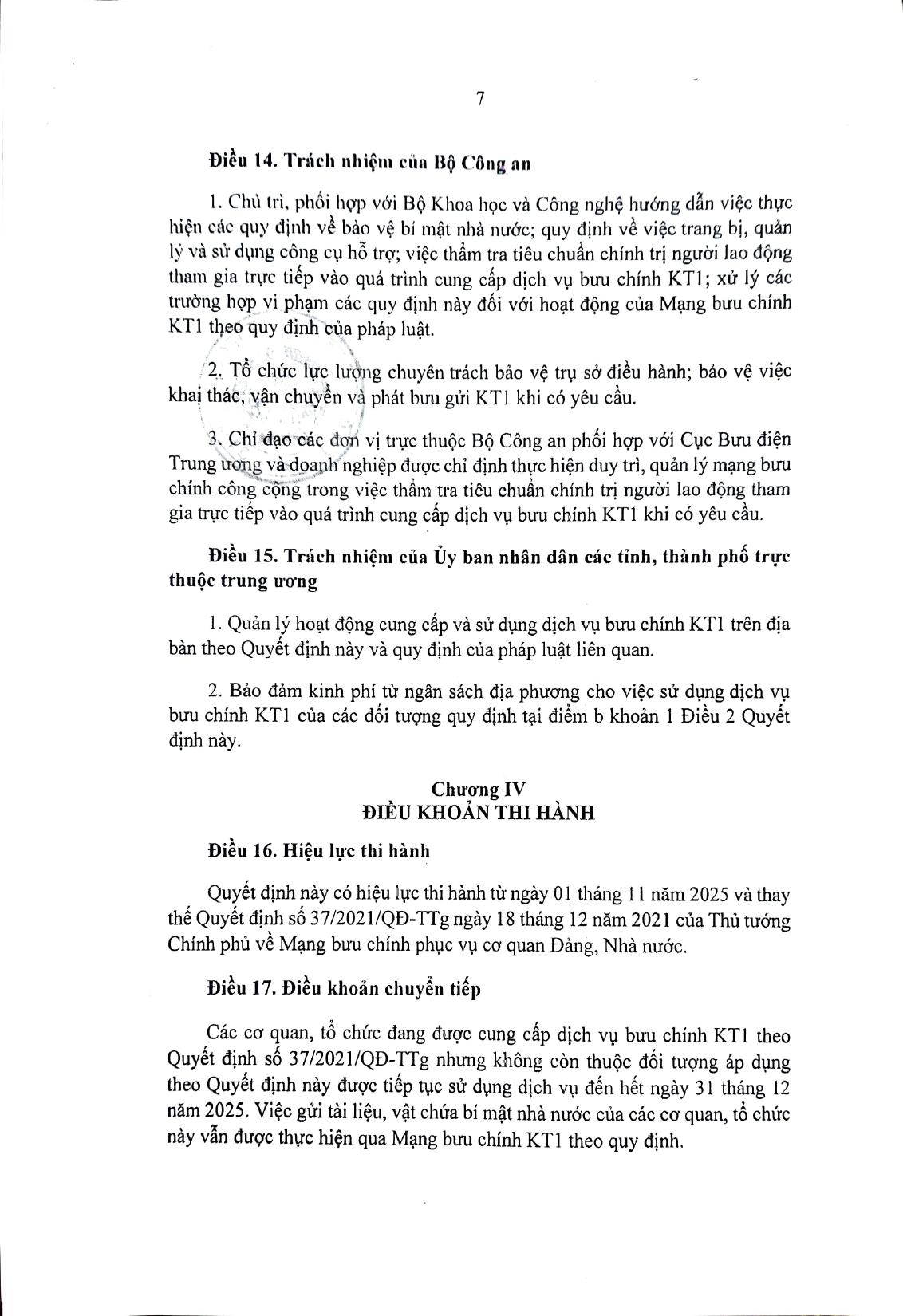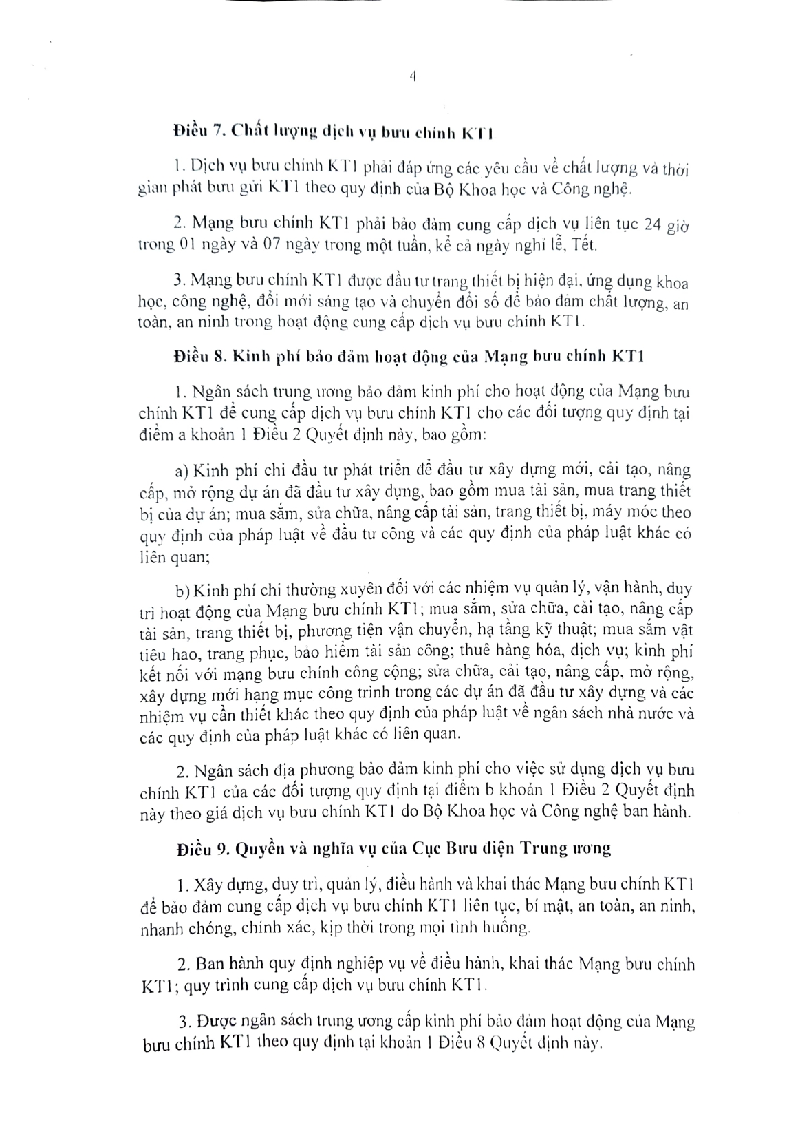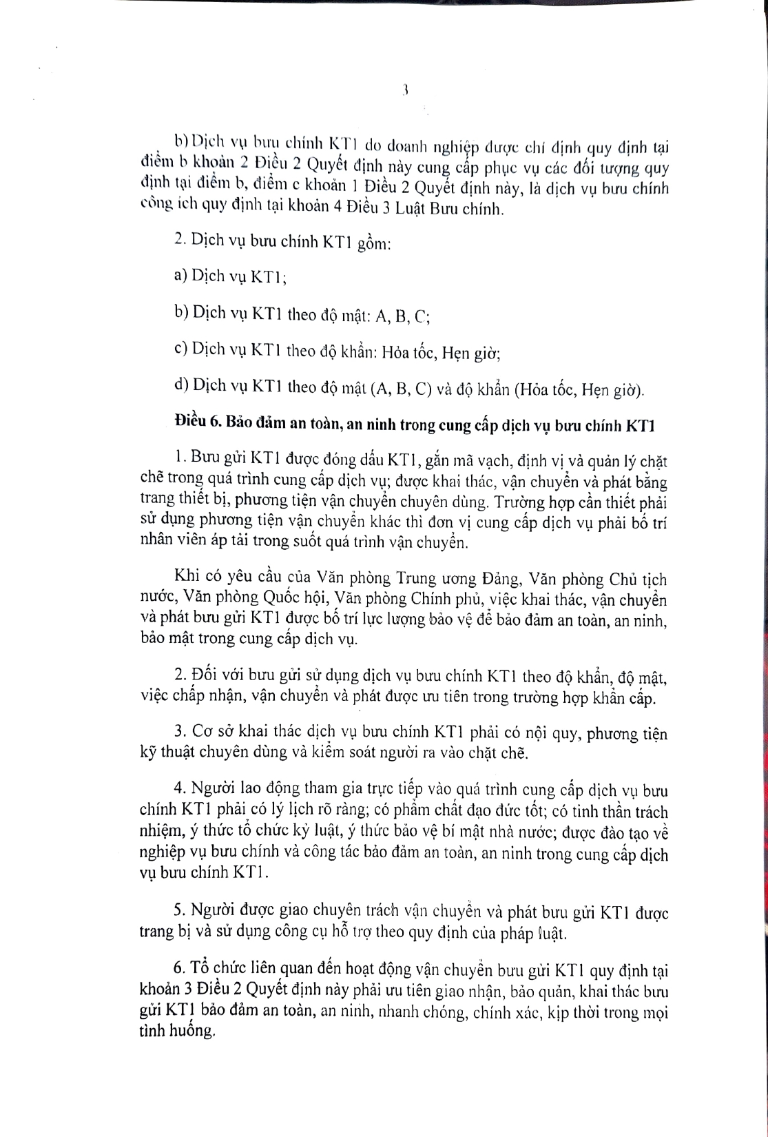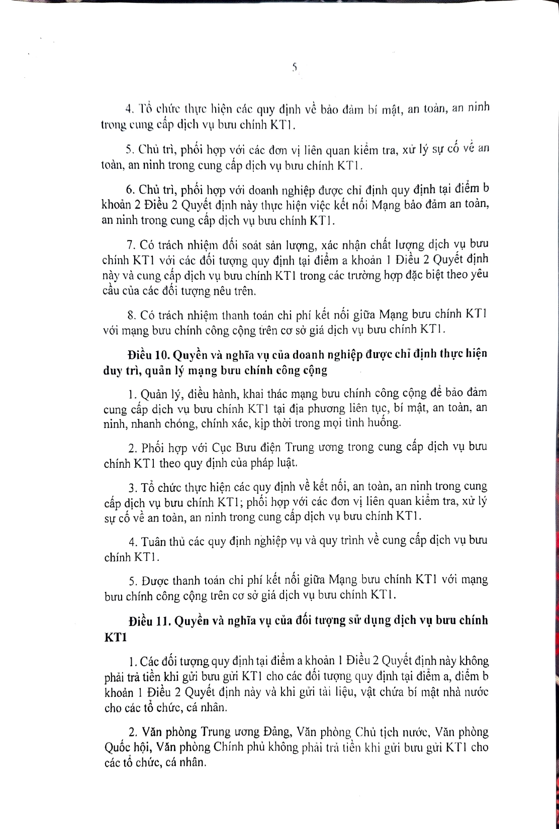 Quyết định Về Mạng bưu chính phục vụ cơ quan Đảng, Nhà nước (có phụ lục kèm theo)