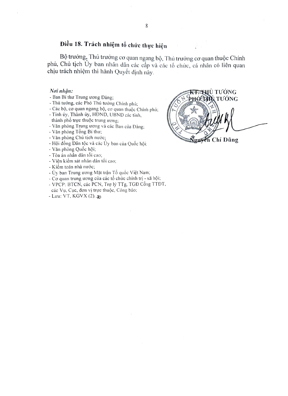 Người ký: Phó Thủ tướng Nguyễn Chí Dũng