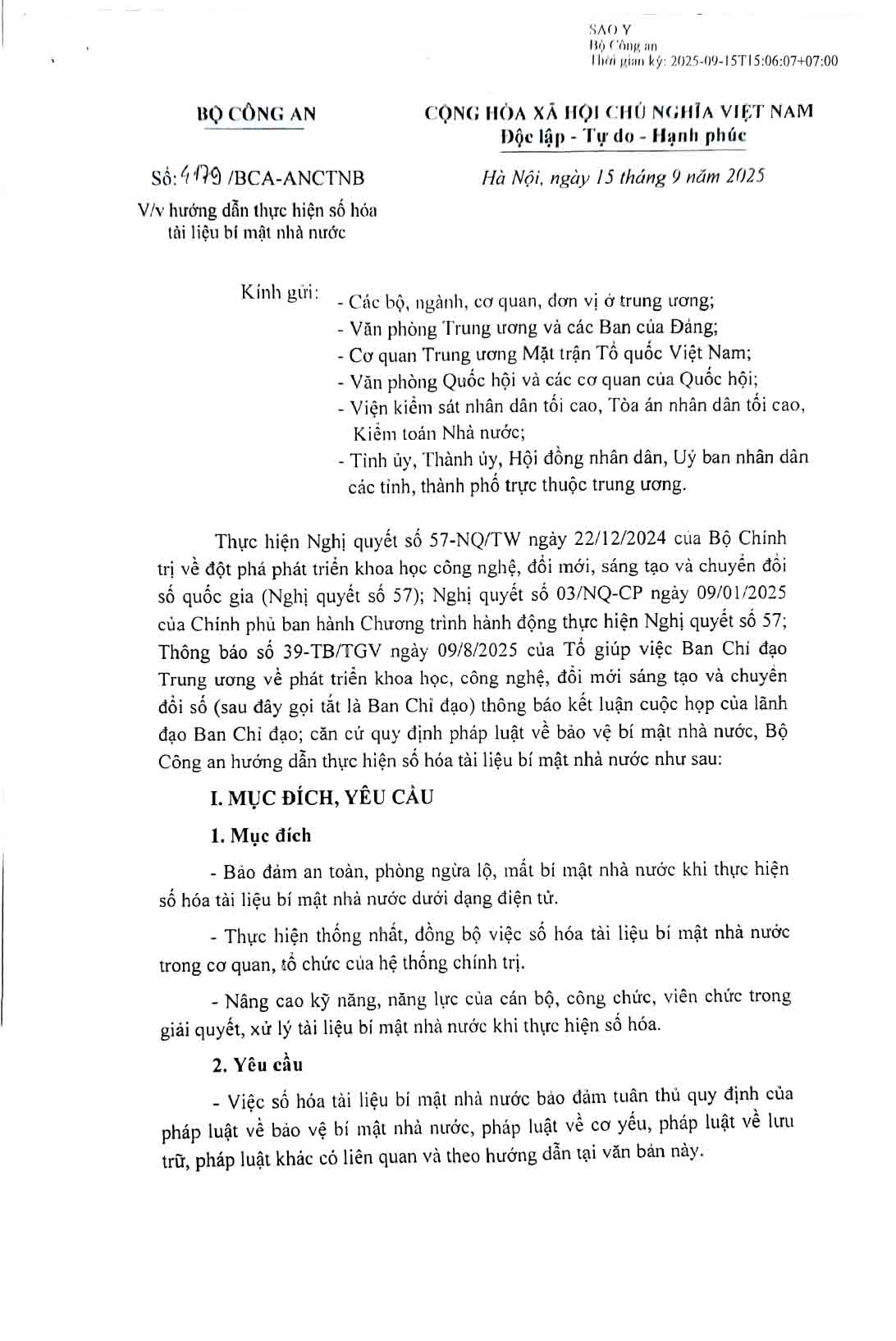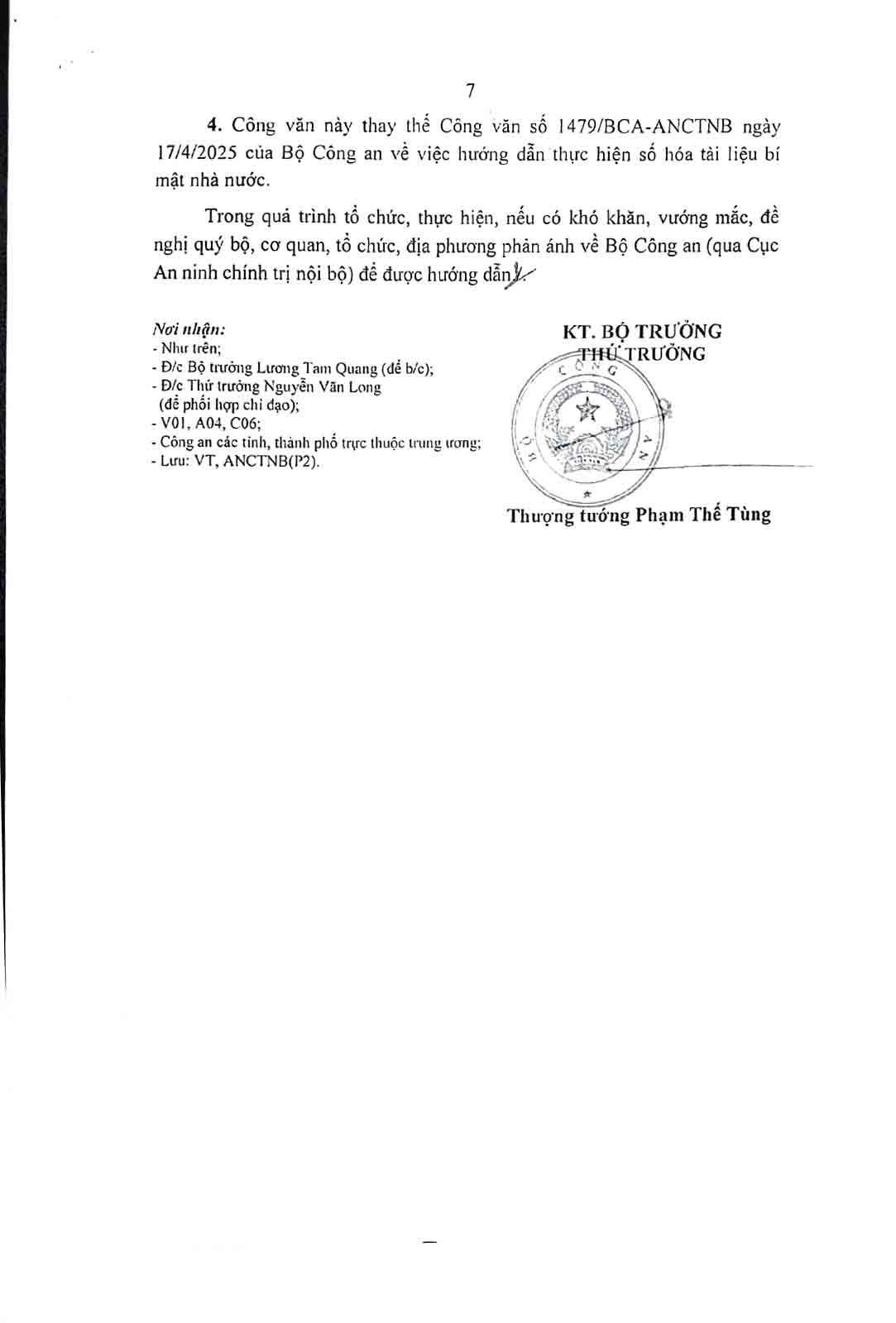 Công văn V/v hưỡng dẫn thực hiện số hóa tài liệu bí mật nhà nước