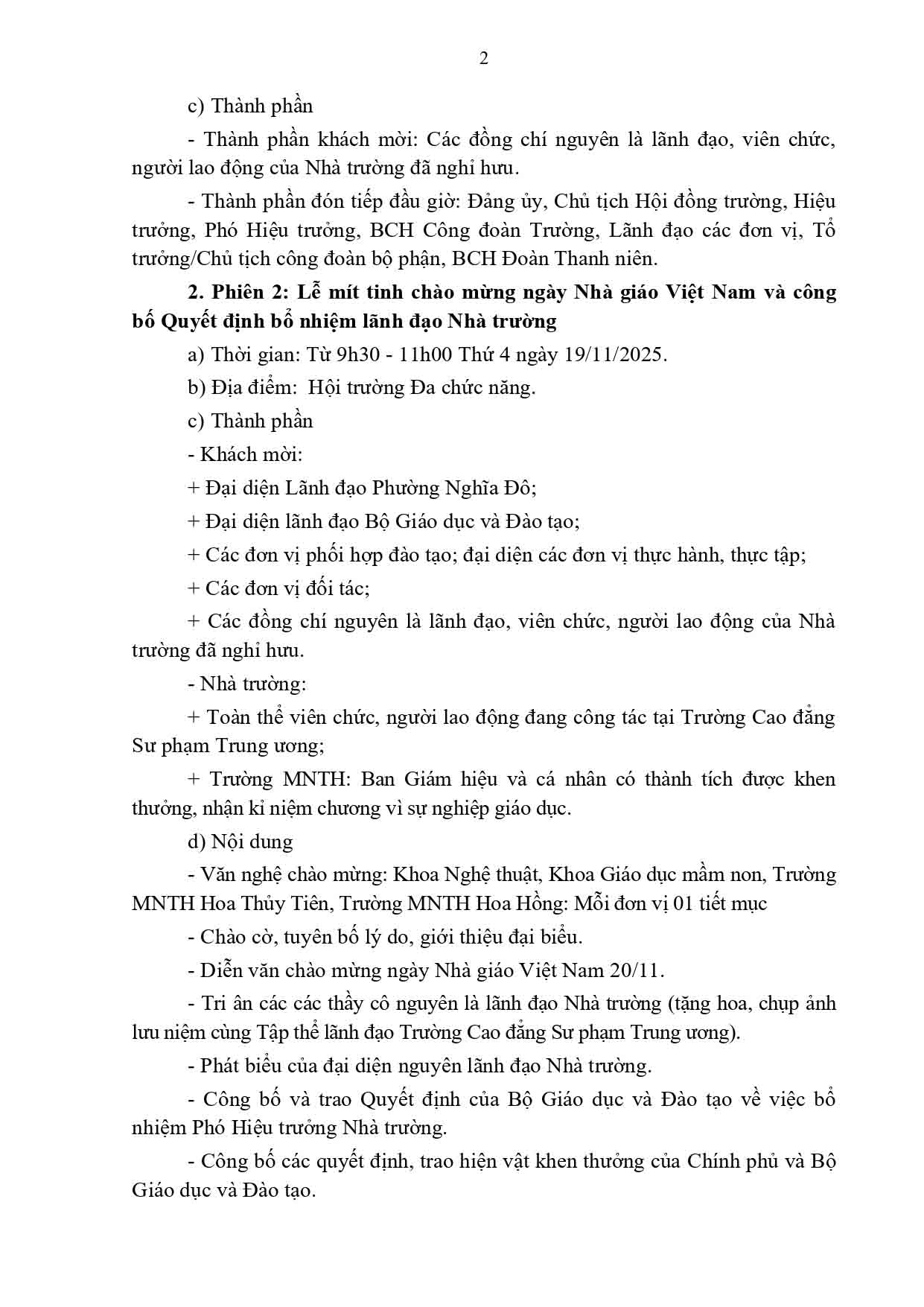 Kế hoạch Tổ chức Lễ mít tinh chào mừng ngày Nhà giáo Việt Nam và công bố Quyết định bổ nhiệm Phó Hiệu trưởng Nhà trường